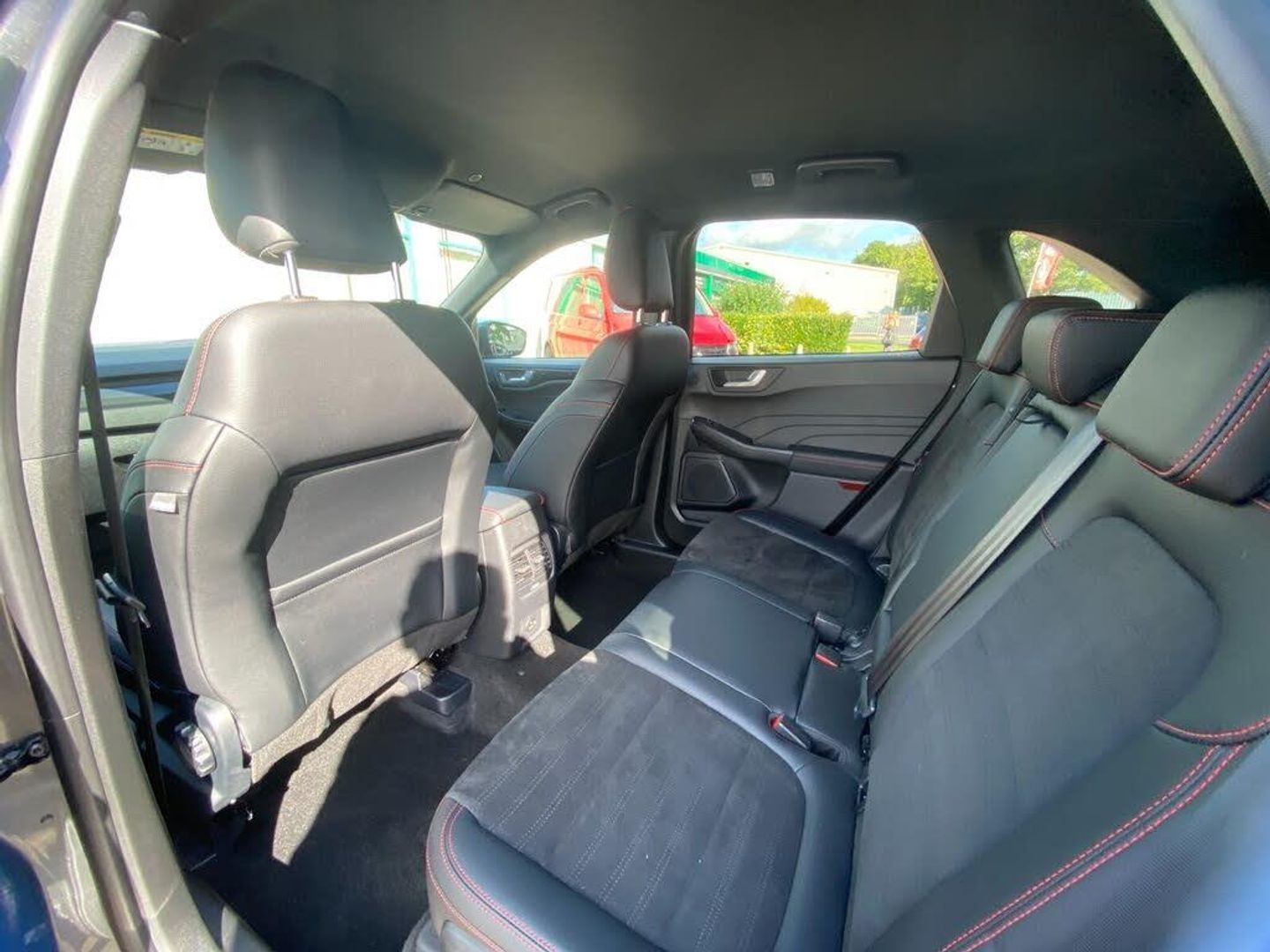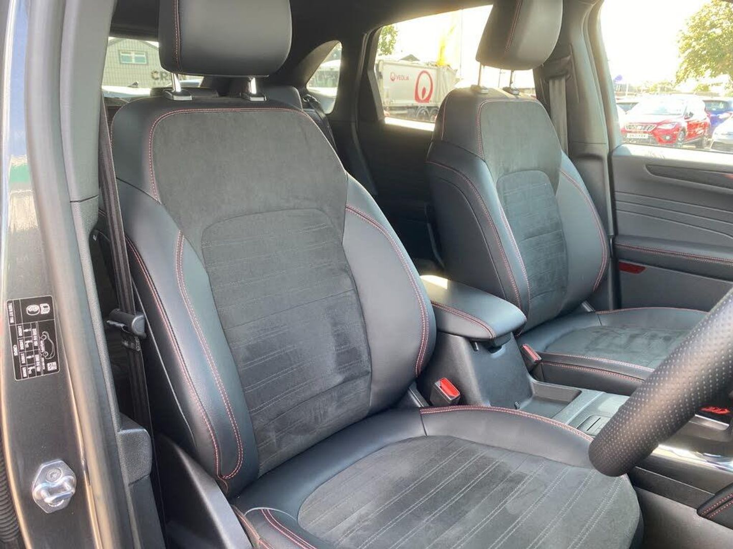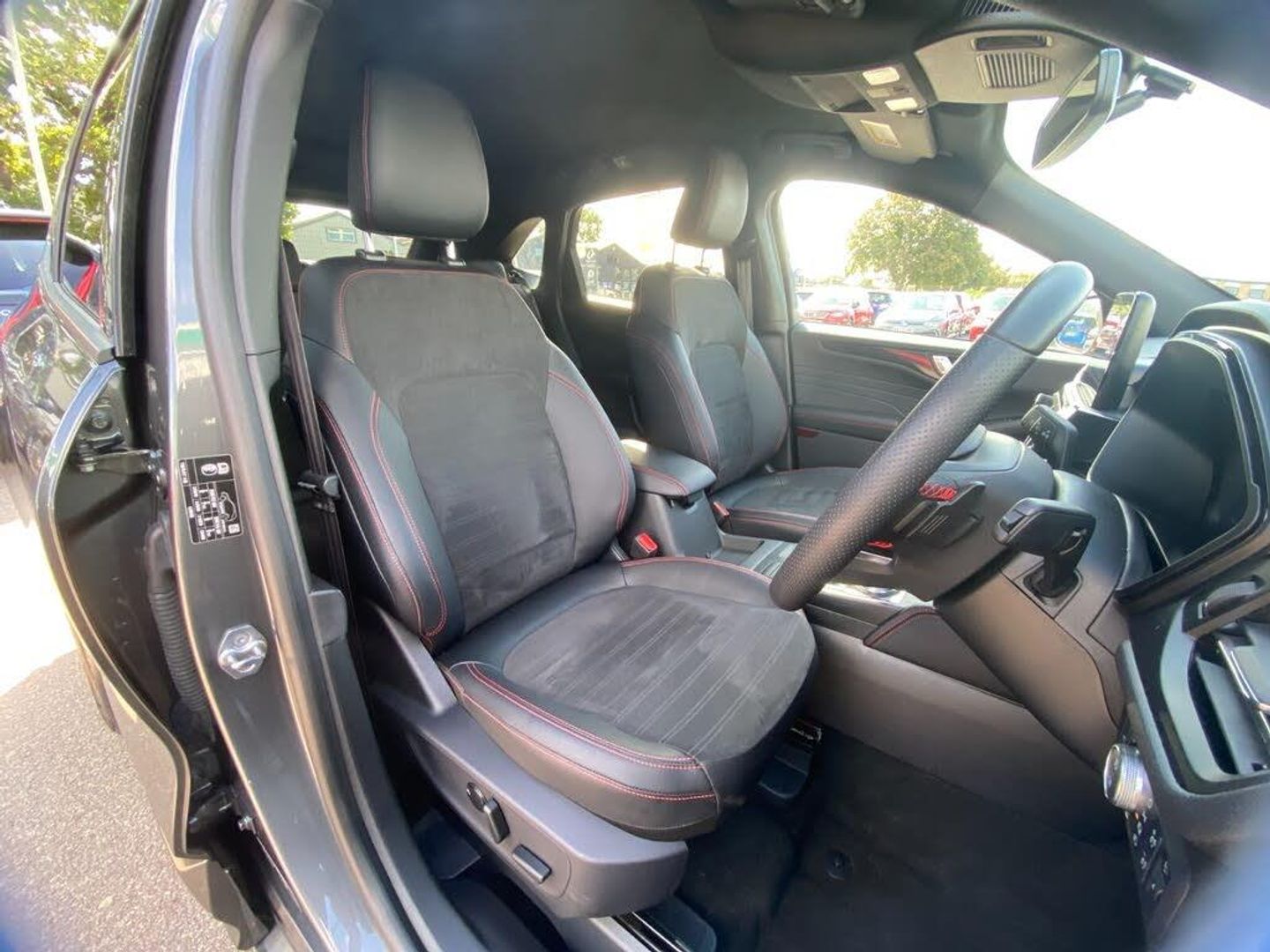 12.3" digital colour instrument cluster, Ford easy fuel, Ford SYNC 3 with 8" TFT LCD touchscreen, App Link, andriod auto/apple carPlay, emergency assistance and navigation with Ford pass connect, Front and rear parking sensors, Hands free power tailgate, Lane keeping aid with lane departure warning, Power assist steering, Rear view camera, Selectable drive modes, Service interval indicator, Sports suspension, B&O premium audio system with 10 speakers and subwoofer, 2 USB ports, DAB radio/CD, Auto headlamps with high and low beam, Black roof rails, Front LED fog lamps, Large rear spoiler, LED daytime running lights, LED rear lights, Power folding heated door mirrors with puddle lights, Power front/rear windows with global close, Privacy glass, Quickclear heated windscreen, ST Line body styling kit with unique front and rear fascia and bumper, rear painted diffuser, front painted skid plates, dark mesh upper grille, ST Line front scuff plates, Third brake light, Twin exhausts, 10 way power adjustable drivers seat, 2nd row sliding seats with 60:40 split, 8 way manual passenger seat including lumbar support and height adjust, Alloy pedals, Centre console with electronic parking brake, Dark headlining and pillars, Dual electronic automatic temperature control, Flat bottomed leather steering wheel in sensico with red stitching, Front and rear head restraints, Partial premium touch sensico leather upholstery with black cloth inserts and red stitching, Rear charging point, Sports seats, ST Line front and rear floor mats, Steering wheel mounted paddle shift, 3x3 point rear seatbelts, Airbags - front driver/passenger, front and rear curtain, Drivers knee airbag, Electronic stability control (ESC) and ABS, Ford MyKey Gen 2 safety system, Manual child proof rear door locks, Post collision braking, Pre collision assist with autonomous emergency braking, Rear seat Occupancy alert, Red brake calipers, Tyre pressure monitoring system, Engine immobiliser, Keyless entry and Ford power start button, Locking wheel nuts, Remote powered central double locking doors, Thatcham category 1 alarm