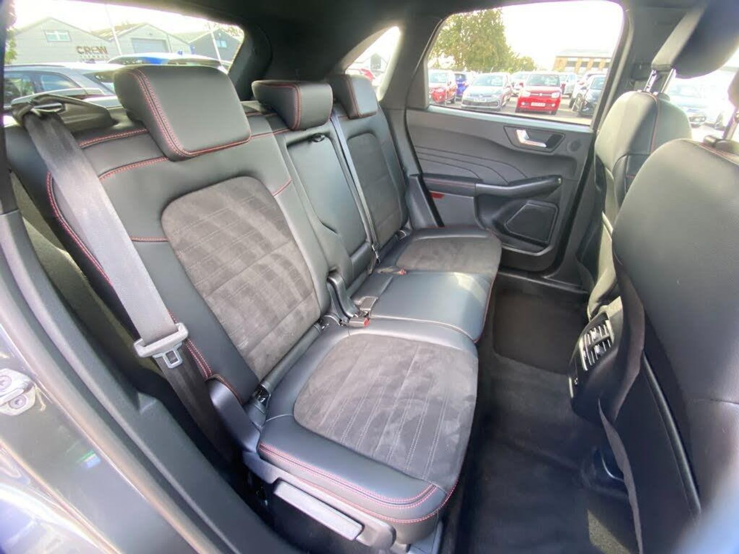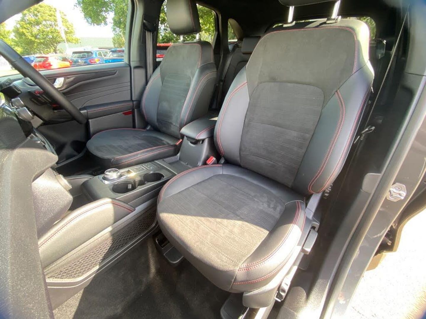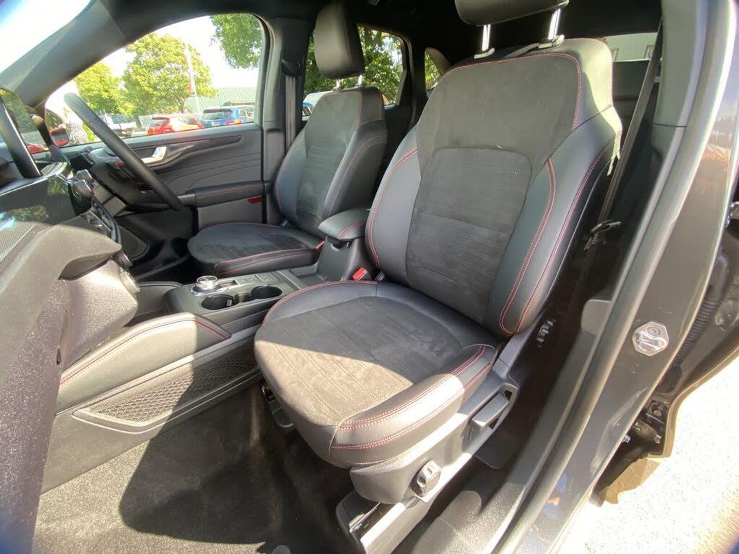 12.3" digital colour instrument cluster, Ford easy fuel, Ford SYNC 3 with 8" TFT LCD touchscreen, App Link, andriod auto/apple carPlay, emergency assistance and navigation with Ford pass connect, Front and rear parking sensors, Hands free power tailgate, Lane keeping aid with lane departure warning, Power assist steering, Rear view camera, Selectable drive modes, Service interval indicator, Sports suspension, B&O premium audio system with 10 speakers and subwoofer, 2 USB ports, DAB radio/CD, Auto headlamps with high and low beam, Black roof rails, Front LED fog lamps, Large rear spoiler, LED daytime running lights, LED rear lights, Power folding heated door mirrors with puddle lights, Power front/rear windows with global close, Privacy glass, Quickclear heated windscreen, ST Line body styling kit with unique front and rear fascia and bumper, rear painted diffuser, front painted skid plates, dark mesh upper grille, ST Line front scuff plates, Third brake light, Twin exhausts, 10 way power adjustable drivers seat, 2nd row sliding seats with 60:40 split, 8 way manual passenger seat including lumbar support and height adjust, Alloy pedals, Centre console with electronic parking brake, Dark headlining and pillars, Dual electronic automatic temperature control, Flat bottomed leather steering wheel in sensico with red stitching, Front and rear head restraints, Partial premium touch sensico leather upholstery with black cloth inserts and red stitching, Rear charging point, Sports seats, ST Line front and rear floor mats, Steering wheel mounted paddle shift, 3x3 point rear seatbelts, Airbags - front driver/passenger, front and rear curtain, Drivers knee airbag, Electronic stability control (ESC) and ABS, Ford MyKey Gen 2 safety system, Manual child proof rear door locks, Post collision braking, Pre collision assist with autonomous emergency braking, Rear seat Occupancy alert, Red brake calipers, Tyre pressure monitoring system, Engine immobiliser, Keyless entry and Ford power start button, Locking wheel nuts, Remote powered central double locking doors, Thatcham category 1 alarm
