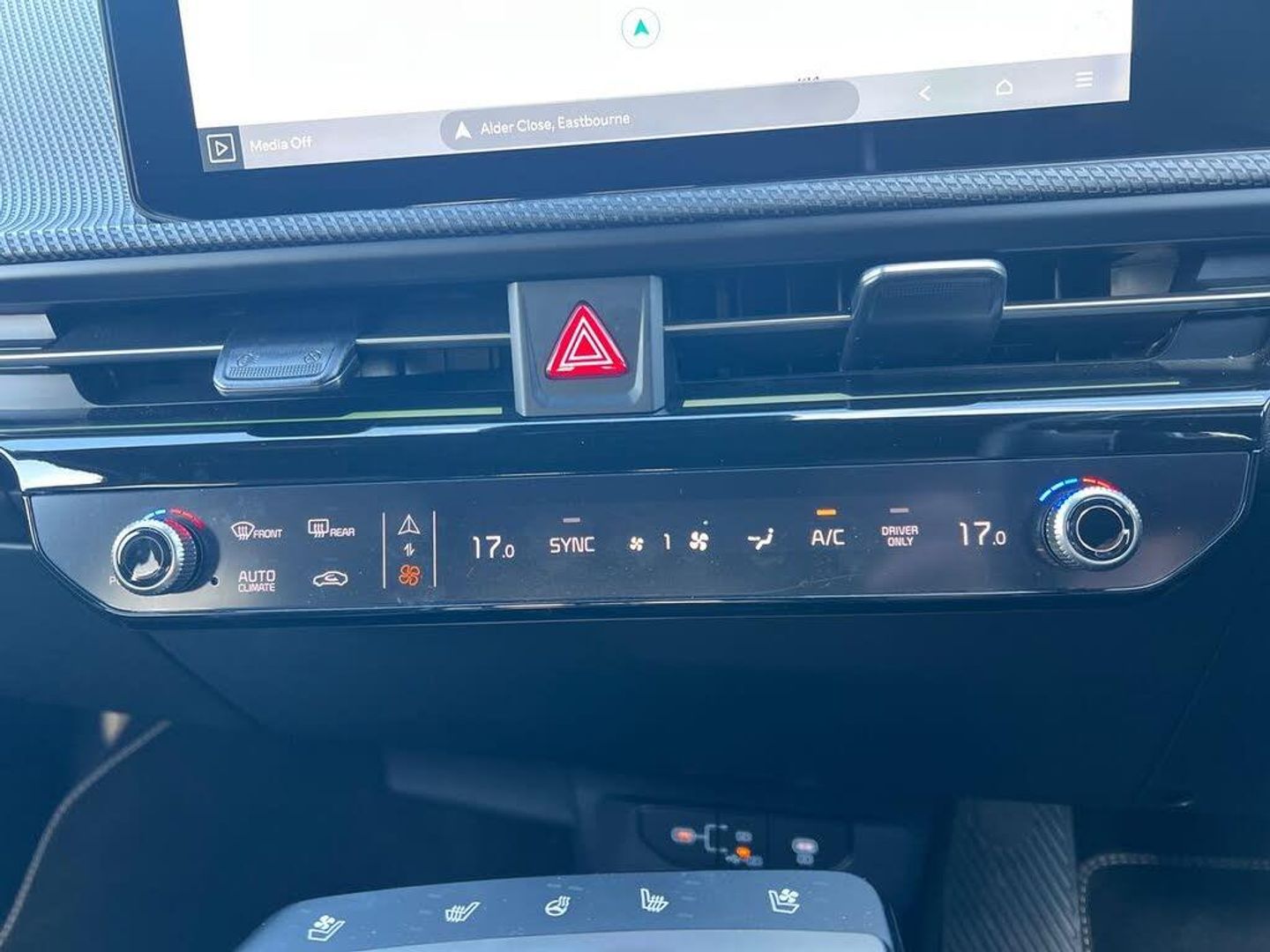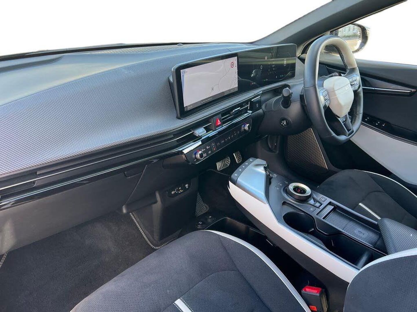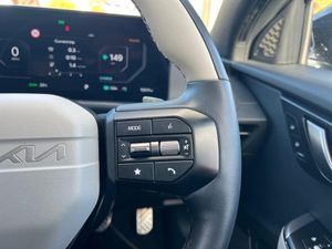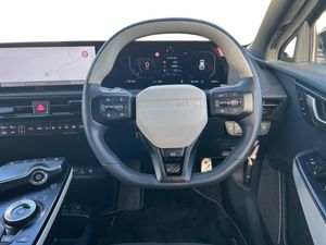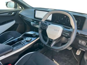 12.3" Curved driver display screen, 12.3" Curved touchscreen navigation, 360 degree around view monitor, Blind spot collision avoidance assist, Blind spot monitor, Bluetooth connectivity, Customisable Head Up Display, Drive mode select (Eco, normal, sport and Mydrive), Driver attention warning, E-call, Emergency stop signalling system, Fingerprint recognition, Forward Collision-Avoidance Assist (FCA) 2.0 - City/Pedestrian/Cyclist/Junction turning and junction crossing, Front parking sensors, Highway Driving Assist 2 with hand-on detection (HDA2 w HOD), Intelligent speed limit assist (ISLA), Kia connect, Lane Following Assist 2.0 (LFA) with hands-on detection, Lane keep assist, Low washer fluid warning, Over the air updates, Parking collision avoidance assist (PCA), Power assist steering, Rear parking sensors, Remote Smart Park Assist 2.0 (RSPA 2.0), Safe exit warning (SEW), Side parking sensors, Smart cruise control with stop and go functionality, Smart power tailgate, Tailgate, Terrain mode select, Voice control, Wireless apple car play/android Auto, Wireless Mobile Phone Charger, 11 kW AC onboard charger, 5m Type 2 to type 2 charging cable, Charging port door opening button with a small light inside the door, Vehicle to load adaptor, 2 USB-C charge ports in rear, 2 x USB-C charge port on front seats, Meridan premium sound system with 14 speakers and active sound design (ASD), Steering wheel mounted controls, USB port for connection of a media device, Auto dimming rear view mirror, Automatic defog system, Automatic headlight control system, Body colour exterior door handles - flush auto, Body coloured side sills, Dual LED headlights with adaptive driving beam, Electrically folding/adjustable/heated door mirrors with LED indicators, Frunk, Gloss black door mirrors, GT-Line exterior styling, Heated rear window, High gloss black beltline, High gloss black door garnish with body colour wheel arches, High level LED brake light, LED daytime running lights, LED rear combination lights, LED rear fog lights, One touch electric front/rear windows, Panoramic sunroof with tilting and sliding function, Rain sensing front wipers, Rear privacy glass, Rear roof spoiler, Rear side wing doors, Rear wiper, Sequential indicators, Solar glass windshield, 1 x Front 12V socket, 1 x Luggage compartment 12V socket, 3 Pin power socket, 3 seat bench in 2nd row, 3 spoke GT Line artificial leather steering wheel, 60:40 split remote folding rear seats, All-round height adjustable headrests, Alloy pedals, Automatic air conditioning, Centre console with storage box, Cloth headlining, Customisable ambient lighting, Driver and passenger sunvisors with illuminated LED vanity mirrors, Driver power adjusted memory seat, Electric front seats + lumbar support, Electric steering wheel adjustment, Front and rear door storage, Front cabin LED light, Front passenger power adjusted seat, Front relaxation seats, Front seat back pockets, Frunk LED lights, GT-Line Interior Styling, Heated front seats, Heated steering wheel, Illuminated glovebox, Interior door lock/unlock function, ISOFIX Child seat top tethers and anchor fixings, LED luggage compartment lighting, Luggage area load cover, Luggage board, Luggage net with hooks, Metal paint interior door handles, Outer 2nd row heated seats, Rear cabin LED light, Rear centre armrest with cupholder, Single front passenger seat, Ski through, Suede/Artificial leather bolsters upholstery, Ventilated front seats, 3 point seatbelts on all seats, ABS, Automatic unlocking of doors in case of impact, Curtain airbags, Dual shell horn, Dynamic brake control, Electric parking brake with auto hold function, Electronic stability control, Front airbags, Front passenger airbag cut-off switch, Front seatbelt pre-tensioners, Height adjustable front seatbelts, Hill start assist control (HAC), Multi collision brake assist, Rear airbags, Regenerative braking paddle shifter with iPedal functionality, Seatbelt reminder warning, Side airbags, Tyre pressure monitoring system, Vehicle stability management, Customisable automatic door locking, Customisable automatic door unlocking, Digital key, Engine Start/Stop Button with Smart Entry System, Locking wheel nuts, Manual child locks, Rear occupant alert, Smart key with motion sensor, Thatcham category 1 security alarm and immobiliser with interior protection, Visible vehicle identification number, 20" Alloy wheels, Tyre mobility kit