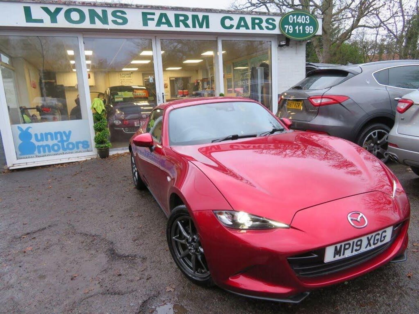 Mazda MX-5 RF's fastback styling seamlessly merges the comfort and security of a hardtop with the unmatched driving thrill of the iconic MX-5 open-top experience. The sculpted lines of it's Kodo design elegantly transform the hardtop, allowing it to convert into an open-topped roadster in just 13 seconds without sacrificing any additional boot space! With less than 25,000 miles on the clock and with a full Mazda main dealer service history up until 2024 (5 x service records), this stunning example comes with our Lyons Farm Cars promise of a 100+ detailed inspection as well as a fresh service and sold with a new 12 month MOT with no advisories. The Sport Nav+ is an excellent trim level which boasts; Full Leather Heated Seats, 16" Alloy Wheels, Dual Exhaust System, 7in Colour Touch Screen Display with Satellite Navigation System & DAB Radio, Rear Parking Sensors with Optical Display, Smart Keyless Entry, Automatic Climate Control, Automatic Wipers, Dusk Sensing Automatic LED Headlights with Auto Levelling Adaptive Front Lighting System, LED Daytime Running Lights, Lane Departure Warning System, Dynamic Stability Control (DSC) with Traction Control System (TCS), Four-Wheel Anti-Lock Braking System (4W-ABS) with Electronic Brake-Force Distribution (EBD), Front and Rear Smart City Brake Support, Cruise Control & Bluetooth. 2019 Mazda MX-5 RF 1.5 SKYACTIV-G Sport Nav+ 2 Door Convertible finished in Soul Red Metallic. ---------- Over 1,000 5* Customer Reviews across Facebook, Autotrader and Google! HPI Clear. Low Rate Finance available. RAC Dealer, Open 7 days a week, Part Exchange Welcome, Family established business since 2004, No pressure selling or targets just friendly and honest advice. Call Lyons Farm Cars on 01403 791199 or visit www.lyonsfarmcars.co.uk for more information and photos. Follow us on Facebook to enter our FREE competitions www.facebook.com/LyonsFarmCars.