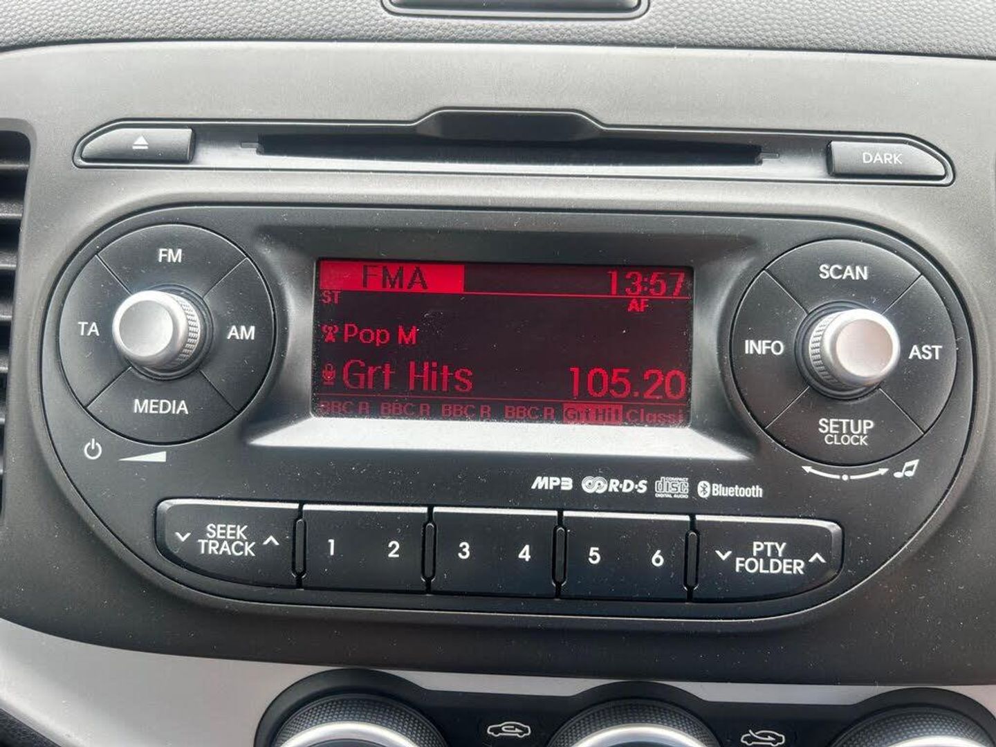 12V Power Socket, 14in Alloy Wheels, 3 x Passenger Assist Grips, 4-Speaker System, 60-40 Split Folding 2nd Row Seats, ABS - Anti Lock Braking System, Adaptive Brake Lights, Air Conditioning, Airbags - Curtain, Airbags - Driver, Airbags - Passenger, Airbags - Side, Alarm System, All-Round Height Adjustable Headrests, BAS - Brake Assist System, Black Radiator Grille with Chrome Surround, Bluetooth with Voice Recognition, Body Coloured Bumpers, Body Coloured Door Mirrors, Centre Fascia - Metallic, Child Safety Rear Door Locks, Coat Hooks - Rear, Cupholders - Centre Console with Ambient Lighting, Day and Night Rear-View Mirror, Daytime Running Lights, Door Handles - Chrome, Door Handles - Interior - Chrome Finish, Drivers Seat Height Adjuster, EBD - Electronic Brakeforce Distribution, ESC - Electronic Stability Control, Electric Windows - Front and Rear, Electrically Adjustable and Heated Door Mirrors, Electrically Folding Door Mirrors, Emergency Stop Signalling - ESS, Engine Immobiliser, Front Cabin Map Light, Front Door Map Pockets, Front Fog Lights, Front Passenger Airbag Cut Off Switch, Front Passenger Seat Undertray, Front Seatback Pockets, Glovebox, Headlight Levelling System, Heated Rear Window, High Mounted Brake Light, Hill-Start Assist Control - HAC, ISOFIX Child Seat Top Tethers and Anchor Fixings, Impact Sensing Auto Door Unlocking, Inside Handle Over Ride, Instant Mobility Tyre Inflation System, Integrated Indicator Lights LED in Door Mirrors, Leather Trimmed Gear Shift, Leather Trimmed Steering Wheel, Locking Wheel Nuts, Luggage Area Light, Luggage Compartment - Load Cover, Motor Driven Power Steering - MDPS, RDS Radio with CD and MP3, Rear Combination Lights, Remote Central Locking with Folding Key, Seatbelt Reminder Warning, Side Impact Protection System, Speed Sensing Auto Door Locking, Speed/Impact Sensing, Steering Wheel Mounted Audio Controls, Sunvisors with Vanity Mirrors and Ticket Holder, Tilt Steering Wheel Adjustment, Tinted Glass, Trip Computer, Tyre Repair Kit, USB and AUX Ports, VSM - Vehicle Stability Management, iPod Connectivity