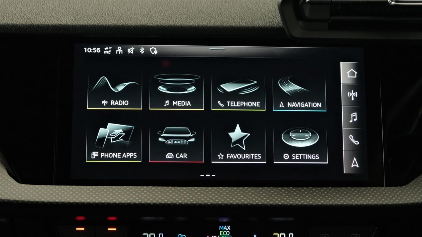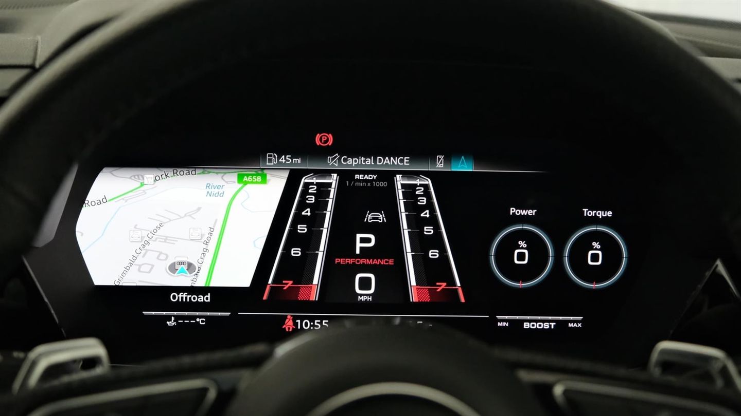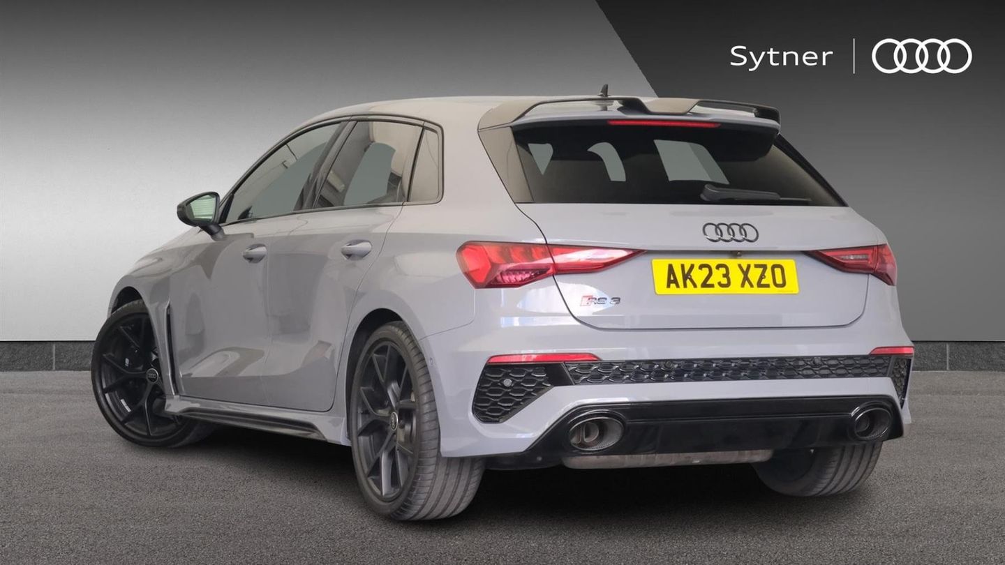 Reserve Online,Comfort and Sound Pack,Bang & Olufsen Premium Sound System with 3D sound,Rear view camera system,MMI navigation plus with MMI touch - RS3,Audi smartphone interface,Audi virtual cockpit with RS specific display 12.3" full colour digital instrument cluster,Audi matrix LED headlights LED rear lights, dynamic front and rear indicators and headlight cleaning system,Light and rain sensors,Auto dimming rear view mirror,Tyre pressure loss indicator,Parking assist with parking system plus,RS sports exhaust system,Dual zone electronic climate control,Heated front seats,Ambient lighting pack - RS3,Audi beam uses LEDs to project the Audi sport logo onto the ground as you exit your RS 3,Carbon roof spoiler