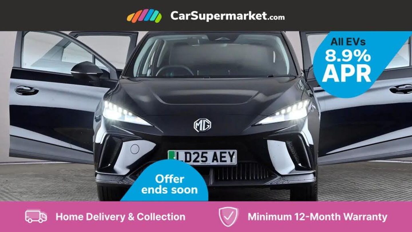 Cruise Control, Adaptive Cruise Control, Android Auto, Apple CarPlay, Traffic Sign Recognition, Lane Departure Warning, Parking Sensors, Sat Nav, 17" Alloy Wheels;Boasting exceptionally low mileage for its age, this 2025 MG MG4 SE Long Range presents a superb ownership proposition with only one previous keeper and an MOT valid until April 2028. This electric vehicle, equipped with a 64 kWh battery, offers an impressive maximum range of 281 miles, making it ideal for both daily commutes and longer journeys. Charging is convenient, taking approximately 10 hours at home using a 7kW charger, while rapid public charging can replenish the battery from empty to 80% in just 34 minutes. The vehicle history check is clear, providing peace of mind. Further enhancing the driving experience, this MG4 SE Long Range includes desirable features such as Adaptive Cruise Control, Apple CarPlay, and Android Auto, allowing seamless smartphone integration. Comfort is assured with Climate Control and the convenience of automatic headlights. The generous boot space provides ample room for luggage or shopping. These highlights demonstrate how this particular MG4 offers a superior combination of range, technology, and practicality compared to other vehicles in its class.