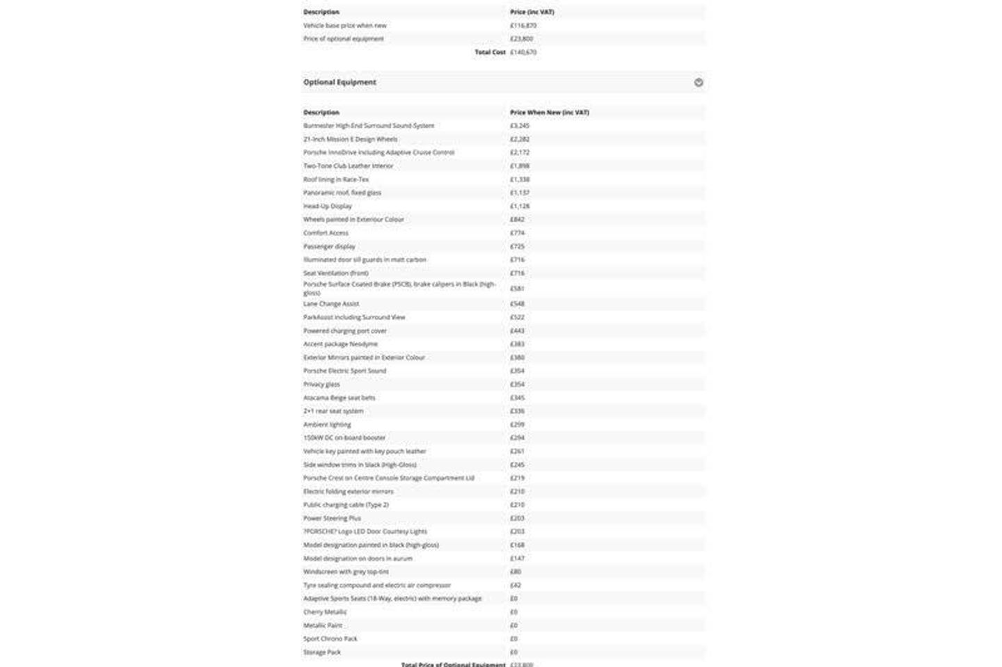 12v Electrical Socket in Rear Luggage Compartment, 12v Electrical Socket in the Centre Console Storage Compartment, 16.8in Curved Display, 2 USB-C Charge Ports in the Rear, 2 USB-C Connectivity and Charge Ports in the Centre Console Storage Compartment, 50kW DC On-Board Charger for use of Public Charging Stations with a voltage of 400V, BOSE Surround Sound System with 14 Speakers Including Subwoofer and a Total Output of 710 Watts, DC Charging at Public Charging Stations with Voltage of 800V, Digital Radio, Porsche Communication Management PCM Includes Navigation Module Mobile Phone Preparation Audio Interface and Voice Control System, Porsche Connect with Apple Carplay, Wireless Phone Charging in Centre Console Storage Compartment, Brake Pad Wear Indicator, Cruise Control including Adaptive Speed Limiter, ParkAssist - Front and Rear with Visual and Audible Warning, Range Mode for the Activation of Efficiency-Orientated Settings, Reversing Camera, Sport Mode for the Activation of Dynamic Performance Settings Including Launch Control, Tyre Pressure Monitoring - TPM, 20in Alloy Wheels - Taycan Turbo Aero, Auto-Deploying Door Handles, Brake Calipers Painted in White Finish, Bumpers Comprising High-Strength Cross Members and Two Deformation Elements Each with One Threaded Fixture Point for Towing Eye Contained in On-Board Tool Kit, Electric Windows - Front and Rear, Electrically Adjustable and Heated Exterior Mirrors - Aspherical on Drivers Side, Emergency Tyre Sealant and Pump Kit, Engine Bonnet - Rear Tailgate - Doors - Side Panels - Roof and Front Wings in Aluminium, Exterior Mirror Lower Trims Painted in Exterior Colour Including Mirror Base in Black, Four-Piston Aluminium Monobloc Fixed Brake Calipers at Rear, Fully Galvanised Steel-Aluminium Hybrid Lightweight Bodyshell, Heated Rear Window with Auto-Off Function, Light Strip, Lower Valance with Inlays Painted in Exterior Colour, Model Designation on Tailgate in Silver Colour, Porsche Active Aerodynamics with Active Air Intake Flaps and Adaptive Rear Spoiler, Porsche Logo in Glass Look Integrated into Rear Light Strip, Rear Diffuser in Louvered Design with Inlay Painted in Exterior Colour, Roof in Aluminium Contoured Design with Dynamic Recess Profile, Side Window Trims - Silver Colour - High-Gloss, Sideskirts in Black with Inlays Painted in Exterior Colour, Six-Piston Aluminium Monobloc Fixed Brake Calipers at Front, Taycan Badge on the Centre Console, Thermally Insulated Glass All Round, Upper Valance with Vertical Air Intakes - Air Curtain, Wheel Centres with Monochrome Porsche Crest, 4-Point LED Daytime Running Lights, Automatic Headlight Activation including Welcome Home Lighting, LED Matrix Headlights including Porsche Dynamic Light System Plus, Third Brake Light, Accent Package in Black, Active Carbon Fine Dust Filter, Advanced 2-Zone Climate Control, Automatically Dimming Exterior and Interior Mirrors, B-Pillar Clothes Hook on Driver and Passengers Side, Centre Console with Direct Touch Control, Charge Port on Driver and Front Passenger Side, Comfort Seats - Front 14-Way Electric with Memory Package, Door Sill Guards in Brushed Aluminium, Driver Personalisation, Floor Mats, Front Centre Console Armrest with Integrated Storage Compartment, Heat Pump, Illuminated Vanity Mirrors for Driver and Front Passenger, Integrated Front Headrests, Keyless Drive, LED Interior Lighting Concept, Luggage Compartments at Front and Rear, Multi-Function Sports Steering Wheel in Leather, Pedal Pads Edges in Stainless Steel, Porsche Intelligent Range Manager, Power Boot Lid, Rear Seats with 2 Seats in Single-Seat Look - Fold out Armrest and Split Folding Backrests 60-40, Roof Lining in Fabric, Seat Heating - Front and Rear, Storage Compartment, Sun Visors for Driver and Front Passenger, Turbo Logo on the Front and Rear Headrests, Two Integrated Cupholders Front and Rear, Windscreen Wiper System Including Rain Sensor and Washer Jets, 11kW AC On-Board Charger, Adaptive Air Suspens