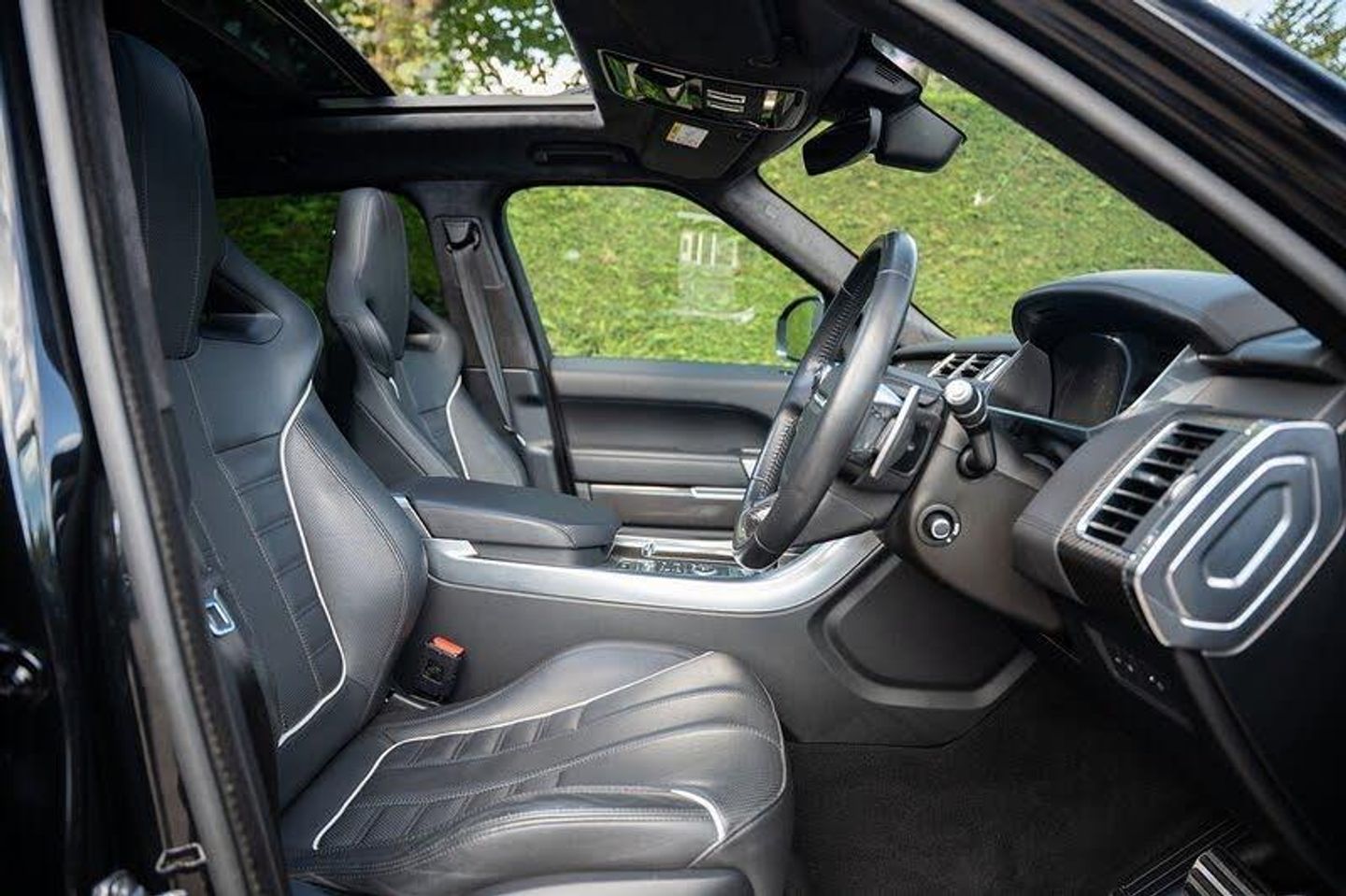 Bluetooth Phone Connection and Bluetooth Audio Streaming, DAB - Digital Audio Broadcast, Hard Disk Navigation System, InControl Apps, InControl Protect, InControl Remote Premium for Warranty Period, Meridian Digital Surround Sound System, Pro Services for Warranty Period, 360 Park Distance Control, Adaptive Cruise Control with Queue Assist and Intelligent Emergency Braking, Blind Spot Monitor with Reverse Traffic Detection, Driver Condition Monitor, Front and Rear Parking Aid, Lane Departure Warning, Parking Aid - Rear View Camera, Terrain Response 2, Terrain Response 2 with Dynamic Program, TFT Virtual Instrument Panel, TPMS - Tyre Pressure Monitoring System, Traffic Sign Recognition and Intelligent Speed Limiter, 22in Alloy Wheels - 10 Split Spoke - Style 108, Active Sports Exhaust, Blue Painted Brake Calipers, Body Coloured Door Handles, Body Coloured Roof, Body Coloured Side Sills and Bumpers, Bonnet Vents - Gloss Black, Bright Quad Tailpipes, Door Mirrors - Power Adjustable-Heated-Power Fold-Auto Dimming with Approach Lights, Gloss Black Door Mirror Caps, Grille Mesh - Gloss Black, Grille Surround - Gloss Black, Heated Windscreen with Heated Washer Jets, Illuminated Aluminium Front Tread Plates with Range Rover Script, Laminated Front Door - Toughened Rear Door and Quarter Light Glass, Locking Wheel Nuts, Metal Roof, Power Windows - Front and Rear with Remote Power Locking, Side Vents - Gloss Black, SVR Badge, Tailgate Finisher - Gloss Black, Tyre Repair System, Automatic High Beam Assist, Follow Me Home Lighting, Front and Rear Fog Lights, Rear Lights - LED, Xenon Headlamps with LED Signature Lighting, 60-40 Folding Rear Seats, Auto-Dimming Interior Mirror, Bright Sport Pedals, Centre Armrest with Cubby Box, Configurable Interior Mood Lighting, Footrest, Front and Rear Cupholders, Front and Rear Grab Handles, Front and Rear Premium Carpet Mats, Gesture Tailgate, Heated Front and Rear Seats, Leather Heated Steering Wheel, Loadspace Compartment Light, Noble Plated Paddle Shift, Non Smokers Pack, Power Adjustable Steering Column, Rain Sensing Windscreen Wipers, Roller Loadspace Cover, Seats - Front Style 9, Sunvisor, Three-Zone Climate Control, Trim Finisher - Dark Engine Turned Aluminium, Adaptive Dynamics, Dynamic Response, EPAS - Speed Proportional Electric Power Assisted Steering, SVR Four Corner Electronic Air Suspension, Torque Vectoring, Twin Speed Transfer Box - High-Low Range, ABS - Anti Lock Braking System, Autonomous Emergency Braking - City-Urban and Pedestrian, CBC - Cornering Brake Control, Driver and Passenger Airbags, DSC - Dynamic Stability Control, EBA - Emergency Brake Assist, EBD - Electronic Brake-Force Distribution, EPB - Electronic Park Brake, ETC - Electronic Traction Control, Hazard Warning Lights Under Heavy Braking, HDC - Hill Descent Control, HSA - Hill Start Assist, InControl Secure for Warranty Period, Intrusion Sensor, ISOFIX Child Seat Anchor Points, Keyless Entry with Push Start Button, Low Traction Launch, Power Operated Child Locks, RSC - Roll Stability Control, Trailer Stability Control, Volumetric and Perimetric Alarm