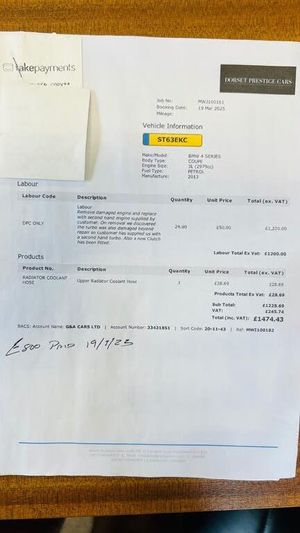 Reign Automotive Are Proud To Present This 2013 BMW 435i In Metallic Black, 3SDM 19" Anthracite Alloy Wheels With Yellow Calliper's, Front & Rear Parking Sensors, Carbon Fibre Boot Spoiler, Uv Protection Window Film, Headlamp Washer Jets. Service Records: Backed Up With Partial History From I Drive & Paperwork. 15/12/2015 @ 19847, 10/10/2016 @ 21743, --- 12/09/2024 @ 71133. New Engine Fitted Due To Engine Failure - New Engine Is The M2 Engine Due To Better Internals @ 42023 - Dash Shows 81695. 19/03/2025 - New Engine - Clutch - Turbo 13/05/2025 - Alternator & Belt 23/06/2025 - Rear Pads, Crank Breather Pipe, Taillight & Wiring 04/08/2025 - New Clutch Fitted All Works Carried Out Is Documented In Photos Interior: Full Black Leather Upholstery With Heated Element, Ebony Wood Interior Trim, Multifunctional Steering Wheel With Source Media Controls, Cruise Control, Trip Computer, On Board I Drive System With Vehicle Statistics, Satellite Navigation, Bluetooth Media & Telephony, CD/Radio/Aux/Bluetooth Media With Harmon Kardon Speaker System, Dual Zone Air Conditioning, IsoFix Rear Bench. This Example Is Stunning, Mot Is Until 30th June 2026 ** This Vehicle Has A Category N Marker On The Car & Has Been Repaired By A Vehicle Specialist, Engine Work Has Been Carried Out - All Information Can Been Seen In The Service History, Any Questions I Am Happy To Answer - Category N Vehicle *** 2 Keys, 3 Previous Owners ** Insurance Group * 36 * Reg* ST63 EKC * *Full Details : www.reignautomotive.com * All of Our Vehicles Come With 3 Months Warranty First Or AA Warranty For Full Peace Of Mind (up to 36 Month Extension Available With Our Warranty Partners), **Unless Otherwise Stated Or Agreed ** All Vehicles At Point Of Sale Are Valeted Before Handover** Nationwide Delivery Available On All Vehicles @ £1.50 Per Mile (1 Way + Drivers Fee Of £40 ) Part Exchange welcome. Open Monday to Saturday, 830 - 5 ** Sundays Viewing By Appointment Only*** All Major Credit & Debit Cards Accepted. Please visit our Website www.reignautomotive.com