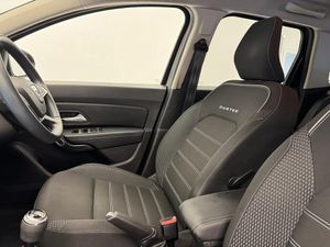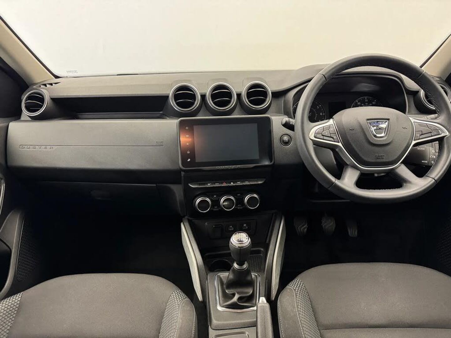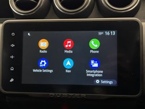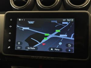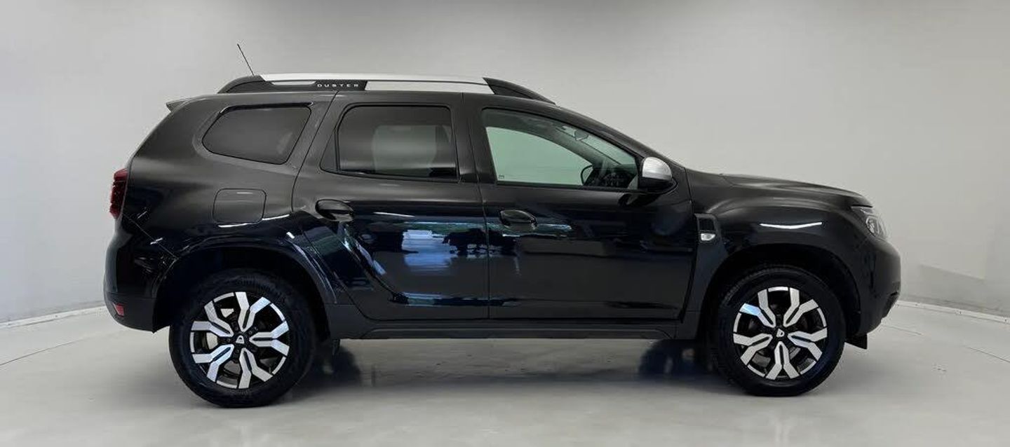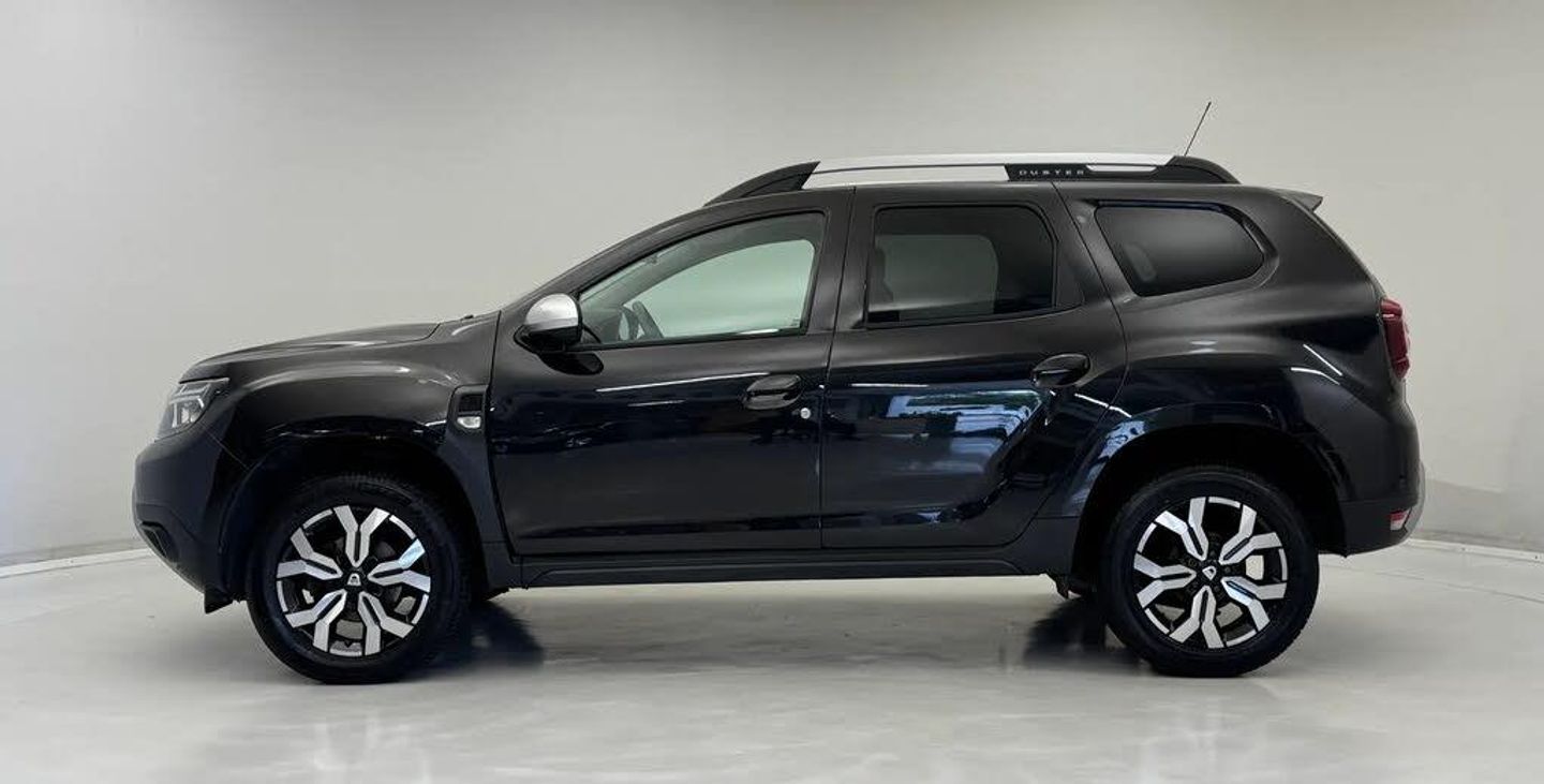 4x4 monitor with altimeter,Blind spot warning,Compass functional at 0km/h,Cruise control and speed limiter,Dacia instrument cluster,eCall emergency system,Eco mode,Electric power assisted steering,Multi view camera,On board computer, odometer, trip computer, average fuel consumption, average speed, service indicator, outside temperature gauge,Rear parking sensors and reverse camera,Rev counter,Stop/start system,8" Media Navigation with wireless smartphone replication,Dacia plug and radio/MP3/USB/bluetooth/DAB/steering wheel control,3 speed windscreen wipers,Acoustic windshield,Black side sills,Black/satin chrome tailgate trim with Duster inscription in black background and lettering,Body coloured door handles,Chrome front grille with hot stamping,Chrome logo surround on steering wheel,Dark glass on lateral rear windows,Dusk sensor,Electric adjustable/heated door mirrors,Electric front windows,Electric rear windows,Front and rear body coloured bumpers,Front door sill protection strip,Front fog lights,Grey quartz longitudinal roof bars with Duster inscription,Grey quartz painted door mirrors,Heated rear window,High level third rear brake light,LED automatically switched on - In main headlights,LED daytime running lights,Rain sensor,Rear side wing doors,Rear spoiler,Rear wash/wipe,Underbody protection skid plates,Y shaped LED headlights with rear LED lights,3 rear height adjustable headrests,3 seat bench in 2nd row,60/40 split folding rear seat,Automatic air conditioning,Backlighted steering wheel buttons,Boot light,Driver seat lumbar adjustment,Fabric decorative insert on door panels,Fabric upholstery,Front head restraints,Front passenger reading light,Gear shift indicator,Glovebox light,Heated seats,Height adjustable driver seat,Height adjustable front and rear headrests,Height and depth adjustable steering wheel,High centre console with driver armrest,Isofix points for child seats in both outer rear seats,Map pocket on front seat backs,Passenger sunvisor with vanity mirror,Rear passenger reading light,Satin chrome gear lever cap insert,Satin chrome interior door handles,Satin chrome lower steering wheel insert,Single front passenger seat,Soft feel leather steering wheel,3x3 point rear seatbelts,ABS and Emergency brake assist,ASR traction control with Electronic stability control,Child locks on rear doors,Door open visual and audible warning,Driver airbag,Driver and passenger seatbelt not fastened - visual and audible warning,EBD - Electronic brakeforce distribution,Front passenger airbag,Front passenger airbag deactivation,Front seatbelt pretensioners,Front side airbags,Height adjustable front seatbelts,Hill start assist,Tyre pressure monitor,Keyless entry,Remote central locking,Thatcham approved engine immobiliser,Dark carbon central console surround,Matt black central console fascia,Piano black decorative insert on door panels,Satin chrome air vent surround,17" Alloy wheels,Tyre inflation kit