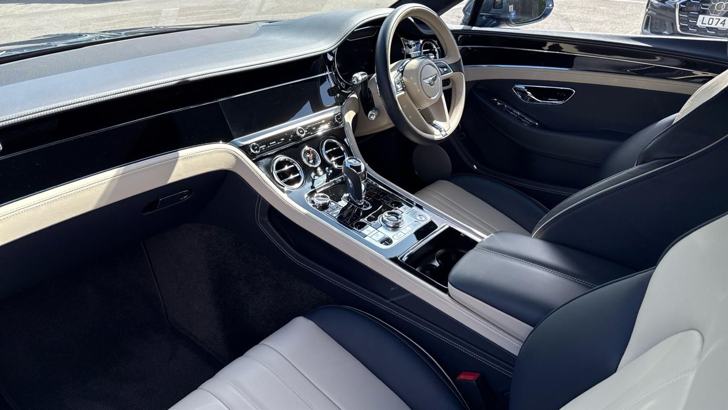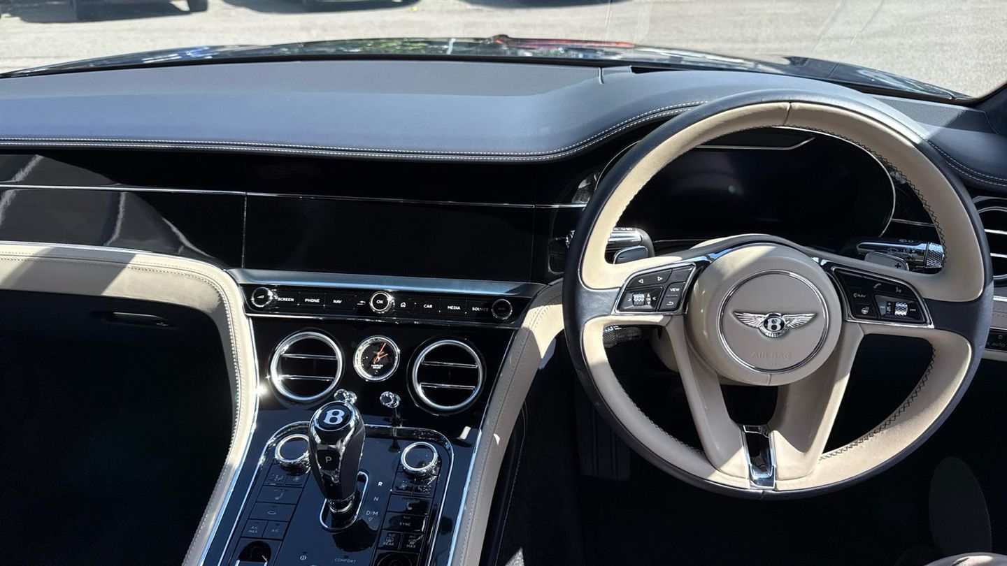 A stunning example of a Continental GT W12 with a Meteor Exterior and Portland Interior. Certified Bentley Continental GT W12 finished in Meteor, with Portland and Imperial Blue Interior, fitted with almost 20,000 pounds worth of optional extras such as City Specification, Touring Specification, Embroidered Bentley Emblems, Welcome Lighting, LED Welcome Lamps by Mulliner, Heated Duo Tone 3 Spoke Hide Trimmed Steering Wheel, Bentley Rotating Display, Contrast Stitching and Piping, and more. Contact our Sales Team for further specification or to book a test drive..