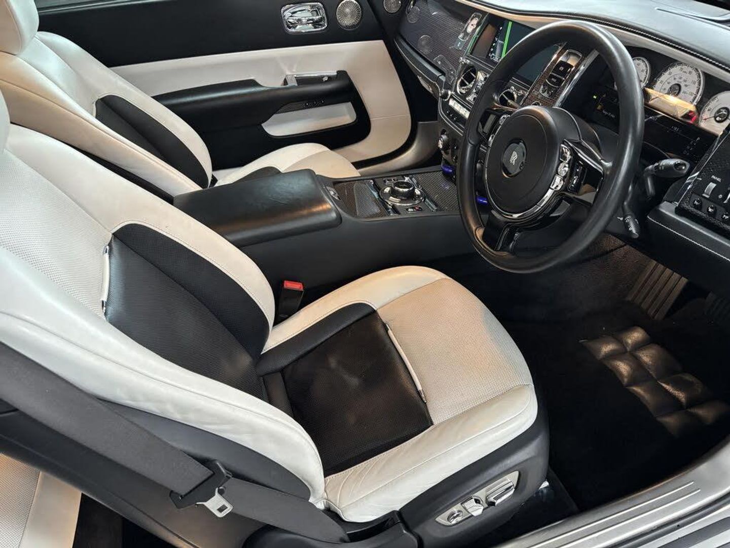 Rear Privacy Glass,10.25in Colour Display - Concealed Behind an Openable Veneered Cover,20.5GB Hard Disc for Music Files from either USB or CD Player,21in Alloy Wheels - Carbon Composite Wheels,3rd Brake Light with LED Prism Technology,ABS - Anti-Lock Brakes,Adaptive Headlights,Airbag - Driver and Front Passenger Knee,Airbag - Head Protection System Front and Rear,Airbag - Intelligent Driver,Airbag - Intelligent Front Passenger,Aluminium Bonnet and Composite Boot Lid,Auto On Headlights,Auxiliary Input Socket and USB Input Socker for Multi Media,Bespoke Sport Exhaust,Black Badge Chassis Setting and Drivetrain,Black Badge Infinity Clock,Black Badge Interior Environment,Black Badge Technical Fibre,Black Cashmere Headlining,Bluetooth Connection for Phone,Climate Control - Four Zone,Contrast Stitching,Convenience Door Pocket Lighting,Cornering Brake Control,DAB Radio,Dark Chrome Detailing,Dark Chromed Spirit of Ecstasy,Daytime Running Lights - LED,Door Mirrors - Body-Coloured Heated and Folding,Dynamic Brake Control,Dynamic Cruise Control with Speed Regulation Through Fuel Control or Braking,Dynamic Emergency Brake,Dynamic Stability Control,Dynamic Traction Control,Electric Parking Brake,Electrically Retracting Spirt of Ecstasy Grille Ornament,Electronic Variable Damping Control,Electronically Regulated Coach Doors with Power Closing Assistance,Front Electric Windows,Front Seat Active Head Restraints,Front Ventilated Seats,Grey Tinted Graduation Upper Band to Front Windscreen - Compatible with Toll Collection Devices,High Pressure Headlight Cleaners,Hill Hold Function,ISOFIX and Top Tether Child Seat Preparation,Independent Front Wishbone Suspension with Stabiliser Bar and Air Springs,Independent Rear Multi-Link Suspension with Stabiliser Bar and Air Springs,Integrated Teflon Coated Umbrellas in Front Wings,Interior Leather,LED Headlights,Laminated Glass with Climate Control Glazing,Mobile Application Preparation,Mono Interior Environment,On Board Handbook Containing Comprehensive Vehicle Information,Parking Sensors - Front,Parking Sensors - Rear,Power Open and Close for Luggage Compartment Lid,Premium Audio System - CD DVD Player with AM FM Radio,RTTI - Real Time Traffic Information,Rain Sensing Variable Speed Windshield Wipers,Remote Power Locks,Rolls-Royce Assist Telematics,Satellite Navigation System,Seats - Electrically Adjustable Driver Seat,Seats - Electrically Adjustable Front Passenger Seat,Seats - Heated Electrically Adjustable Front,Self Righting Wheel Centres,Side Parking and Rear Lights - LED,Soft Close Latches for All Doors,Speakers x16,Sport Exhaust,Steering Wheel - Full Leather Covered,Steering Wheel - Multi Function,Subwoofers,Treadplates - Black Badge,Trip Computer,Tyre Pressure Monitor,Vehicle Information Featuring On-Board Diagnosis and Condition Based Servicing,Vehicle Security System with Interior Motion Detector and Engine Immobilisation,Vehicle Speed-Proportional Power Steering,Veneer - Piano Black,Visible Twin Exhaust Tailpipes,Voice Activating System for Radio - Phone - Nav System,Wood Veneer on Fascia Centre Console and Door Panniers