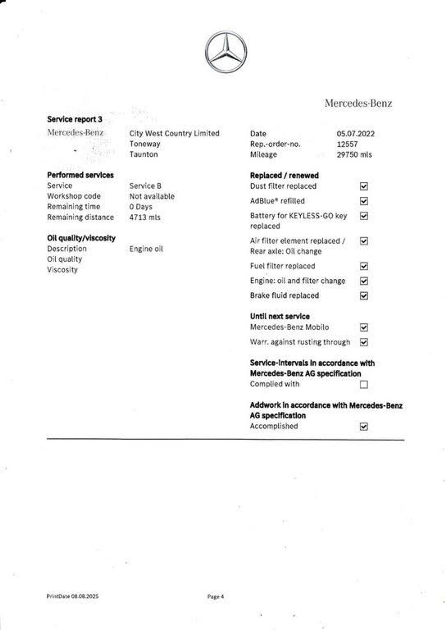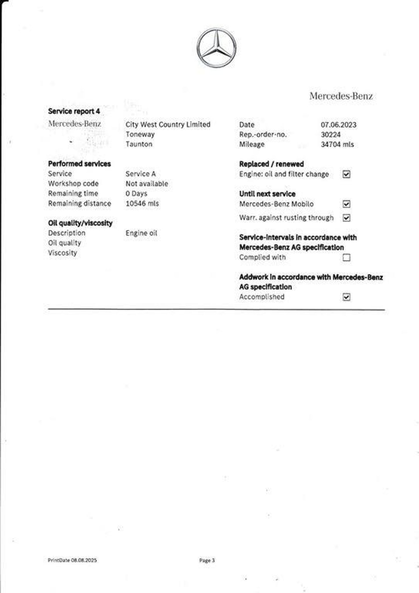 - Mileage
