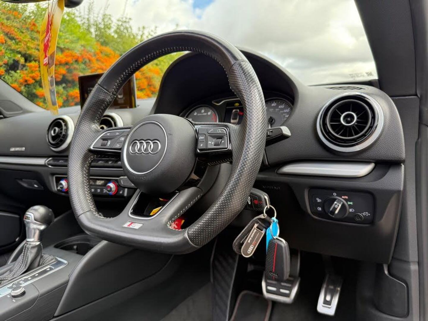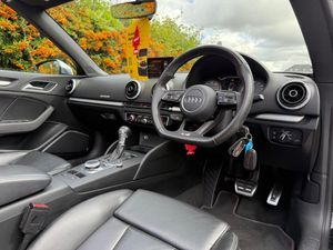 19in Alloy Wheels - 5 Twin Spoke Star Design in Contrast Grey with Diamond Cut Finish, 2 x USB Charging Ports and 1 x AUX-IN, Acoustic Hood - Fully Automatic, Active Bonnet, Active Roll-Over Protection System, Adaptive Brake Lights, Air Vents - Aluminium Look, Airbags, Aluminium Interior Elements, Aluminium Window Trims, Aluminium-Effect Door Mirror Housings, Anti Theft Locking Wheel Bolts, Anti-Theft Alarm, Audi Beam, Audi Connect Infotainment Services - 3 Month Trial, Audi Magnetic Ride, Audi Smartphone Interface, Audi Sound System, Black Hood, Bluetooth Interface, Brake Calipers Painted in Black with S3 Logo at the Front, CD Drive, Cloth Headlining in Black, Colour Drivers Information System - DIS, Cruise Control, Cupholders, DAB Digital Radio, Door Mirrors - Electrically Adjustable and Heated with Integrated LED Side Indicators, Dual-Zone Electronic Climate Control, ESC - Electronic Stabilisation Control, Electric Windows - Front and Rear, Electromechanical Parking Brake, Emergency Braking Function, Exhaust Tailpipe - Dual-Branch Oval Twin with Chrome Finish, First Aid Kit and Warning Triangle, Flat-Bottomed 3-Spoke Leather-Trimmed Multi-Function Sport Steering Wheel with Gear-Shift Paddles, Floor Mats - Front and Rear in Velour, Front Centre Armrest, Front Sports Seats, Gear Knob - Perforated Leather, Headlights Washers, High Mounted Third Brake Light, Hood Lining - Black, ISOFIX Child Seat Mounting and Top Tether for Front Passenger and Outer Rear Seats, Illuminated Door Sill Trims with S Logo, Inlays - Matt Brushed Aluminium, Instrument Dials with S3 Logo, Integrated Aerial Concealed Under Side Panel Trim, Keyless Go with Remote Central Locking, LED Headlights with LED Rear Lights and Dynamic Rear Indicators, LED Interior Light Package, Light and Rain Sensor, Luggage Compartment - Lashing Points x4, MMI Navigation - SD Card Based, MMI Radio Plus with 7in Electrically Retractable Colour MMI Screen, Multi Collision Brake Assist, Non-Smoking Package, Pedals - Brushed Stainless Steel, Platinum Grey S Grille with Chrome Plated Dual Struts and S3 Logo, Progressive Steering, Rear Parking Sensors, Rest Recommendation System, S Design Body Styling, S Sport Suspension, Seat Belt Reminder for All Seats, Seats - Heated Front, Seats - Split Folding Rear - 50-50 or Fully, Storage Compartments in the Door Side Trims-Centre Console-Under Drivers Seat, Storage Package, Sun Visors - Folding and Swivelling on Drivers and Front Passengers Side with Covered Vanity Mirror, Tool Kit and Car Jack, Tyre Pressure Warning Light, Tyre Repair Kit, Voice Control System, Windscreen - Acoustic with Sunband, Audi Parking System Plus, Audi Phone Box with Wireless Charging, Bang and Olufsen Sound System, 19in Alloy Wheels - 5-V Spoke Design in Matt Titanium Look - Diamond Cut Finish, Brake Calipers Painted in Red with S3 Logo at the Front, Door Mirrors - Heated-Electrically Adjustable-Folding, Door Mirrors - Heated-Electrically Adjustable-Folding-Auto-Dimming, Auto-Dimming Rear-View Mirror, Inlays - Matt Brushed Aluminium - Illuminated Design, Fine Nappa Leather - S Embossed Sports Seats - Black with Rock Grey Stitching, Audi Hill Hold Assist, Matrix LED Exterior Lighting Pack, Pre-Sense Basic