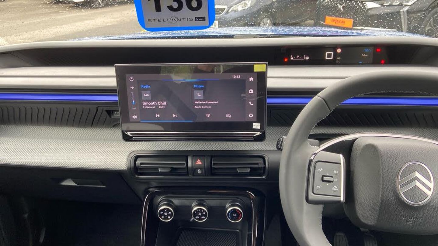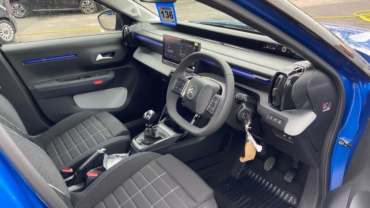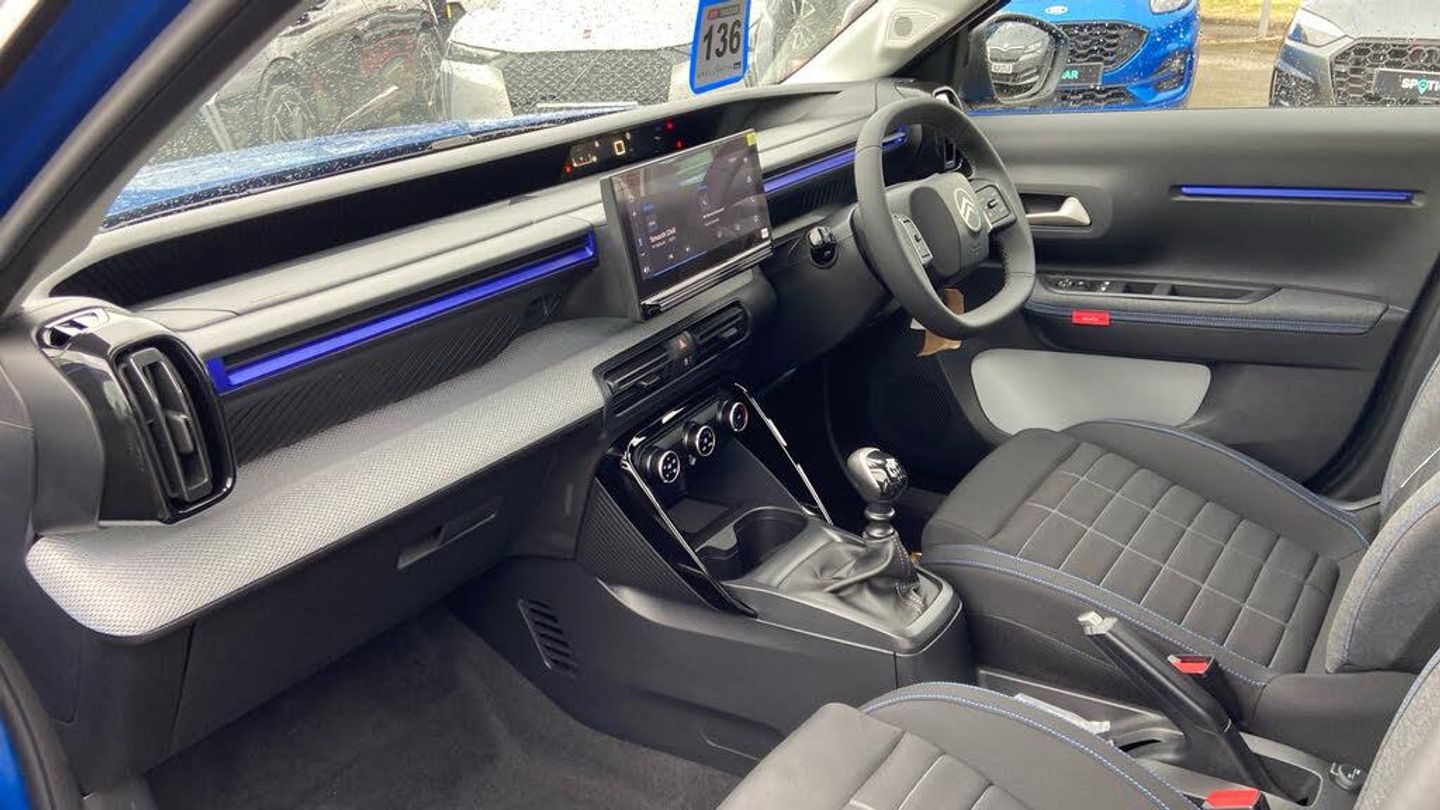 1 USB-C Connection - Data and Charging - On Dashboard, 1 USB-C Fast Charge in Row 2, 12V Socket On Console, Citroen Connect Box Emergency and Assistance System, Connected Services, DAB Radio - 6 Loudspeakers - 10.25in Capacitive Touchscreen - Wireless Mirror Screen with Apple CarPlay and Android Auto - Bluetooth, Active Lane Departure Warning System, Cruise Control with Speed Limiter, Gear Shift Indicator, Multifunction Trip Computer, Outside Temperature Indicator, Parking Sensors - Rear, Tyre Pressure Monitoring System, 17in Alloy Wheels - Atacamite - Diamond Cut Bi-Tone, Black Roof Bars, Black Wheel Arch Extensions, Body Colour Front and Rear Bumpers, Gloss Black Exterior Door Handles, Gloss Black Rear View Mirror Caps, Heated Rear Window, Interior Door Handles - Chrome Effect, Rear Spoiler, Rear View Mirror with Integrated Turn Indicators, Tinted Side Windows, LED Daytime Running Lights, LED Headlights with Electric Levelling, 1 Litre Bottle Storage in Front and Rear Door Pockets, 2-3 - 1-3 Split Folding Rear Bench, Air Vents - 2 Side and 2 Central on Dashboard, Anchoring Rings on Boot - x4, Bag Support Hook in Boot, Central Storage with 2 Cup Holders, Colour Clip on Front Bumper and C-Pillar, Drivers and Passengers Sunvisor with Courtesy Mirror, Drivers Seat Height Adjustment, Front Head Restraint with Height Adjustment, Front Seats Adjustable with Forward-Back Slide and Adjustable Backrest, Gear Knob - Matt Black with Gloss Black Insert, Glove Box - Closed, Height and Reach Adjustable Steering Wheel, LED Front Lighting Panel with Map Reading Lights, Manual Air Conditioning, Map Pockets in Back of Driver and Front Passenger Seats with Additional Pocket for Smartphone Storage, Padded Fabric Armrests in Front and Rear Doors with Labels, Parcel Shelf, Three Rear Seats with Head Restraints, Visibility Pack, Anti-Theft Alarm, Automatic Intelligent Beam Headlights, Child Locks on Rear Doors, Citroen Head-Up Display, Driver and Front Passenger Seatbelts with Pyrotechnic Pretensioners and Force Limiters, Electric Front Windows with Auto Down for the Driver and Auto Down for the Passenger, Electric Rear Windows, Exterior Mirrors - Electric - Heated - Electrically Folding, Fixed Boot Light, Front Passenger Airbag, Gloss Black Finish - B and C Pillar, Grey Decor on Dashboard, Grey Decor on Front Doors, Remote Central Locking with Deadlocks, Seatbelt Unfastened on the Move Audible and Visual Warning for All Seats, Standard Day-Night Switchable Interior Rear View Mirror, Steering Wheel - Leather Effect with Gloss Black and Chrome Elements and Integrated Audio - Telephone - Cruise Control - Speed Limit Controls, Three Rear Three-Point Seatbelts, Citroen Advanced Comfort Suspension with Progressive Hydraulic Cushions, Electric Power Steering, ABS - Anti-Lock Braking System, Airbags - Driver, Automatic Activation of Hazard Warning Lights in Case of Severe Deceleration, Automatic Door and Boot Locking when in Motion, ESP - Electronic Stability Programme with Anti-Skid System, Front and Rear Skid Plates in Grey, Front Side Airbags and Front and Rear Curtain Airbags, Hill Start Assist, ISOFIX Mountings on Outer Rear Seats with Top Tether and Labels Indicating Fixing Points, Manual Parking Brake, Monotone Horn, Safety Pack