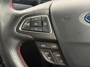 17in Alloy Wheels - 5 Spoke Dark Tarnish, Adjustable Boot Load Floor, Air Conditioning - Electronic Automatic Temperature Control - EATC, Airbags - Curtain, Airbags - Driver and Front Passenger, Airbags - Drivers Knee, Airbags - Front Passenger De-Activation Switch, Alarm - Thatcham Category 1 with Volume Sensing and Perimeter, Ambient Lighting - Instrument Panel and Footwell, Analogue Instrument Cluster, Anti-Lock Braking System - ABS with Electronic Stability Control - ESC, Auto-Dimming Electrochromic Rear-View Mirror, Automatic Headlights, Black Headlight Bezel, Black Roof Rails, Centre Console Cup Holder with Chrome Accent, Centre Console with Covered Bin and Sliding Armrest, Child Locks, Courtesy Light - Front with Two Map Lights, Courtesy Light - Rear, Cruise Control, Door Frame Beltline - Black, Door Handles - Body Colour, Door Mirrors - Body Colour Housing, Door Mirrors - Power-Foldable Heated with Integrated Side Indicator and Puddle Lights, Driver Seat Manual Height- Fore/Aft and Seatback Angle Adjustment and Recliner, Driver Seat Manual Rotary Knob Lumbar Support Adjustment, Driver and Passengers Sun Visor with Covered Vanity Mirror and Ticket Strip on Drivers Side, Drivers Stowage Glovebox, EPAS - Electric Power Assisted Steering, ESP - Electronic Stability Programme with Hill Launch Assist, Emergency Assistance, Engine Immobiliser, Ford Easy Fuel - Capless Refuelling System, Ford SYNC 3 Navigation with 8in Touchscreen, Front Fog Lights and Turn Indication Light Bezel - Body Colour, Front Fog Lights with Combined Turn Indication Light, Front Grille Bars and Surround - Ebony Black, Front Seat - Passenger Manual - Fore-Aft and Recline Adjustment, Front Seat - Under Passenger Seat Stowage, Front Seats - 2-Way Head Restraint Up-Down, Front Seats - 3 Point Seat Belts with Load Limiter and Seatbelt Height Adjust, Front Seats - Seat-Back Map Pockets, Front Suspension - Independent with MacPherson Struts and Anti-Roll Bar, Front and Rear Bumper - Body Colour with Dark Sport Insert, Front and Rear Floor Mats with Red Stitching, Front and Rear Folding Grab Handles, Front and Rear Power Points - 12V, Full Length Overhead Console with Sunglasses Holder, Gear Shift Indicator, Gearshift Knob - Leather-Trimmed with Black Insert and Aluminium-Finish Ring and Red Stitching, Glovebox with Cool Bin - Lid and Illumination, Halogen Rear Lights, Handbrake Grip - Leather-Trimmed with Red Stitching, Headlights - Courtesy Delay, Headlights - Levelling Control, Headlights - Projector Beam Headlight with LED Daytime Running Lights, Height Lumbar Adjustment on Drivers Seat, High Mounted Brake Light, IPS - Intelligent Protection System, Keyless Start with Ford Power Start Button, Large Rear Spoiler, Leather Handbrake and Gearknob, Load Compartment - Lights, Load Compartment Carpet, Load Compartment Side Trim Incorporating Shopping Hooks, Lower Body Side - Door Claddings - Body Colour, Manual Parking Brake, MyKey, Power Front and Rear Windows with Global Opening-Closing, Quickclear Heated Front Windscreen with Heated Washer Jets, Rake Adjustable Rear Seat, Rear Seat - 60-40 Split Folding Seats, Rear Seats - 2-Way Head Restraint Up-Down, Rear Seats - Centre Head Restraint - Up-Down, Rear Seats - Retractable Rear Seat Belt - 3-Point All Positions, Rear Suspension - Semi-Independent Twist Beam with Twin Gas and Oil-Filled Shock Absorbers, Rear View Camera Pack, Remote Central Locking, Rocker Panel and Side Cladding - Body Colour ST-Line Design, Roof Rails - Black Painted Finish, ST-Line Bodystyling Kit, ST-Line Front Grille, ST-Line Styled Rear Lights, Seat Belt Reminder System - Drivers and Front Passengers, Seats - ISOFIX Mounting Provision for Child Seats - Outer Seats Only, Side Impact Door Beams, Soft Instrument Panel Cover, Sports Pedals with Stainless Steel Inserts, Sports Suspension, Steering Column - Rake and Reach Adjustment, Steering Wheel - Perforated Leather-Trimmed with Chrome Inserts and Red Stitching, Suspension - Front Stabiliser