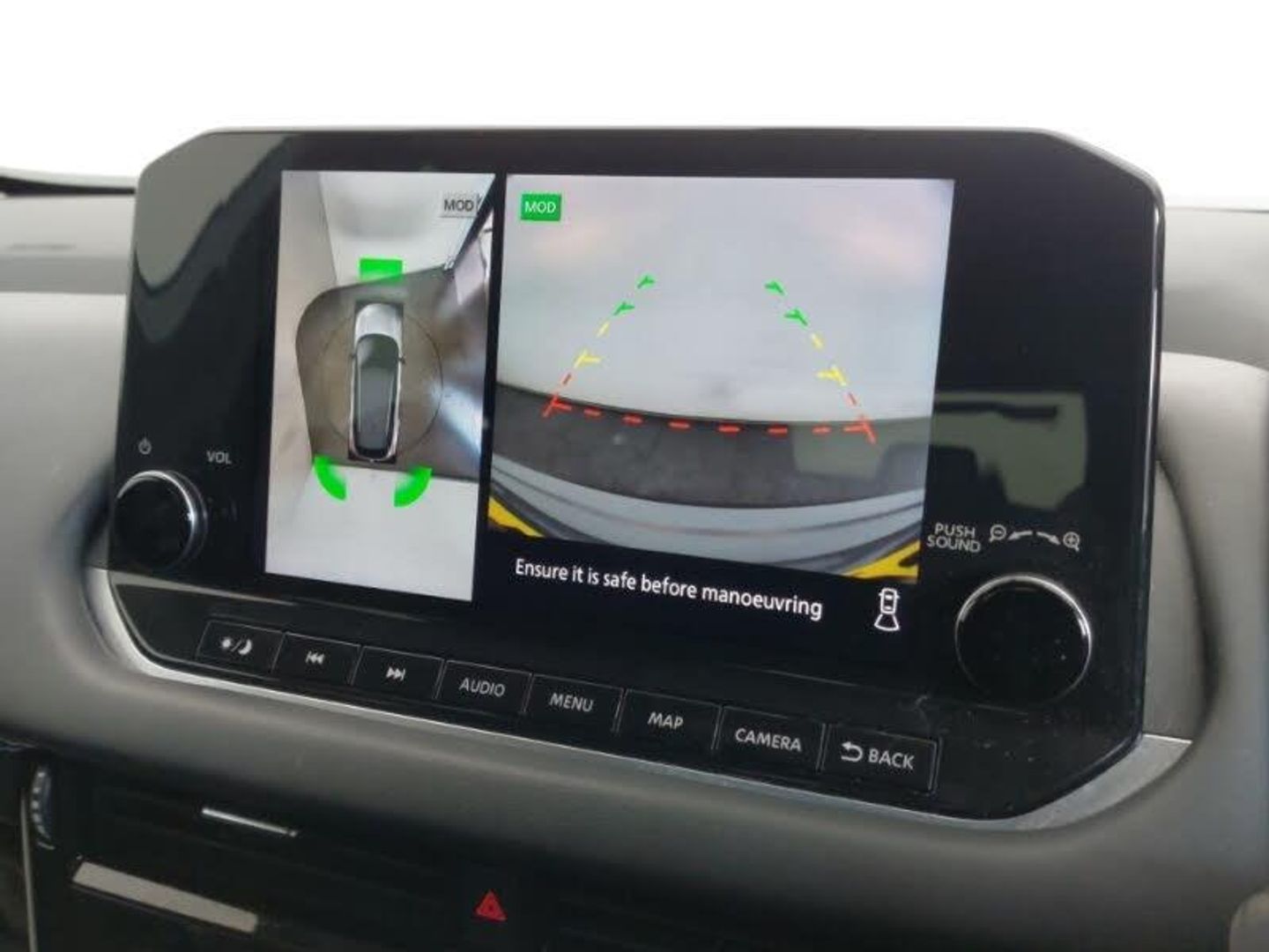 Adaptive cruise control, Android Auto, Apple CarPlay, LED daytime running lights, LED Headlights, Rear parking sensor, Speed limiter, Steering wheel audio controls, Android auto/Apple CarPlay (Wired), Blind spot warning, Full Digital 12.3" TFT Digital Combimeter, Nissan connect 12.3 inch touchscreen infotainment system, Moving object detection, Nissan connect navigation, Push button starter, Rear view camera, Remote control services - door locks, lights, horn and car locator, Wireless apple carplay, Bluetooth audio streaming, AM/FM audio system with DAB