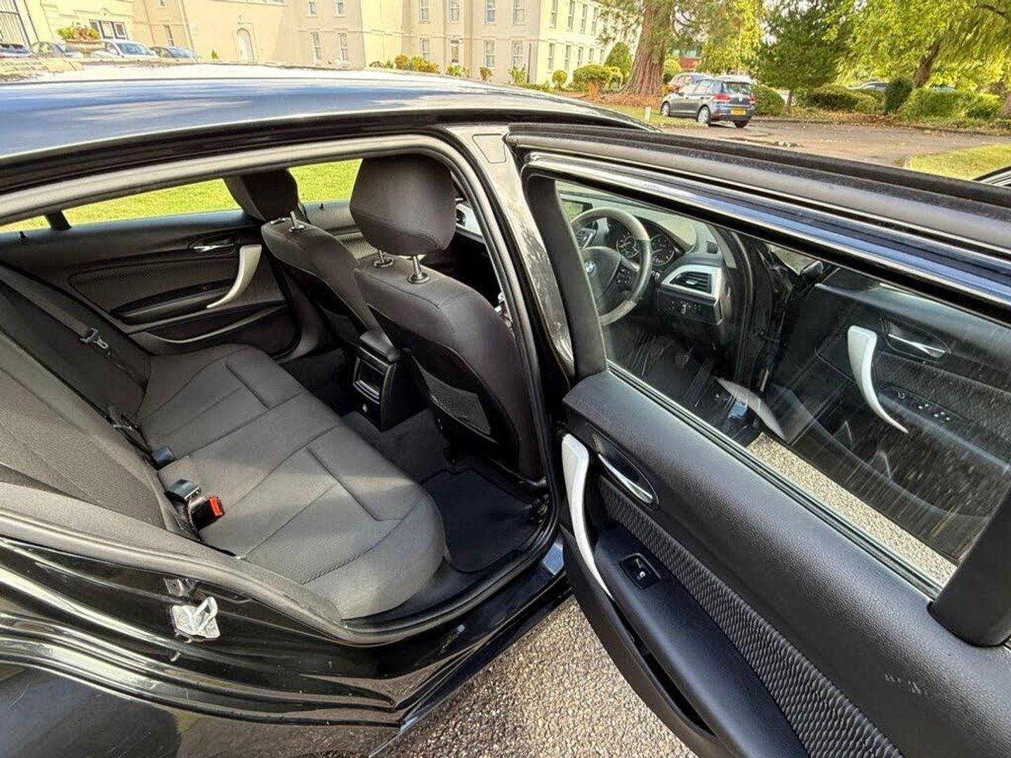 12V Power Socket - Centre Console, 12V Power Socket - Passenger Footwell, 16in Alloy Wheels - Light Star Spoke - 654, 3.5mm Auxiliary Input Point for Auxiliary Playing Devices, Active Differential Brake - ADB Sport - Electronic Differential Lock in DSC-Off Mode, Air Conditioning - Automatic - Single Zone, Airbags, Alarm System - Thatcham 1 with Remote Control and Engine Immobiliser, Armrest - Front with Sliding Adjustment, Battery Age Recognition Function, Battery Safety Cut Off, Black Sapphire, Bluetooth Hands Free with USB Audio Interface, BMW ConnectedDrive Online Services, BMW Emergency Call, BMW Navigation System, BMW Professional Radio - Single CD and MP3, BMW TeleServices, Brake Pad Wear Indicator - Front and Rear, Bumper System Front and Rear - Replaceable Deformation Elements for Impacts Up to 9mph, Central Locking Switch - Doors - Fuel Filler Cap - Luggage Compartment, Check Control Warning System for Monitoring of Lights and Door-Luggage Compartment Open Warning, Child Proof Locking System - Rear Doors, Child Seat ISOFIX Attachment for the Two Outer Rear Seats, Condition Based Service, Crash Sensor - Activating Central Locking Release - Hazard Warning Lights - Battery Safety Cut Off - Interior Lighting, Cruise Control with Brake Function, Cup Holders x2, DAB Digital Radio, Daytime Driving Lights, Direction Indicator - Side Repeaters - Integrated in Exterior Mirrors, Direction Indicator Lights - Clear Lenses, Door Mirrors - Electrically Adjustable, Door Sill Finishers - BMW Designation - Front - Black, Drive Performance Control with ECO PRO - Comfort and Sport Modes, DSC - Dynamic Stability Control Plus, Dynamic Brake Lights, Electric Windows - Front and Rear with Open-Close Fingertip Control - Anti-Trap Facility and Comfort Closing Function, Enhanced Bluetooth Telephone Preparation with USB Audio Interface and Voice Control, Exhaust Tailpipe - Single Round Left Chrome Finisher, Extended Storage, Exterior Parts in Body Colour, First Aid Kit and Warning Triangle, Floor Mats - Velour, Front Fog Lights, Glove Compartment, Glovebox - Handle with Chrome Surround, Grab Handles - Integrated in Roof Lining x4, Halogen Headlights, Handbrake and Gear Knob - Leather, Head Restraints - Rear and Folding, Heat Protection Glazing with Green Tint, High Level Third Brake Light, Incorrect Fuelling Protection System, Instrument Cluster, Interior Lighting - Front Centre Over Interior Mirror and Rear Centre, Interior Trim - Satin Silver, Kidney Grille - Chrome with Black Vertical Slats, Lashing Eyes in Luggage Compartment at Sill x2, Lights-On Warning by Audio Warning Signal When Ignition is Switched Off, Locking Wheel Bolts, Luggage Compartment - Light, Luggage Compartment Access via BMW Roundel, Mobility Tyre Sealing System, Model Designation, Move Cloth - Anthracite with Black Interior, Multifunction Controls for Steering Wheel, Non Smokers Package, OBC - On-Board Computer, Optimum Shift Indicator, PDC - Park Distance Control - Rear, Personal Profile, Rain Sensor with Automatic Headlight Activation, Real Time Traffic Information, Rear Fog Light - Offside, Rear Seat Headrests - Outer Headrests Folding, Rear Window Aerial, Remote Control Including Integrated Key - 2, Reversing Light in Rear Cluster - Nearside, Seat Belt Security Check for Driver and Front Passenger, Seats - 60-40 Split Folding Rear, Servotronic Steering, Shark Fin, Side Armrests - Front and Rear Integrated into Door Trim, Side Impact Protection, Standard Seat for Driver and Passenger with Manual Adjustment, Start-Stop Button with Comfort Go Keyless Engine Start and Auto Start-Stop Deactivation Button, Steering Wheel - 3-Spoke Leather, Steering-Wheel Column Adjustment - Manual, Storage Compartment - Rear Centre Console and in Door Trim - Front, Sun Visors with Vanity Mirrors and Ticket Holder, Three-Point Seat Belts - All Seats, TPMS - Tyre Pressure Monitoring System, Twin Horns, Tyres - Reduced Rolling Resistance, Visible VIN, Welcome Light, Windscreen Wiper - Rear
