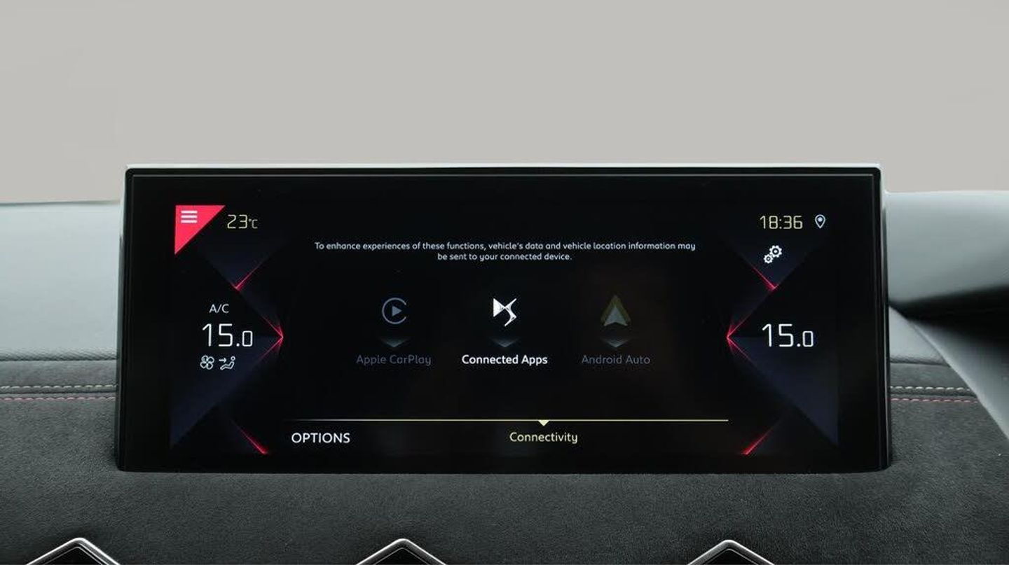 18 inch 'MONZA'diamond-cut alloy wheels, DS Connect Nav, DS LED rear Lights, DS Matrix LED Vision, DS Proximity Keyless Entry and Start, Frameless electrochrome interior rearview mirror, Front chrome door entry sill, Inspiration DS PERFORMANCE Line, Metallic Paint, Opal White roof, Platinum Grey, Space Saver spare wheel