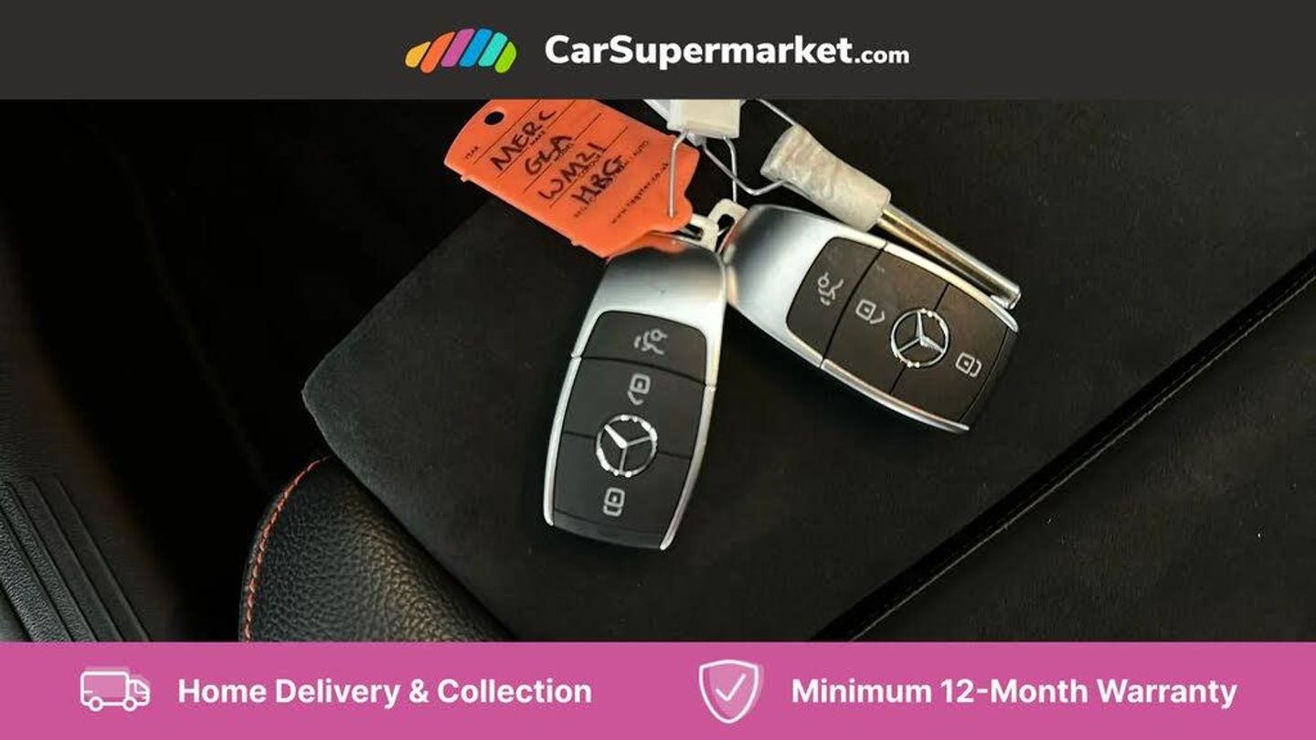 Cruise Control, Sat Nav, Apple CarPlay, Android Auto, Bluetooth, Digital Radio, Keyless Entry, Privacy Glass, Automatic Climate Control, Heated Front Seats, 19" Alloy Wheels;This 2021 Mercedes Benz GLA200d AMG Line boasts an exceptionally low mileage of just 22,649 miles, coupled with a full service history and a clear vehicle history check, ensuring peace of mind for its next owner. As a Euro 6 compliant model, it features a responsive 2.0L diesel engine and is presented in the desirable AMG Line trim. Notable features include striking LED High Performance Headlamps with integrated LED Daytime Running Lights, a premium Mercedes Benz Sound System delivering 100W of audio clarity, and the comfort of heated front seats. The last service was completed on 3rc October 2024 at 17,921 miles.