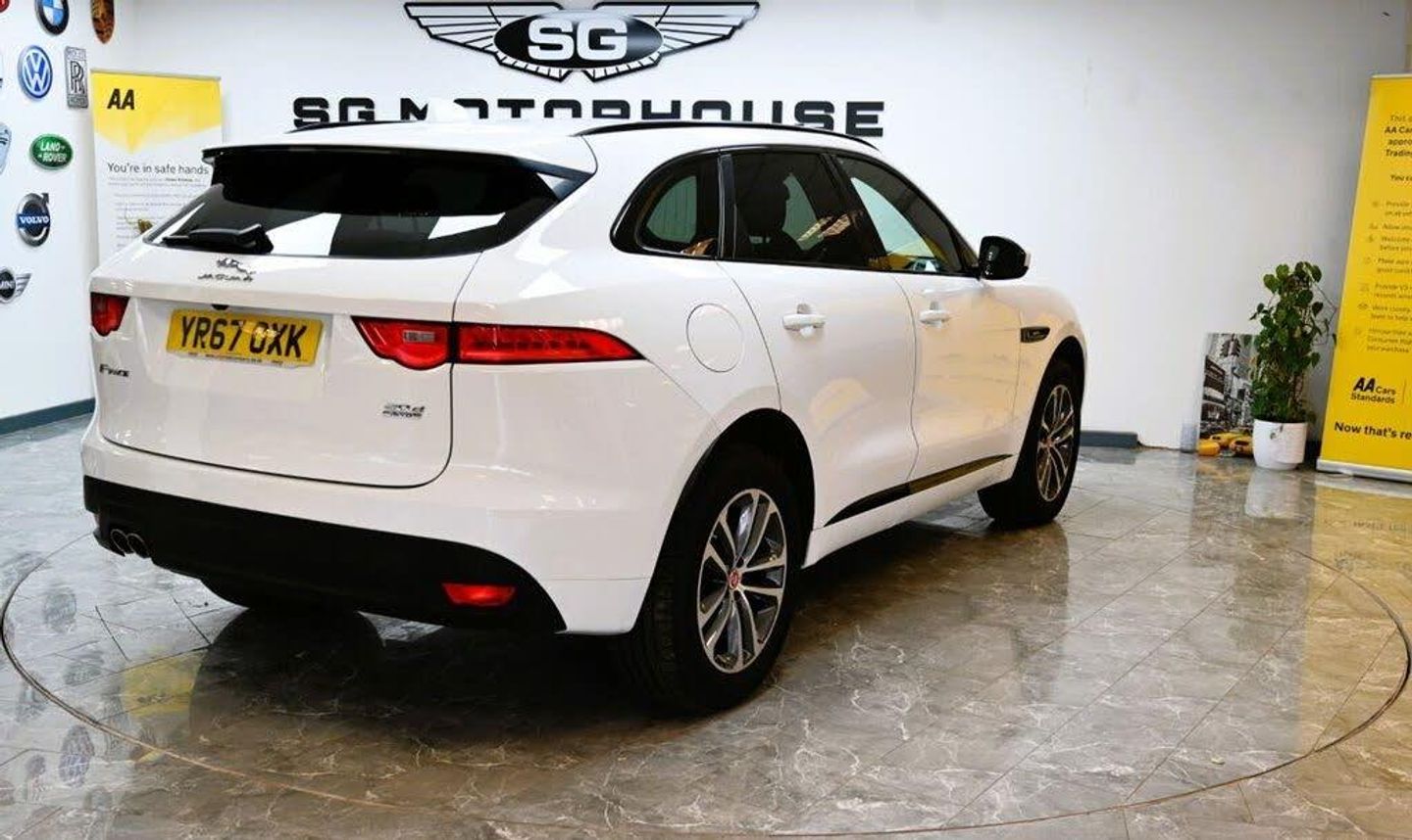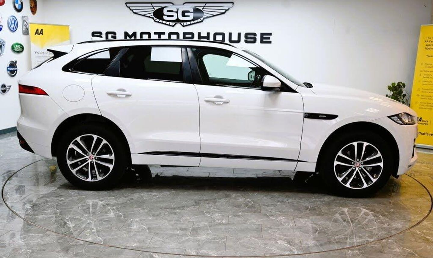 19in Alloy Wheels - 5 Split-Spoke Style 5038 - Grey Diamond Turned, 2-Zone Climate Control, 20d AWD Badge, 3-Flash Lane Change Indicators, 325mm Front Brakes, 40-20-40 Split Fold Rear Seat, 5in Display with Instrument Panel, 8-Way Manual Front Seats, ABS - Anti-locking Braking System, AEB - Autonomous Emergency Braking, Airbags - Front Side, Airbags - Full Length Side Window Curtain, Ambient Interior Lighting, Approach Illumination, ASPC - All Surface Progress Control, Auto-Dimming Interior Rear View Mirror, Bluetooth Audio Streaming, Bluetooth Telephone Connectivity, Brake Pad Wear Indicator, Bright Metal Pedals, Carpet Mats, Centre Console - Side Stowage, Centre Console - Storage Surround Finishers - Satin Chrome, Centre Console with Armrest, Cruise Control with Speed Limiter, Digital Audio Broadcast - DAB - Radio, Door Mirrors - Body Coloured, Door Trim - Luxtec, Dynamic Stability Control and Traction Control, Dynamic Volume Control, EBA - Emergency Brake Assist, Ebony Morzine Headlining, ECO Driving Style Assistant, Electric Windows - Front and Rear with One-Touch Open-Close and Anti-Trap, Electrically Adjustable Heated Door Mirrors, EPAS - Electric Power Assisted Steering, EPB - Electronic Parking Brake - Drive Away Release, Etched Aluminium Trim Finisher, Front Airbags with Passenger Seat Occupant Detector, Front Fog Lights, Front Headrests, Front Parking Aid, Gloss Black Roof Rails, Gloss Black Side Window Surround, Grained Black Radiator Grille with Satin Chrome Surround, Green Tinted Glass, Hazard Lights Under Heavy Braking, Heated Front Seats, Heated Rear Window, Hill Launch Assist, Hook in Loadspace, InControl Apps, Interior Front Door Handles with Separate Locking Switches, ISOFIX Rear, Jaguar Script and Leaper, Jaguar Sound System, Jaguar Tyre Repair System, JaguarDrive Control, Lane Departure Warning, LED Tail Lights, Loadbay - Luggage Tie Downs, Lockable Glovebox with Jaguar Script Finisher, Luxtec Wrapped Instrument Panel Topper, Manually Adjustable Steering Column, Metal Treadplates with R-Sport Branding, Navigation System, Outside Temperature Gauge, Overhead Lighting Console, Passive Front Head Restraints, Perimeter Alarm, Power Boot Lid, Power Operated Child Locks, Power Sockets, Power Tailgate, Protect for Warranty Period, Push Button Start, R-Sport Body Kit, Rain Sensing Windscreen Wipers, Rear Air Vents, Rear Armrest with Twin Cupholders, Rear F-Pace Badge, Rear Fog Lights, Rear Parking Aid, Remote Control Central Locking, Remote Premium for Warranty Period, Reversible Boot Floor - Carpet-Rubber, Satin Chrome Side Vents with R-Sport Badge, Satin Chrome Touchscreen Surround, Seat Belt Reminder, Seats - Sports, Second Row Centre Headrest, Single Sided Twin Tailpipes with 75mm Finishers, Single View 8in Touchscreen for Touch, Speed Proportional Steering, Start Up Sequence with Movement - Dials and Lighting, Steering Wheel - Multi-Function, Steering Wheel - R Sport Branded Soft Grain Leather, Steering Wheel - Satin Chrome Paddles, Torque Vectoring, Traffic Sign Recognition with Intelligent Speed Limiter, Trailer Stability Assist, Trip Computer, Twin Front Cupholders with Cover, Tyre Pressure Monitoring System, Valet Mode, Variable Intermittent Wipers, Vehicle Immobiliser, Wi-Fi Hotspot, Xenon Headlights with LED Signature