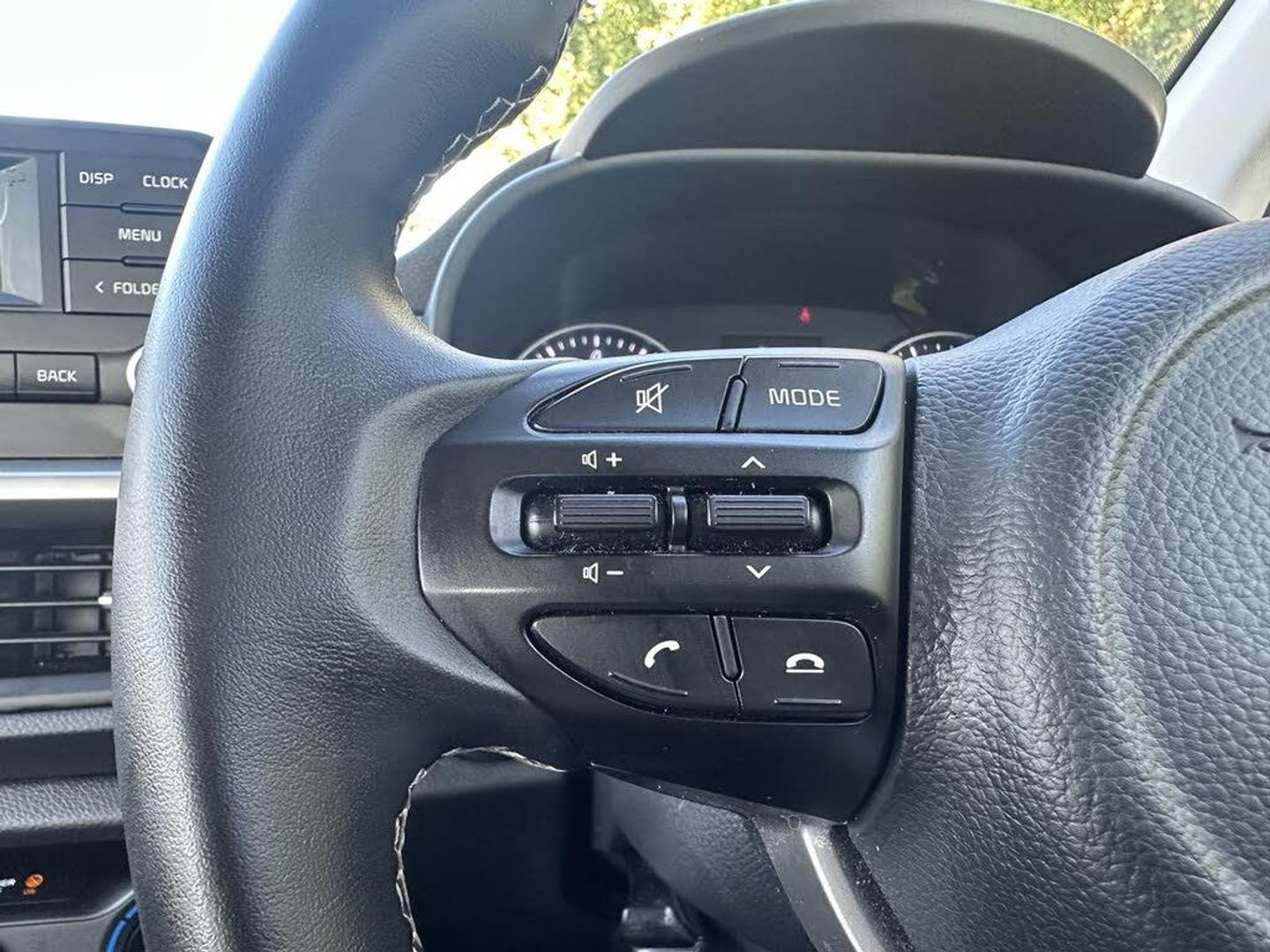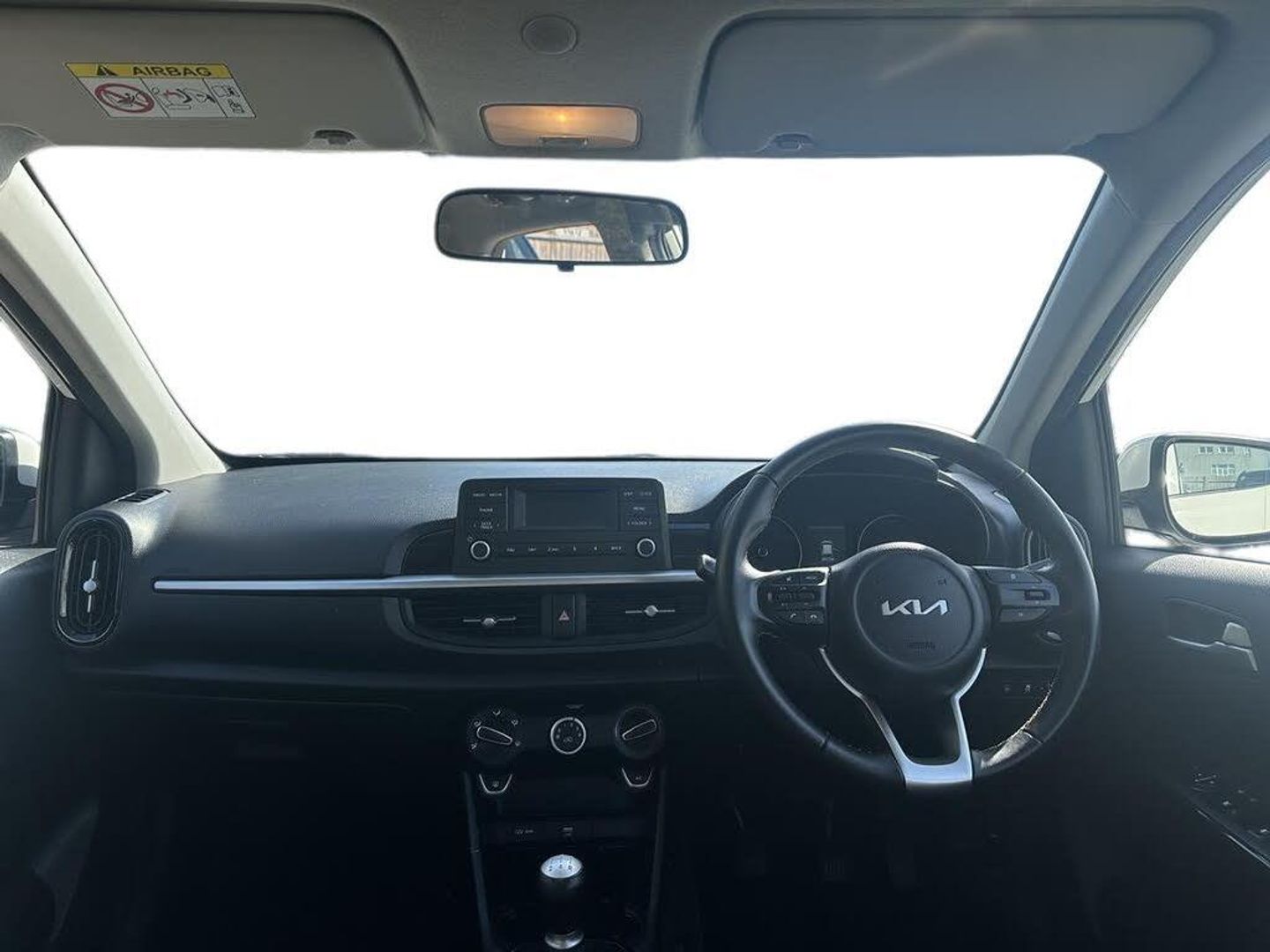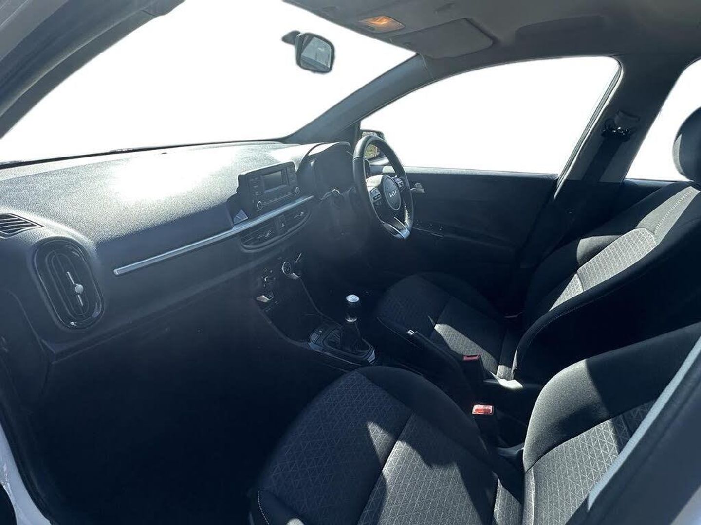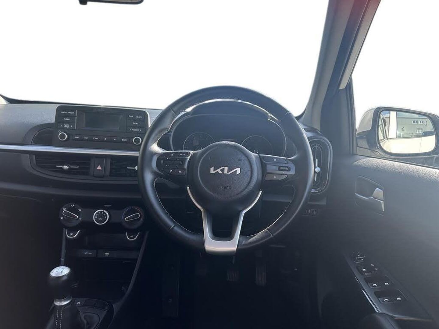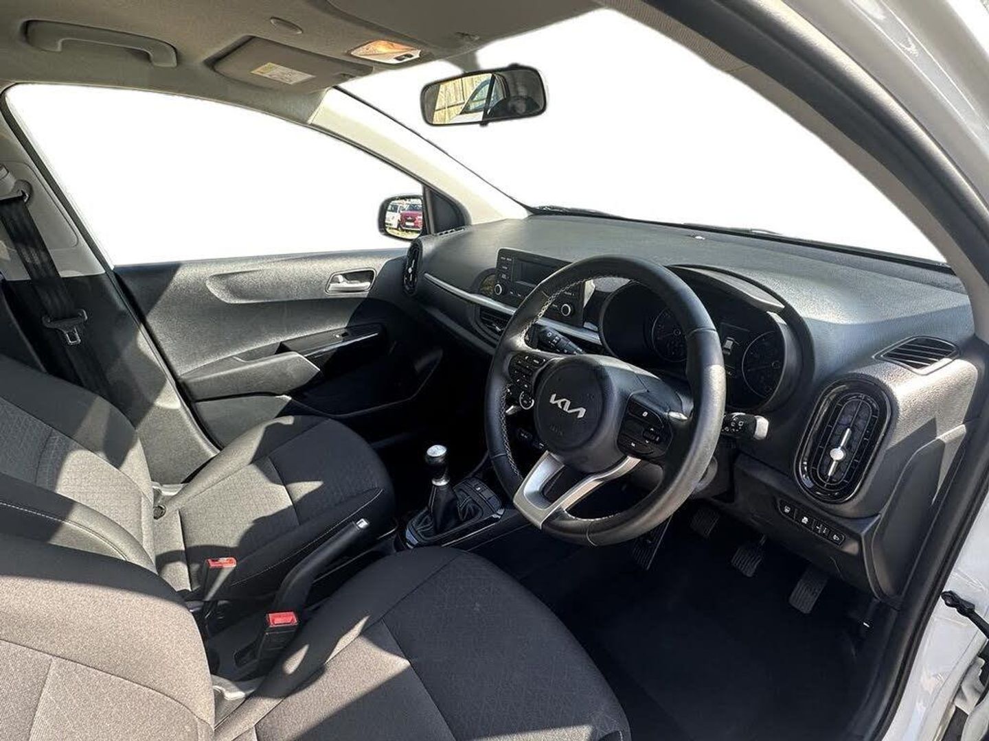 3.8" monochrome audio display with RDS and DAB, 4.2" supervision monochrome cluster display, Emergency call service, Emergency stop signalling system, External temperature gauge, Forward Collision-Avoidance Assist (FCA) - City, Motor driven power steering, Tachometer, Tailgate, Trip computer, 4 speaker audio system, Bluetooth with music streaming, Steering wheel mounted controls, USB ports for connection of a media device, Automatic headlight control system, Black radiator grille with chrome surround, Body colour bumpers, Body colour mirrors and door handles, Day/night rear view mirror, Daytime running lights, Electric adjustable heated door mirrors, Front and rear electric windows with drivers's auto up/down function, Headlamp levelling, Heated rear window, High mount brake light, MFR - Multi Focus Reflector halogen headlights with black bezel, Rain sensor, Rear fog lights, Rear side wing doors, Rear wash/wipe, Speed variable front wipers, Tinted glass, Visible VIN plate, Welcome and follow-me home light functionality, 1 x rear coat hook, 12V power point front, 2 seat bench in 2nd row, 3 x passenger assist grips, 60/40 split/folding 2nd row of seats, All round height adjustable headrests, Cupholders in centre console, Driver and front passenger sunvisor with vanity mirror, Driver seat height adjust, Front cabin lights, Glovebox, High gloss lower centre fascia trim, door armrest and air vents, ISOFIX Child seat top tethers and anchor fixings, Leather trimmed steering wheel and gearshift, Luggage area light, Luggage area parcel shelf, Manual air conditioning, Passenger front seatback pockets, Premium cloth upholstery, Silver paint finished interior door handles, Single front passenger seat, Slide/reclining front seats, Tilt adjustable steering wheel, Advanced Driver Assistance Pack - Picanto, 2 x 3-point rear seatbelts, ABS/EBD, Automatic unlocking of doors in case of impact, ESC + BAS + VSM + HAC, Front passenger airbag cut-off switch, Front seatbelt height adjusters, Front seatbelt pretensioners, Hill hold control, Hill start assist control (HAC), Knee airbags, Rear child proof door locks, Seatbelt warning, Side impact protection, Torque vectoring brake based and straight line stability (SLS), Traction control, Twin curtain airbags, Twin front airbags, Twin front side airbags, Tyre pressure monitoring system, Anti theft alarm, Engine immobiliser, Folding key, Locking wheel nuts, Remote central door locking, 14" alloy wheels, Tyre mobility kit