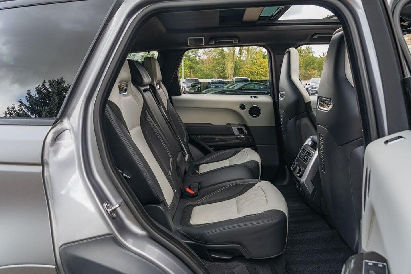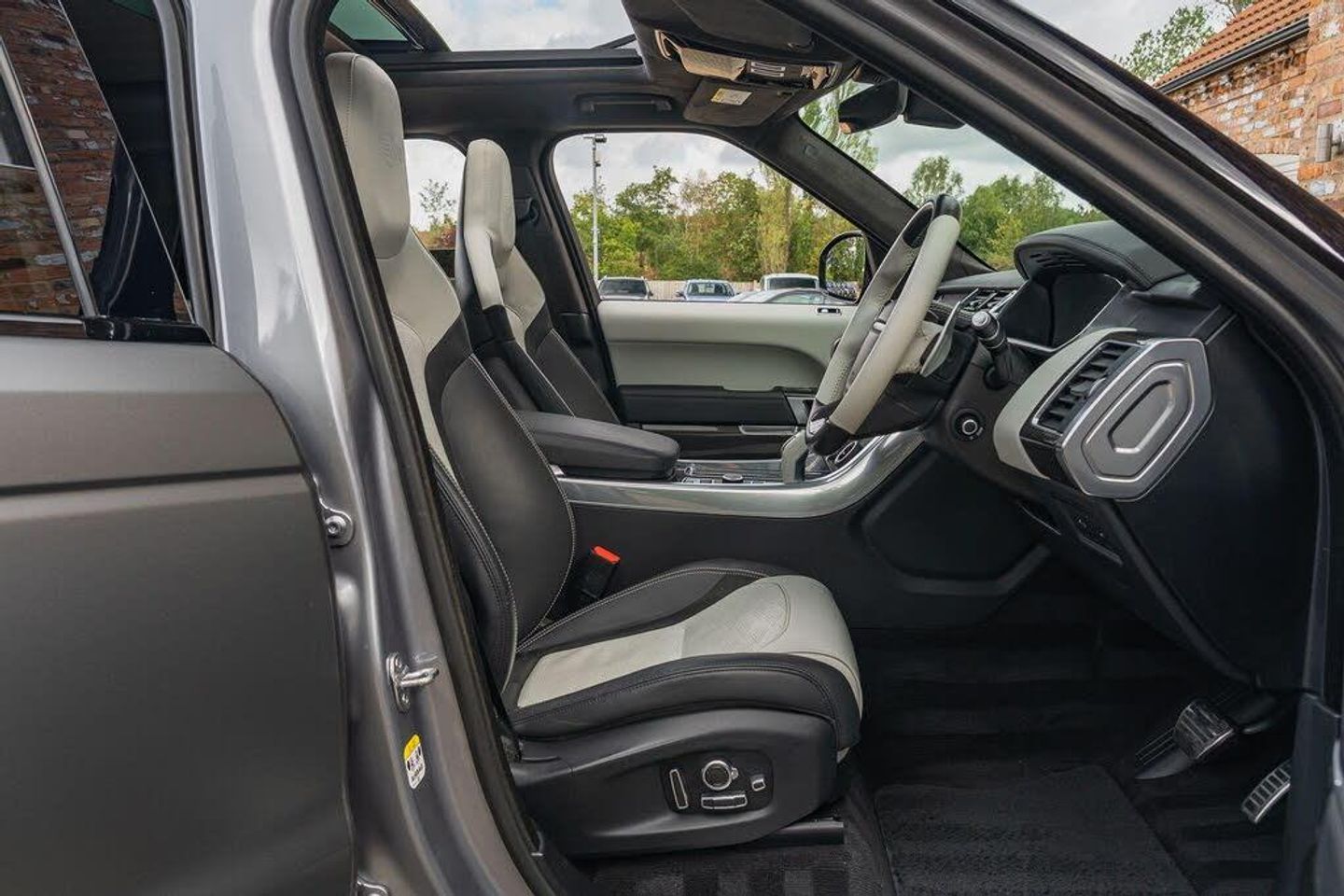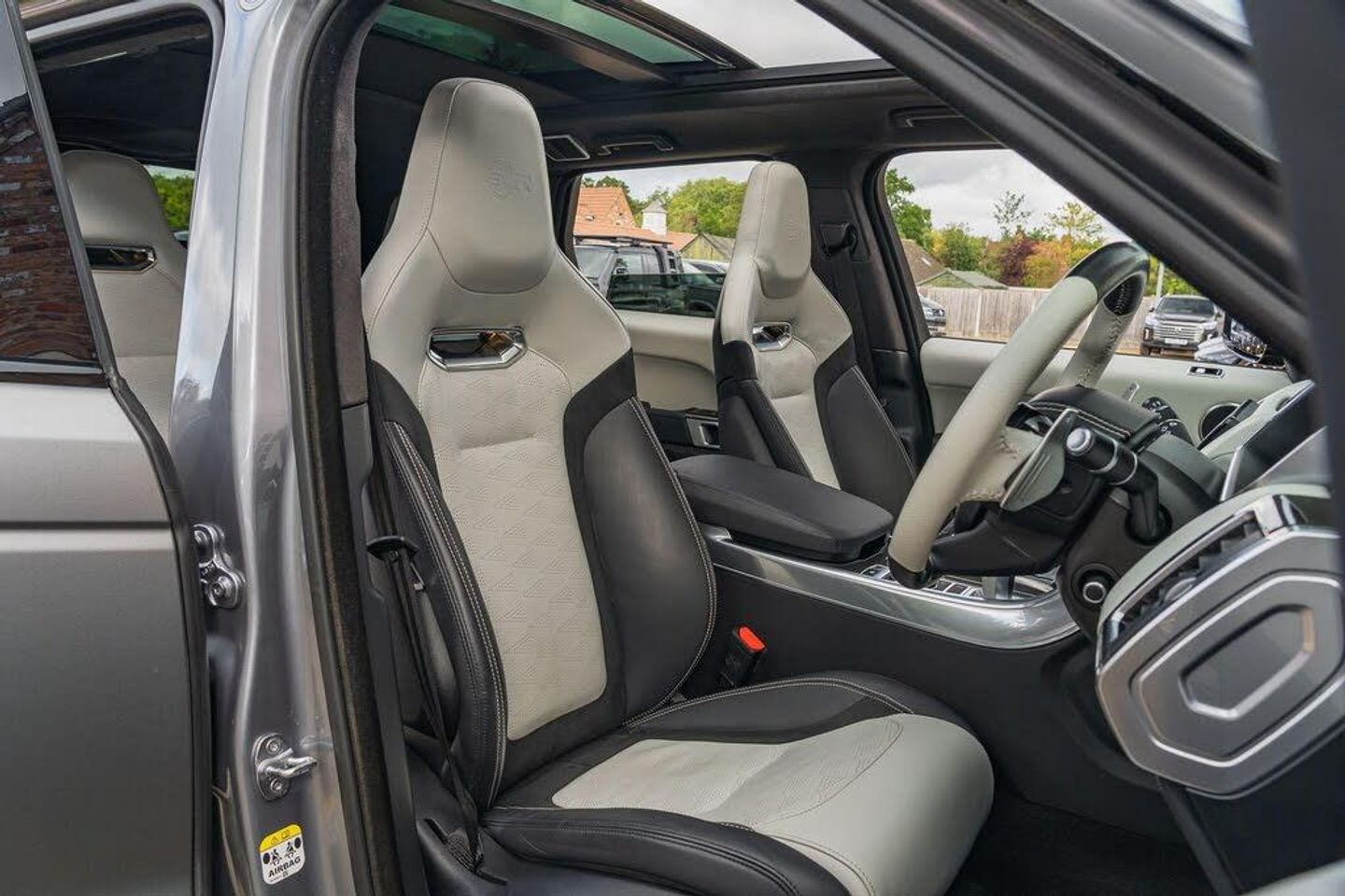 2021/21 Range Rover Sport SVR In Eiger Grey with Satin Grey wrap and Two-Tone Ivory/Black leather interior. This vehicle has been serviced 3 times by Land Rover & Specialists - most recently completed at 49565 miles at 28/04/2025. Specification highlights include Tilt/Slide Panoramic Glass Sunroof, Head Up Display, Heated & Cooled Front Seats, 4-Zone Climate Control, Carbon Fibre Interior, 22inch Alloy Wheels, Adaptive Cruise Control and Heated Steering Wheel. 2 keys, HPI Clear, Part exchange welcome, Finance available. To view up to 40 photos and a HD Video of this vehicle please visit our website. This car will also be supplied with 12 months advisory free MOT along with 6 months RAC Platinum Plus Warranty & 12 months Roadside Assistance.-HUD | Sliding Roof | H/C Seats-Are you looking to sell a premium car? Call 01302 711111 or visit portlandautos.co.uk/sell-your-car