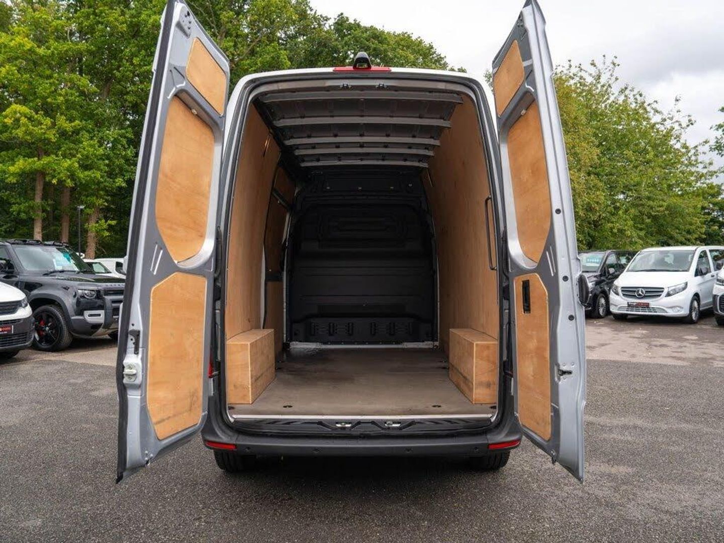 16in Steel Wheels, 270 Degree Double-Wing Rear-End Doors - Opening to Side Wall, ABS - Anti-Lock Braking System, ATTENTION Assist, Active Brake ASSIST, Adaptive Brake Lights, Adaptive ESP - Electronic Stability Programme, Additional USB-C, Airbag - Driver, Alternator 14V - 230A, Anti-Theft Protection Alarm, Armrest for Drivers Seat, Breakdown Management, Bulkhead - Full-Width Partition, Comfort Driver Seat, Comfort Overhead Control Panel, Communication Module - LTE - For Digital Services, Crosswind Assist, Cruise Control, DAB Digital Radio Tuner, Doors - Sliding Side Load Door on Left Side, Double Co-Driver Seat, Double Locks, Electric Windows - Front, Entrance Handle on Right-hand Rear Corner Pillar, Fuel Filter with Water Separator, Full Wheel Covers, Grab Handle - Load Compartment Sliding Door at Partition, Heat-Insulating Glass with Filter Band on Windscreen, Heavy Duty Battery - 12V 92Ah, Hill Start Assist, Integrated Connected Alarm System, Interior Courtesy Light Door Operated, Jack, Jump Start Contact, Keyless Start, Lighting - Headlight Assistant, Lights for Left Hand Traffic, Longitudinal Member Reinforcement, MBUX Multimedia System with 7-inch Touch Screen, Mercedes-Benz Emergency Call System - eCall, Multifunction Steering Wheel, Outside Air Temperature Gauge, Parking Package with Reversing Camera, Power-Assisted Steering, Pre-Installation for Switch Panel, Prewiring for Parameterizable Special Module - PSM, Radiator Grille Frame in Vehicle Colour, Seat Belt Reminder - Driver, Seat Belt Reminder for Co-Driver Seat, Shelf Above Windscreen, Spare Wheel, Spare Wheel Bracket Below Frame End, Steering Wheel - Rake and Reach Adjustment, Storage - Hinged Lid for Stowage Compartment, Storage Compartment Underneath Cockpit, Summer Tyres, Suspension - Stabilisation Level I, TEMPMATIC Semi-Automatic Climate Control System, Terminal Strip for Electrical Connection, Third Brake Light, Tyres 225-65R16 C, Tyres Resistance-Optimised, Tyres without Name of Make, USB-C Socket - 5V, USB-C and Bluetooth Interface - WIFI Hotspot -Apple CarPlay - Android Auto and a DAB Radio, Uprated Front Axle Weight Capacity, VIN Visible from Outside, Wood Flooring
