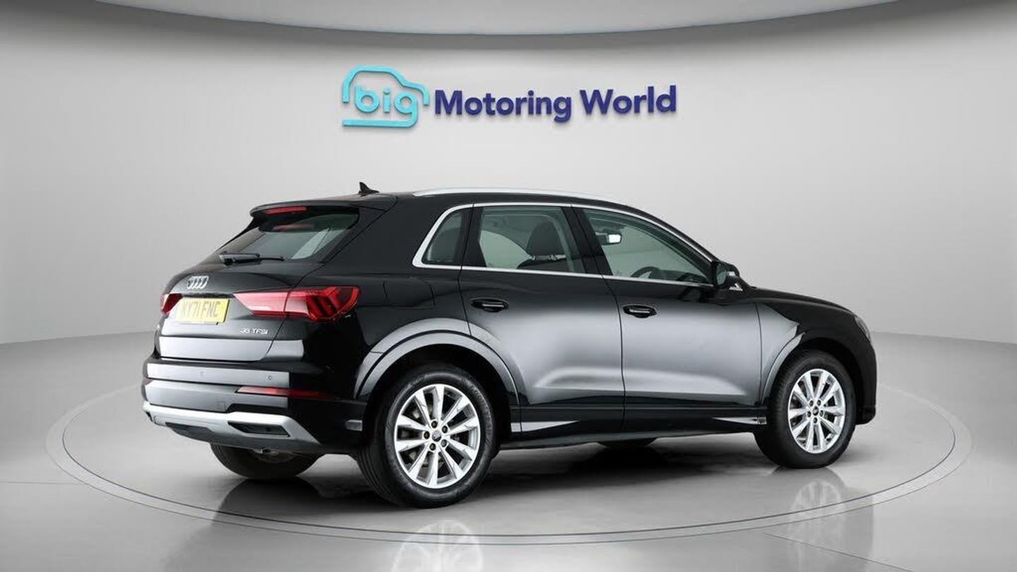 Apple CarPlay,Lane Assist-Our Audi Q3 is finished in Black. Specification includes a range of fantastic features including Apple CarPlay, Lane Assist, Android Auto, Satellite Navigation, Bluetooth, Parking Sensors, Audi Connect, 2 Zone Climate, Cruise Control, Sports Seats Specification information is supplied by CAPHPI and may vary to the actual car. This data does not form any part of a buying contact. Please check specification prior to purchase in-store. The MOT is valid until April 2026, visit bigmotoringworld.co.uk for more photos, a 360 tour, service history and a free HPI report.Were BIG on peace of mind and this Black Audi Q3 has completed our comprehensive 200 point inspection and passed all checks. Its ready for you to drive away with immediate collection in-store. We include a 90-day warranty as standard plus an option to extend for up to 3 years.Reserve this car exclusively for you, safely and securely at bigmotoringworld.co.uk, with a fully refundable £99 deposit. Test drive before you buy, with no commitment, no hassle and a completely haggle free experience. Still searching and want to see thousands more cars? We are BIG on choice with over 8000 cars to choose from.Visit our award winning web site bigmotoringworld.co.uk.Were Big Motoring World and were BIG on what matters to you.