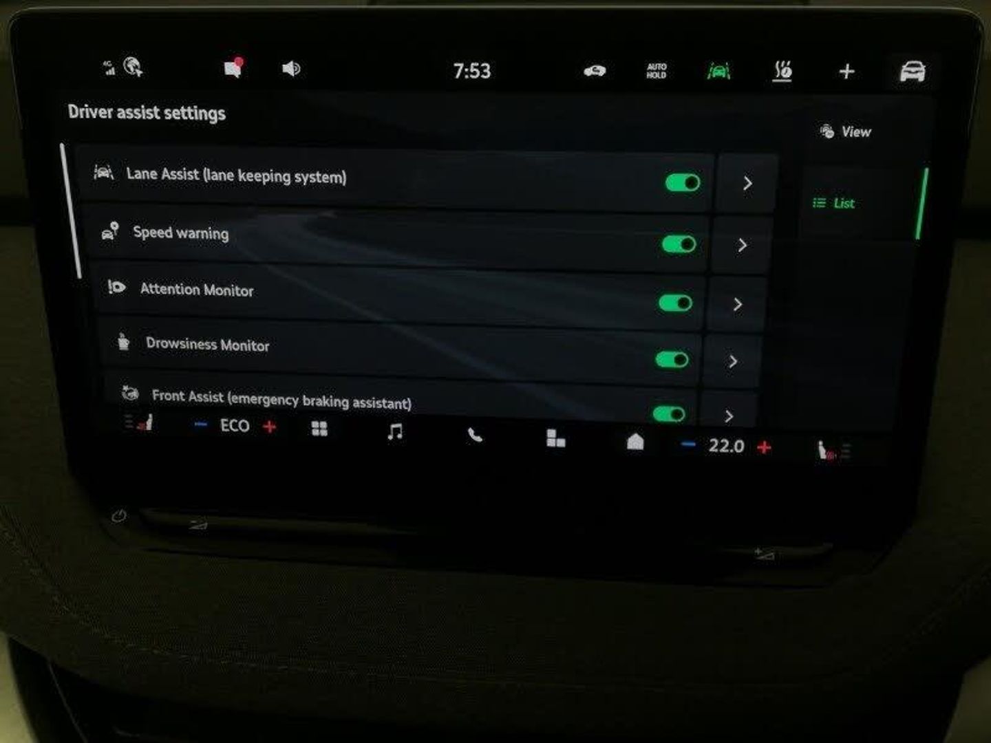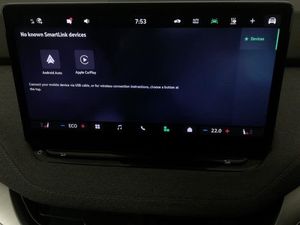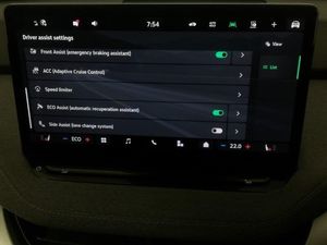 13" touchscreen display, Satellite navigation system, DAB Digital radio, Bluetooth system, USB-C ports (charging + data) front and rear, Wireless smartlink, Apple CarPlay, Android Auto, Front and rear parking sensors, Rear view camera, Blind Spot Detection (BAS), Adaptive Cruise Control with traffic jam assist, Speed limiter, Traffic sign recognition, Travel assist with emergency assist, lane assist plus with narrow lane assist and urban evasive steering support, Driver alert system, Front assist with assisted automatic braking, Drive mode selector, Tri zone climate control, Heated front seats, Auto dimming rear view mirror, Auto headlights, Full LED Matrix beam headlights with variable light distribution, Keyless entry and start/stop system advanced with walk away locking, Loft design pack - Enyaq