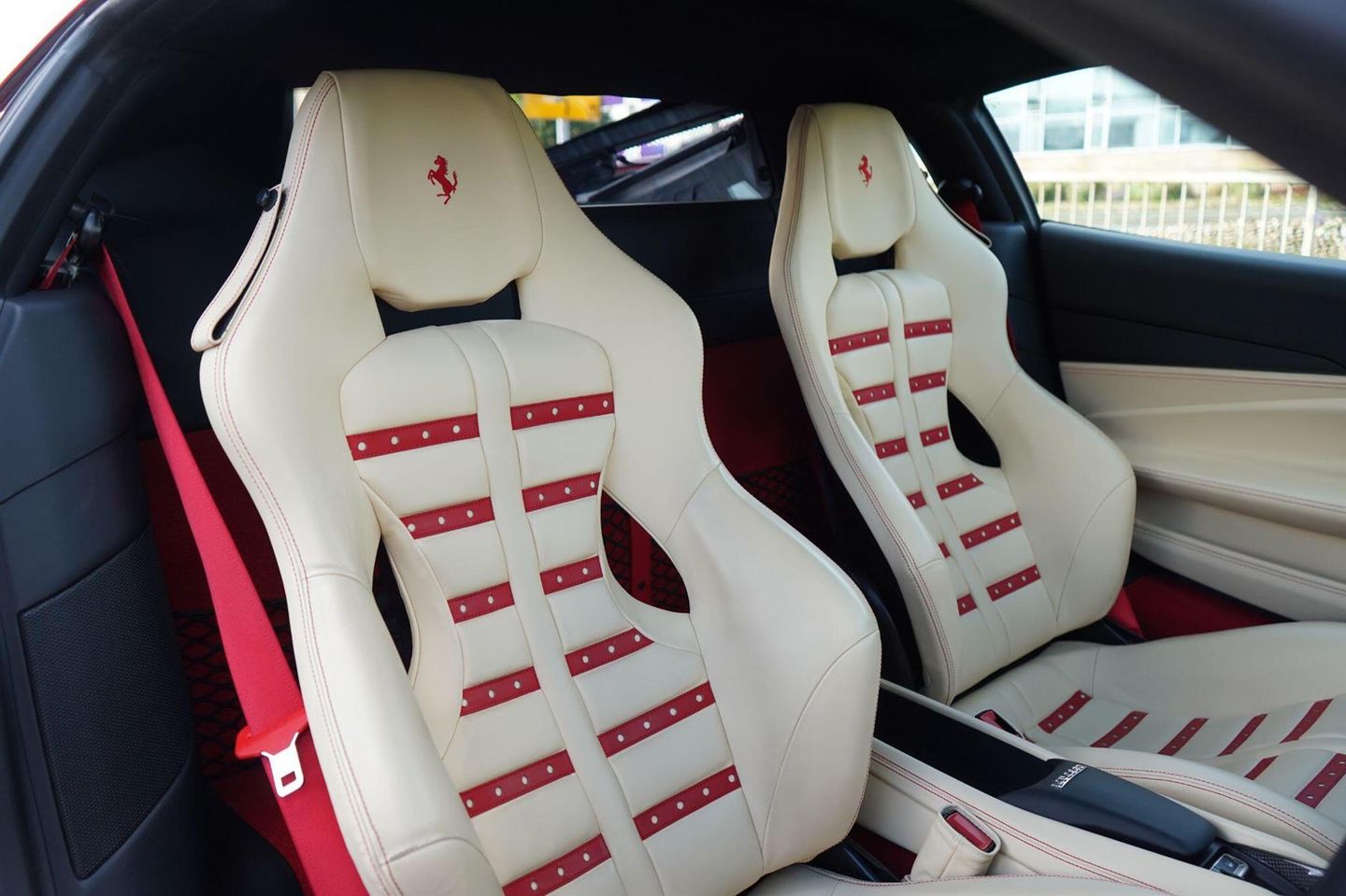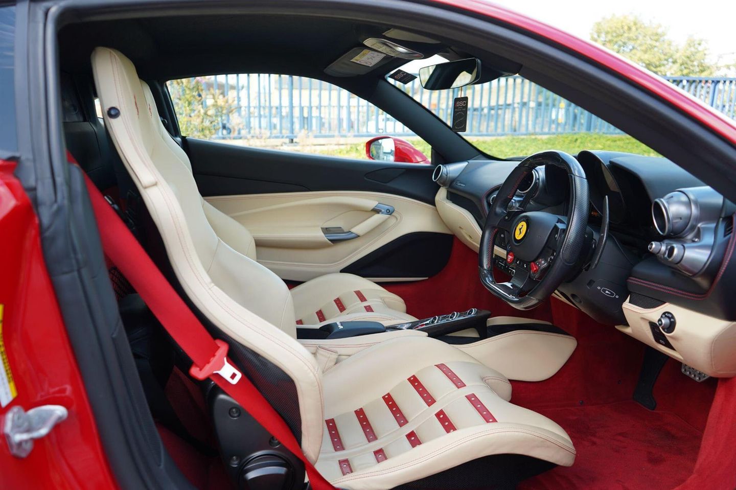 Stunning F8 Tributo Finished In Rosso Corsa With Crema Leather. Fantastic Spec Inc: Full Body Paint Protection Film, Yellow Brake Calipers, Carbon Fibre Driver Zone + LEDs, Carbon Fibre Central Bridge, Matte Black Front Lid Collar, Coloured Safety Belts, Rosso Cavallino Stitched on Headrest, Scuderia Ferrari Shields, Parking Camera, Front and Rear Parking Sensors, 20'' Painted Forged Wheels, Yellow Rev Counter, Daytona Racing Seats (Large Size), Rosso Coloured Special Stitching, Rosso Leather Perforated Inserts, Stolen Vehicle Tracker.