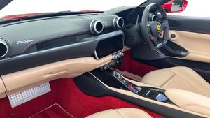 Scuderia Wing Badges,Carbon Fibre Driver Zone With LEDS,Carbon Fibre Rear Air Intakes,Carbon Fibre Sill Covers,Carbon Fibre Central Bridge,Carbon Fibre Cup Holder,Magneride Suspension,20 Forged Diamond Finished Alloy Wheels,Front & Rear Parking Sensors,Front & Rear Parking Cameras,Cavallino Logo Stitched Into Headrests,Passenger Display,Aluminium Footrests,Full Electric Heated Seats,Contrast Stitching In Rosso,Apple CarPlay,Brake Calipers In Yellow,Auto Dimming Mirrors,Two Years Ferrari Warranty