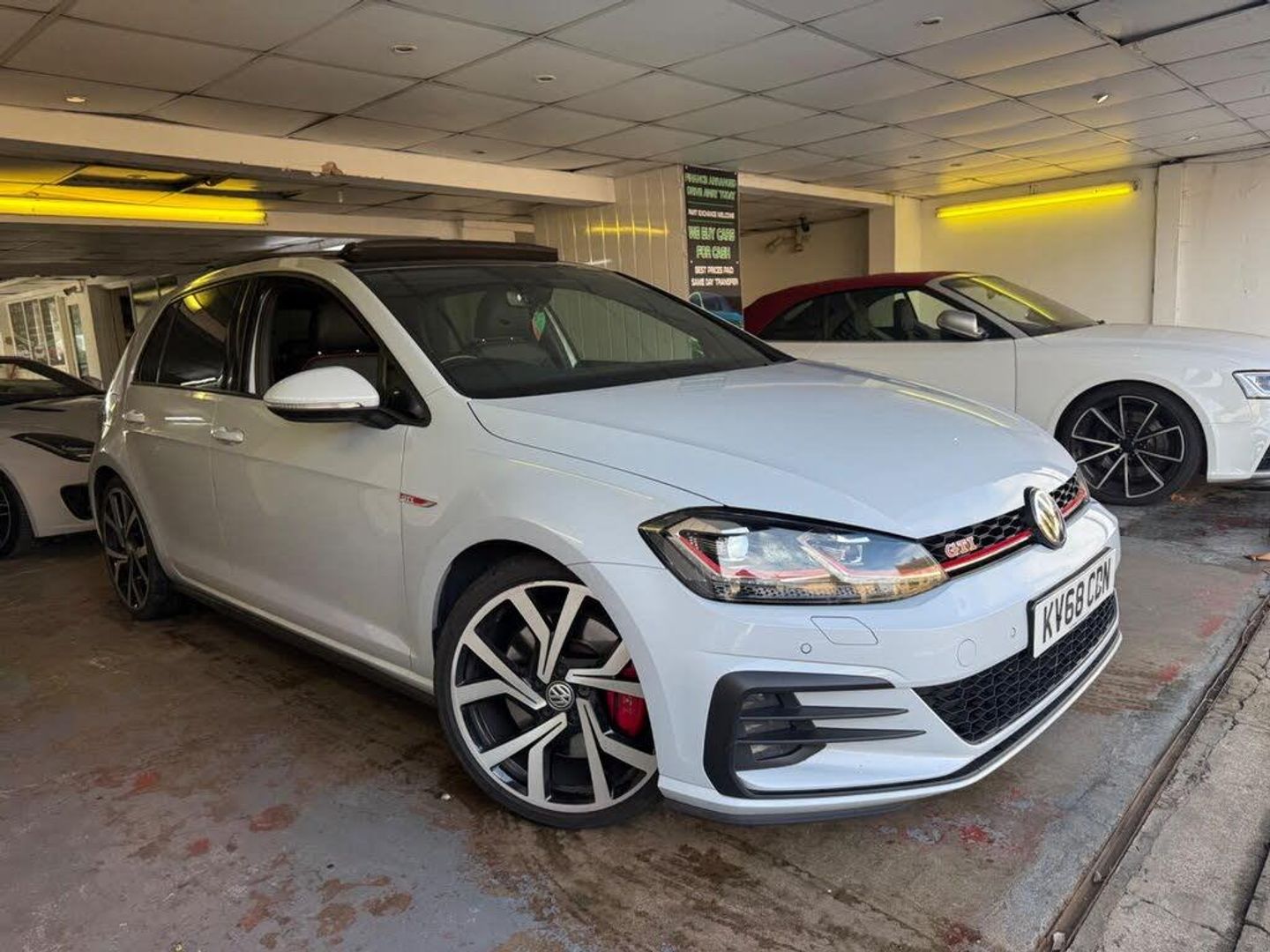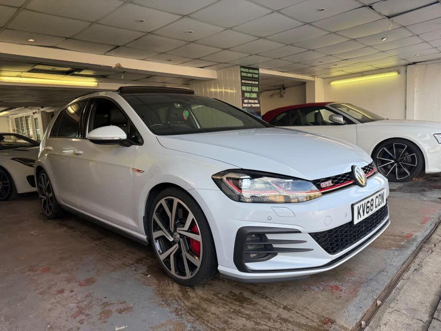 12V Socket - Luggage Compartment, 18in Alloy Wheels - Parker, ABS - Anti-Lock Braking System with HBA - Hydraulic Brake Assist, Active Info Display, Adaptive Cruise Control, Airbags, Alarm with Interior Protection, Ambient Lighting, Ambient Lighting Pack, Anti-Tramp Function, Automatic Coming-Leaving Home Lighting Function, Automatic Post-Collision Braking System, Bag Hooks in the Luggage Compartment x2, Black Rooflining, Body Coloured Bumpers, Body Coloured Door Handles, Body-Coloured Door Mirrors with Integrated Indicators, Brake Calipers - Red with GTI Logo, Brake Pad Wear Indicator, Car-Net App Connect, Car-Net Security and Service including eCall, Carpet Mats - Front and Rear, Child Security Locks in the Rear Doors, Chrome Plated Air Vent Surrounds, Chrome Plated Electric Mirror Adjustment Switch Surround, Chrome Plated Electric Window Button Surrounds, Chrome Trimmed Front Air Intake Surround, Chrome-Plated Light Switch Surround, Climate Control, Composition Media System, Convenience Pack, Cover for Storage Compartment in Centre Console, Cup Holders - Front x2, Discover Navigation Touch-Screen Navigation-Radio System with Car-Net Guide and Inform, Driver Alert System, Driver Personalisation Profile, Drivers and Passengers Safety Optimised Head Restraints, Driving Mode Selection, Dusk Sensor - Automatic Driving Lights, Dust and Pollen Filter, ESC - Electronic Stability Control including EDL - Electronic Differential Lock and ASR - Traction Control with Deactivation via Infotainment System, Electric Windows - Front and Rear, Electronic Engine Immobiliser, Electronic Parking Brake with Auto Hold Function, Extended Sill Strips - Flared, Front Assist, Front Centre Armrest with Storage Compartment and Two Rear Air Vents, Front Fog Lights - LED, Front Footwell Illumination, Front Seat Back Storage Pockets, Front Sport Seats with Height and Lumbar Adjustment, GTI Sports Suspension - Lowered, GTI Styling Pack, Galvanised Body, Glovebox - Cooled, Grab Handles - Front x2 Rear x2 with Coat Hooks, Headlight Washers, Heated Front Seats, Heated Rear Windscreen, Heated Windscreen Washer Jets, Height-Adjustable Front Three-Point Seat Belts with Tensioners, High Level 3rd Brake Light Incorporating LED Technology, Honeycomb Black Decorative Inserts in Dash and Door Panels, Honeycomb Radiator Grille with Red Stripe, ISOFIX Child Seat Preparation for 2 Rear Seats, Illuminated Door Sill Protectors, Instrument Lighting - White Adjustable Panel Illumination, Interior Light Delay, Keyless Entry, LED Headlights with Dynamic Curve Light, LED Headlights with Dynamic Light Assist, LED Tinted Rear Light Clusters, Lane Assist inc. Traffic Sign Recognition in Conjunction with Dynamic Light Assist, Lights on Warning Buzzer, Load Lashing Points x4 in Luggage Compartment, Load-Through Provision, Low Washer Fluid Warning Light, Luggage Compartment Cover - Stowable, Luggage Compartment Light, Luggage Compartment Storage Area on Left and Right, Lumbar Support for Drivers and Front Passenger Seat, Mechanical Limited Slip Differential, Mirror Pack, Multifunction Computer, Parking Sensors - Front and Rear, Piano Black Decorative Inserts in Centre Console, Pre-Crash Preventive Occupant Protection, Predictive Pedestrian Protection, Premium USB Cable, Progressive Steering, Rain Sensor and Automatic Dimming Rear-View Mirror, Reading Lights Front x2 and Rear x2 - LED, Rear Centre Armrest - Folding with Cup Holders x2, Rear Diffuser in Black with Chrome Exhaust Tailpipes Left and Right, Rear Lights Incorporating LED Technology, Rear Number Plate Lights Incorporating LED Technology, Rear Screen Wash-Wipe with Intermittent Wipe, Rear Tinted Glass - B Pillar Backwards - Approx 65 Percent Tinted, Rear View Camera, Rear Window Aerial, Reflectors in Doors, Remote Central Locking with 2 Remote Folding Keys, Remote Electrically Foldable Door Mirrors - Door Mirror Puddle Lights and Reverse Activated Kerb-View Adjustment on Passengers Door Mirrors, Speedo and Rev Counter - Ele