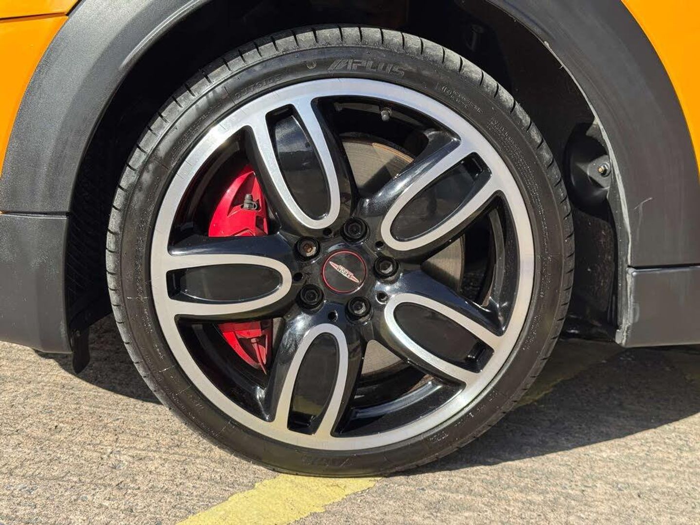 18in Alloy Wheels - John Cooper Works Cup Spoke - Two-Tone, Air Conditioning - Automatic Dual Zone, Auto-Dimming Door Mirrors and Interior Rear View Mirror, Auto-Dimming Interior Rear View Mirror, CHILI Pack, Chrome Line Interior, Darkened Rear Glass, Electrically Folding Exterior Mirrors, Enhanced Bluetooth with USB Audio, Front Centre Armrest, Harman Kardon Hi-Fi System, Interior Light Pack, MINI Excitement Pack, MINI Head-Up Display, MINI Tech Pack, Media Pack XL, PDC - Park Distance Control - Rear, Rain Sensor and Automatic Headlight Activation, Rear View Camera, Roof and Mirror Caps - Black, Run-Flat Tyres, Seat Heating for Driver and Front Passenger, Sport Seats for Driver and Front Passenger, Storage Compartment Pack, Volcanic Orange, MINI Yours Lounge Leather - Carbon Black - Carbon Black