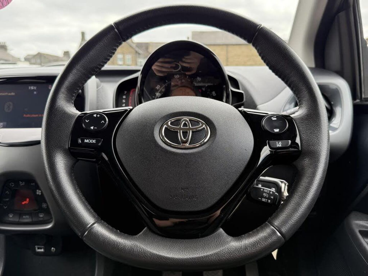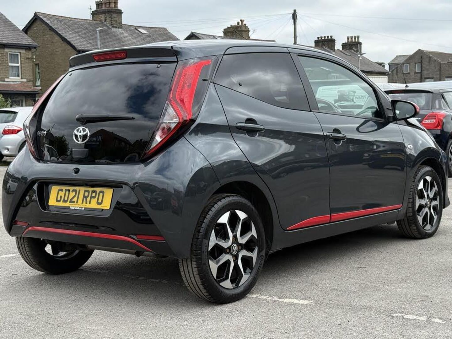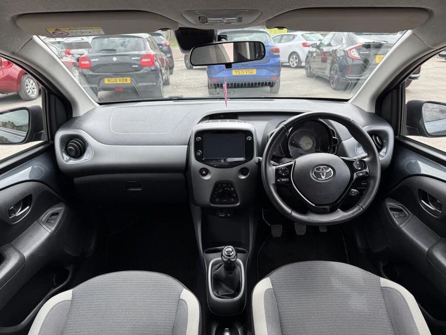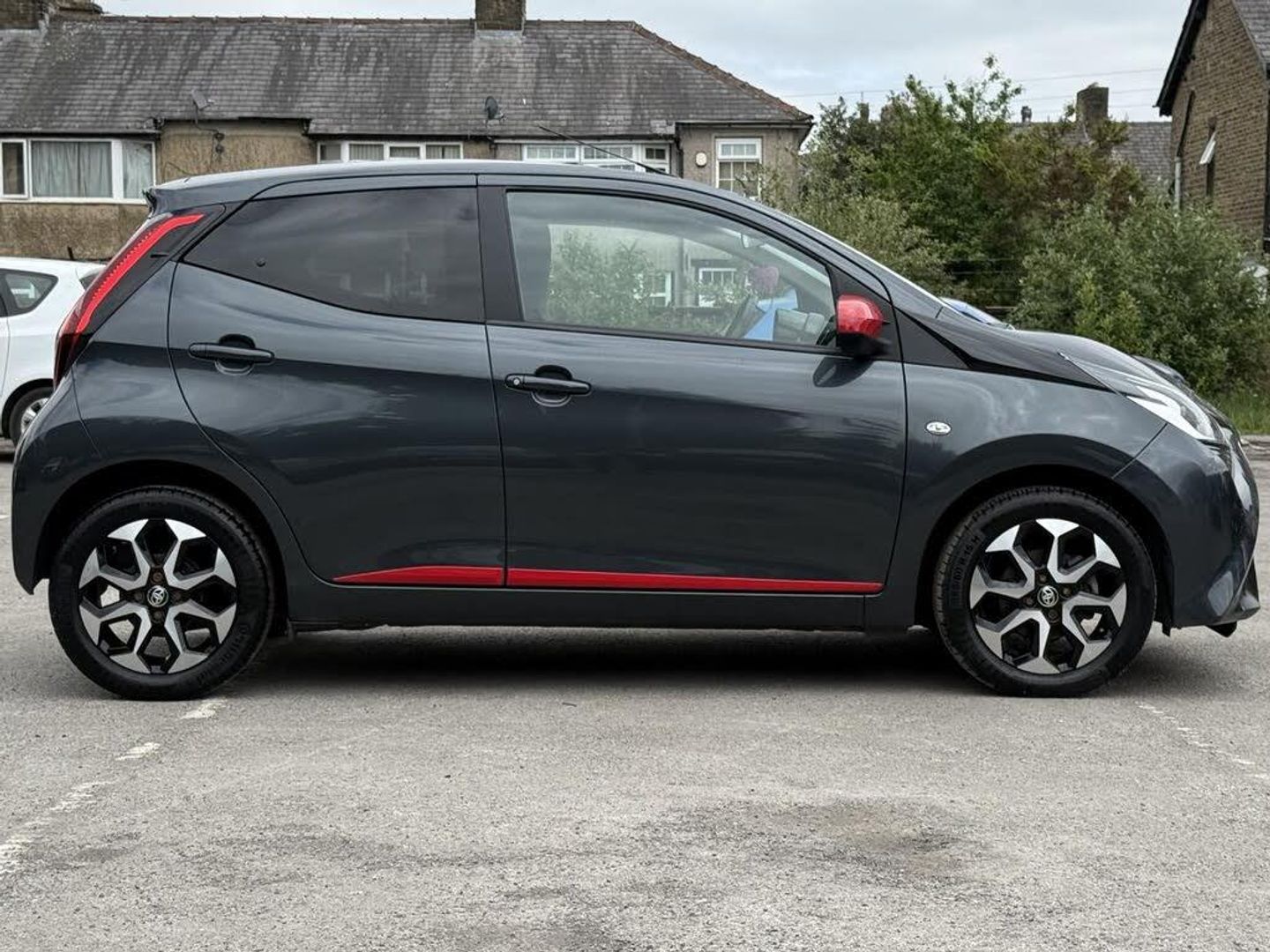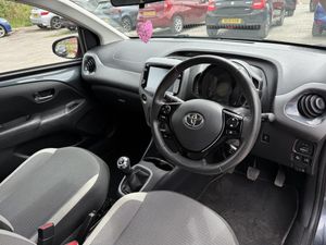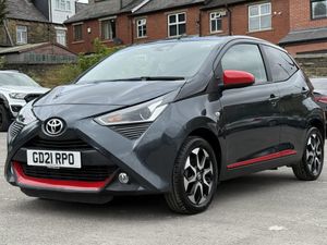 Grey interior.Introducing the Toyota AYGO 1.0 VVT-i x-trend, a dynamic hatchback that perfectly balances style, efficiency, and practicality. With a sleek grey exterior and a compact design, this vehicle is ideal for navigating urban environments while providing a comfortable ride for up to four passengers. The 1.0-litre petrol engine delivers a spirited performance with 70 bhp and 69 lbs/ft of torque, allowing for a swift acceleration of just 13.8 seconds to reach 62 mph. With a top speed of 99 mph, the AYGO is not only fun to drive but also efficient, boasting an impressive fuel consumption of 57.65 mpg, making it a cost-effective choice for daily commuting. One of the standout features of the AYGO is the optional body coloured centre console, which enhances the vehicle's aesthetic appeal and creates a cohesive look throughout the interior. This stylish addition not only elevates the overall design but also adds a touch of sophistication, ensuring that your driving experience is as visually pleasing as it is enjoyable. The bold black accents available in the AYGO provide a striking contrast to the vehicle's exterior, making a statement on the road. This option allows you to personalise your car, reflecting your unique style while maintaining a modern and edgy appearance that is sure to turn heads. Inside, the graphite fabric upholstery in dark and light grey offers both comfort and durability. This high-quality material is designed to withstand the rigours of daily use while providing a contemporary feel that enhances the overall ambience of the cabin. The thoughtful design ensures that every journey is a comfortable one, whether you're commuting to work or embarking on a weekend adventure. For those who prioritise convenience, the optional parking pack is an invaluable addition. This feature simplifies the parking process, making it easier to navigate tight spaces and ensuring that you can park with confidence. With advanced assistance technologies, you can enjoy a stress-free driving experience, allowing you to focus on the road ahead. With only 12,400 miles on the clock and ULEZ compliance, this 2021 model is not just a vehicle; it's a smart investment for the environmentally conscious driver. The manual transmission and front-wheel drive system provide an engaging driving experience, making every journey enjoyable. You will love this vehicle for its perfect blend of style, efficiency, and practicality, making it an ideal companion for both city driving and weekend getaways.