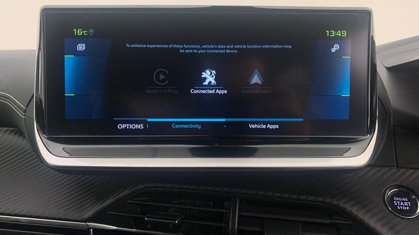 12V Power Socket, 6-Speaker Radio - MP3 Compatible, Bluetooth Telephone Facility, DAB Digital Radio, Front USB Socket x2 including x1 USB-C, Mirror Screen - Apple CarPlay - Android Auto and MirrorLink, Peugeot Connect SOS and Assistance, PEUGEOT i-Cockpit 10in Capacitive Colour Touchscreen with Connected 3D Navigation, Rear USB Socket x2, Smartphone Charging Plate, Smartphone Docking Station, Blind Spot Monitoring System, Drive Assist Pack Plus - Adaptive Cruise Control with Stop-Go-Lane Positioning Assist, Driver Attention Alert, e-Toggle Driving Selector, Exterior Temperature Indicator with Ice Warning, Front and Rear Parking Sensors, Multifunction Trip Computer, PEUGEOT 3D i-Cockpit - Configurable 3D Head-Up Instrument Panel, Programmable Cruise Control and Speed Limiter, Tyre Pressure Sensors, Visio Park 1 - 180 Degree Colour Reversing Camera, Voice Recognition - Radio-Navigation-Telephony Features, 18in Alloy Wheels - Evissa - Diamond Cut - Black Mist, Dark Tinted Rear Side and Tailgate Windows, Door Mirror Shells - Diamond Black, Electric - Heated and Power Folding Door Mirrors with Floor Lighting, Electric Windows - Front and Rear with One Touch, Exterior Door Handles - Body-Colour, Front Wing Trim - Black with Gloss Black Detail and E Monogram, Gloss Black B Pillar, Gloss Black Rear Cluster Connecting Strip, Gloss Black Window Surround, GT Model Designation Badging on Tailgate, LED Side Indicator Lights Integrated into Door Mirrors, Longitudinal Roof Bars - Gloss Black, Lower Door Protection with Silver Inserts, Lower Front Bumper - SIlver, Model Designation Badges - Front and Rear, Nera Black - Roof, Radiator Grille - Body-Colour Chequered with Gloss Black Edge Trim, Radiator Grille - Colour Coded Higher Part, Rear Number Plate Lights x2, Rear Spoiler - Diamond Black, Stainless Steel Door Sill Scuff Plates, Tailgate with Heated Rear Windscreen and Wiper Blade, Tyre Inflation Kit, Visibility Pack, Wheel Arch Extensions, Full LED Headlights with Smartbeam Assist, Headlights Left On Audible Warning, LED Daytime Running Lights - 3-Claw Headlight with Distinctive Tooth Design, LED Front Fog Lights with Remote Cornering Function, Rear Full LED 3D Peugeot Signature Claw Effect Lights with Daylight Function, 1-3 - 2-3 Folding Rear Seat, 8-Colour Customisable Ambient Lighting, Aluminium Pedals, Automatic Air Conditioning with Pollen Filter and Carbon Active Filter, Automatic Front Windscreen Wipers, Dashboard - Front and Rear Door Panel Finish - Carbon Effect, Driver and Front Passenger Seat Mechanical Height Adjustment, Driver and Front Passenger Sport Seats, Frameless Electrochrome Rear View Mirror, Front and Rear Carpet Mats in Black with Specific Detailing, Front Central Armrest with Storage Compartment, Front Optimised Safety Headrests and Rear Retractable Headrests - x3 - Height-Adjustable, High Centre Console, LED Front Interior Light with Reading Spotlights -x2- and Rear Interior Light with Timer, Lime Green Contrast Stitching to Front Centre Console - Door Panels - Dashboard Facia, Map Pockets on Front Seat Backs, Mistral Full-Grain Perforated Leather Steering Wheel with Lime Green Stitch Detail and Satin Chrome GT Emblem, Modular Boot Floor - 2 Position, Peugeot i-Cockpit - Compact Multi-Function Steering Wheel, Piano Keys - Gloss Black and Chrome Plated Toggle Switches to Access Main Functions of Vehicle and Touchscreen Functions, Rear Reversing Lights, Roof Lining - Mistral Black, Seating - Driver and Front Passenger Seat Manual Adjustment - Longitudinal and Back Rest Angle, 7KW Monophase On Board Charger, Electric Power Steering with Reach and Rake Adjustable Steering Column, Mode 3 Type 2 Cable for Wallbox Charging, Pre-Heating Functionality, ABS with Electronic Brake Force Distributor EBD and Emergency Brake Assist EBA, Active Safety Brake - Night Function - Cyclists - Pedestrians, Alarm with Anti-Lift Sensor, Automatic Door Locking When Moving Off, Automatic Hazard Light Activation Upon Heavy Brake Application, AVAS - Acoustic Vehicle Alerting System, Child Locking Functionality on Rear Doors, Deadlocking, Driver and Front Passenger Side Airbags, Driver and Passenger Airbag with Passenger Airbag Deactivation Switch, Electric Parking Brake, Electronic Code Immobiliser, ESP - Electronic Stability Program - with Hill Assist, Front and Rear 3 Point Retractable Seatbelts - With Force Limiter, Front and Rear Curtain Airbags, ISOFIX Child Seat Fittings - x2 in the Outer Rear Seat, ISOFIX Location Points - Front Passenger, Lane Keeping Assist, PEUGEOT Open and Go System, Rear Windscreen Wiper Triggered Automatically in Reverse Gear, Seatbelt Unfastened on the Move Audible and Visual Alert for Front and Rear Seats, Speed Limit Recognition and Recommendation