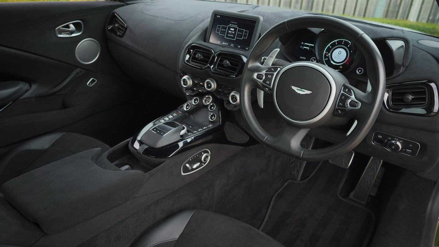 20" Lightweight Textured Black Alloy Wheels,Aston Martin Audio System,Quad Exhausts In Matte Black,Headrest Embroidery With Aston Martin Wings,Gloss Black Interior Trim Inlay,Gloss Black & Silver Interior Pack,Bright Chrome Aston Martin Wings & Script,Blind Spot Assistance,Dark Anodised Brake Callipers,Comfort Pack,Glass Switches,Keyless Entry,Body Coloured Rear Diffuser,16 Way Seat Adjustment,Black Seatbelts,Heated Front Seats,Electric Steering Column,Touchpad Control,Aston Martin Tracking System,Black Side Window Surround Finisher