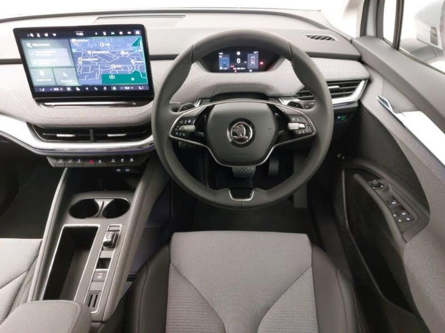 Adaptive Cruise Control with traffic jam assist, Electrically operated tailgate with kick activation (virtual pedal), Gesture control, Rear view camera, Skoda Connect iV remote services with charging, air conditioning and smart schedules, Travel assist with emergency assist, lane assist plus with narrow lane assist and urban evasive steering support, Wi-Fi hotspot, Wireless charging with cooling function, Rain and light sensors, Electrically adjustable driver seat with memory function, Manual lumbar support for front passenger seat, Tri zone climate control, Keyless entry and start/stop system advanced with walk away locking