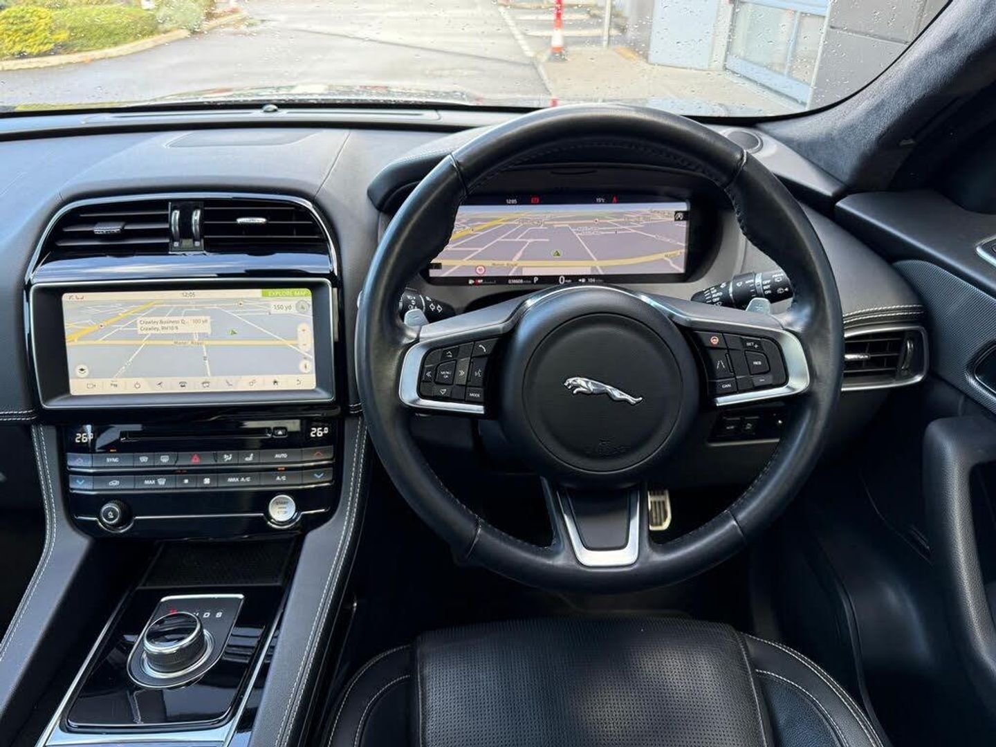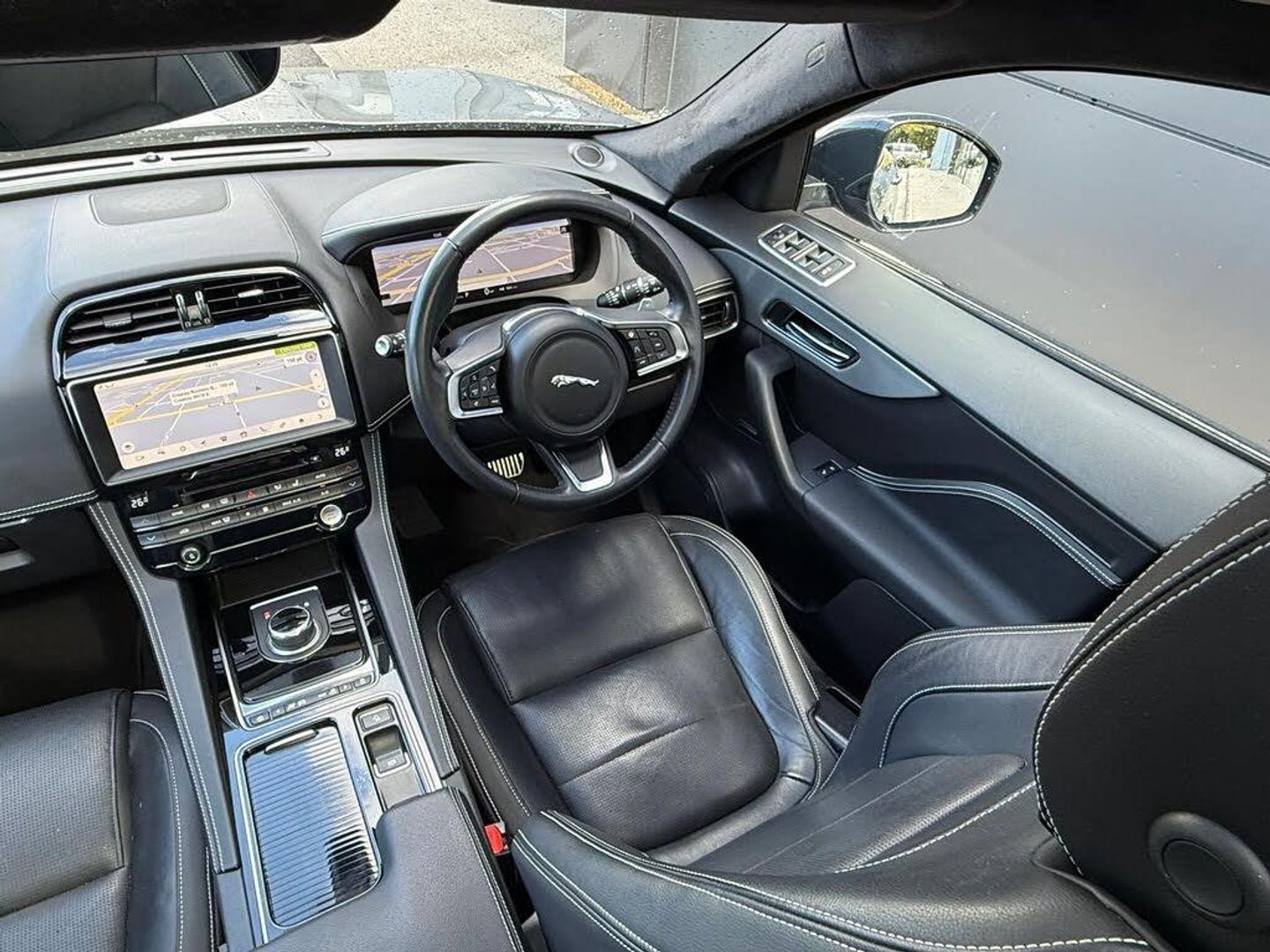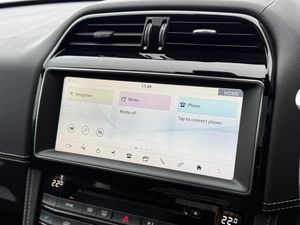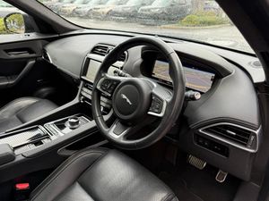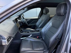 10-Way Electric Front Seats, 10in Touch Pro, 2-Zone Climate Control, 20d AWD Badge, 20in Alloy Wheels - 5 Split-Spoke Style 5031 with Gloss Black Finish, 3-Flash Lane Change Indicators, 325mm Front Brakes, 40-20-40 Split Fold Rear Seat, ABS - Anti-locking Braking System, AM-FM Radio, ASPC - All Surface Progress Control, Airbags - Front Side, Airbags - Full Length Side Window Curtain, Ambient Interior Lighting, Android Auto, Apple CarPlay, Approach Illumination, Auto-Dimming Interior Rear View Mirror, Bluetooth Connectivity, Bluetooth Streaming, Body Coloured Door Mirror Caps, Body-Coloured Door Claddings with Gloss Black Finishers, Brake Pad Wear Indicator, Bright Metal Pedals, CD-DVD Player, Centre Console - Side Stowage, Centre Console - Storage Surround Finishers - Satin Chrome, Centre Console with Armrest, Connect Pro, Cruise Control with Speed Limiter, Digital Audio Broadcast - DAB - Radio, Door Trim - Luxtec, Driver Condition Monitor, Dynamic Stability Control - DSC, Dynamic Volume Control, EBA - Emergency Brake Assist, ECO Driving Style Assistant, EPAS - Electric Power Assisted Steering, EPB - Electronic Parking Brake, Ebony Suedecloth Headlining, Electric Windows - Front and Rear with One-Touch Open-Close and Anti-Trap, Electrically Adjustable Heated Door Mirrors, Emergency Braking, F-PACE Badge, Fixed Panoramic Roof, Front Airbags with Passenger Seat Occupant Detector, Front Fog Lights, Front Headrests, Front Windscreen with Non-acoustic Layer, Front and Rear Parking Aid, Gloss Black Grille with Gloss Black Surround, Gloss Black Roof Rails, Gloss Black Side Vents with Chequered Flag Badge, Gloss Black Side Window Surround, Glovebox Finisher with Jaguar Script, Green Tinted Glass, Headlight Power Wash, Heated Front Seats, Heated Front Windscreen, Heated Rear Window, Heated Steering Wheel, Hill Launch Assist, Hook in Loadspace, ISOFIX Rear, InControl Apps, Interactive Driver Display, Interior Front Door Handles with Separate Locking Switches, Jaguar Script and Leaper, Jaguar Tyre Repair System, JaguarDrive Control, LED Tail Lights, Lane Keep Assist, Lockable Glovebox, Luggage Tie Downs in Loadspace, Luxtec Wrapped Instrument Panel Topper with Wrapped Binnacle, Manually Adjustable Steering Column, Meridian Sound System - 380W, Meshed Aluminium Trim Finisher, Metal Loadspace Scuff Plate, Metal Treadplates with Chequered Flag Branding, Navigation Pro, No Loadspace Storage Rails, Open Differential with Torque Vectoring by Braking, Outside Temperature Gauge, Overhead Lighting Console, Passive Front Head Restraints, Power Operated Child Locks, Power Sockets, Powered Tailgate - Boot Lid, Premium Carpet Mats, Pro Services and Wi-Fi Hotspot, Protect for Warranty Period, R-Sport Rear Bumper, Rain Sensing Windscreen Wipers, Rear Air Vents, Rear Armrest with Twin Cupholders, Rear Camera, Rear Centre Headrest, Rear Fog Lights, Rear Metal Treadplates, Remote Premium, Rotary Shifter, S Front Bumper, Satin Chrome Gearshift Paddles, Satin Chrome Touchscreen Surround, Seat Belt Reminder, Seats - Sports, Single Sided Twin Tailpipes with 75mm Finishers, Soft Grain Leather Sport Steering Wheel, Speed Proportional Steering, Start Up Sequence with Movement - Dials and Lighting, Steering Wheel - Multi-Function, Touch Pro Navigation Pack with Meridian Digital Sound System - 380w, Traffic Sign Recognition with Adaptive Speed Limiter, Trailer Stability Assist, Trip Computer, Twin Front Cupholders with Cover, Tyre Pressure Monitoring System, Unpainted Brake Calipers, Valet Mode, Variable Intermittent Wipers, Voice Control, Xenon Headlights with LED Signature, FIXED PANORAMIC ROOF, REAR VIEW CAMERA