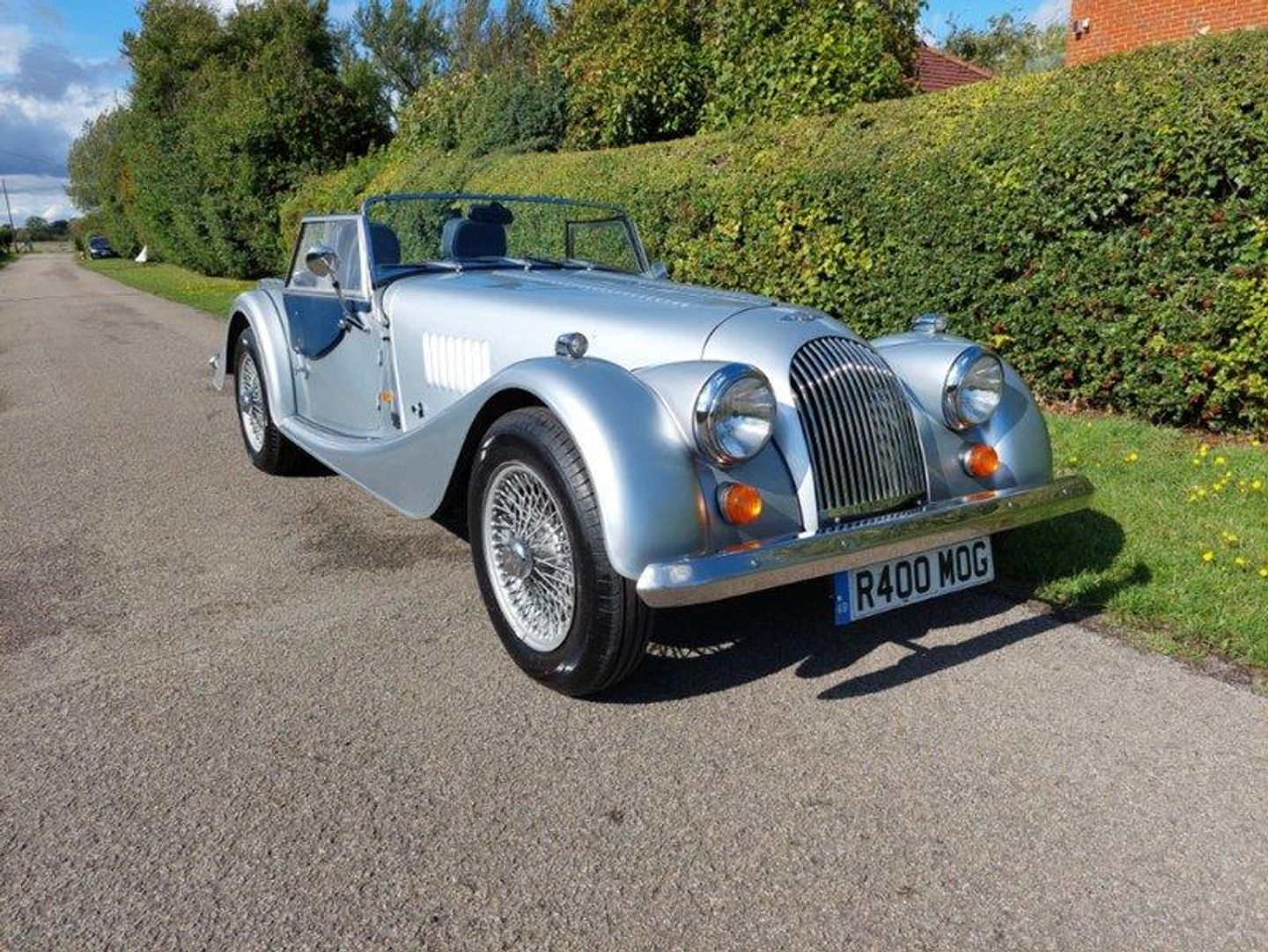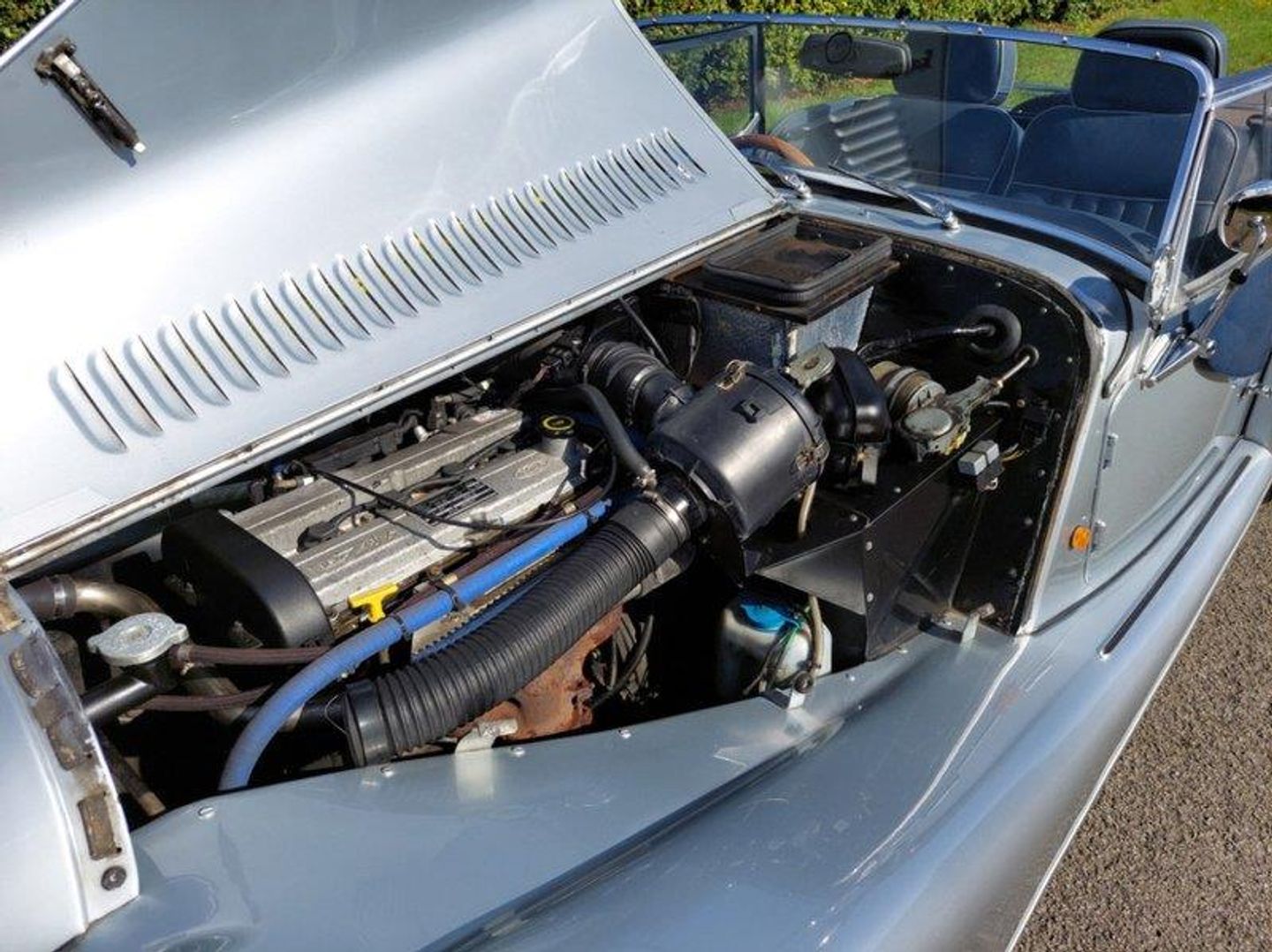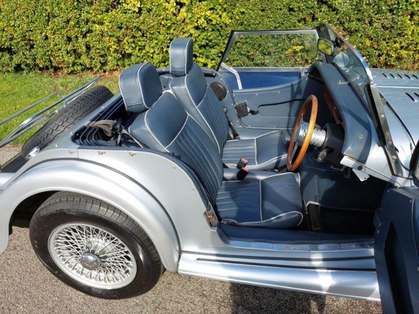 Finished in Mercedes Brilliant Silver with a Dark Blue piped Grey Leather interior this Morgan features: