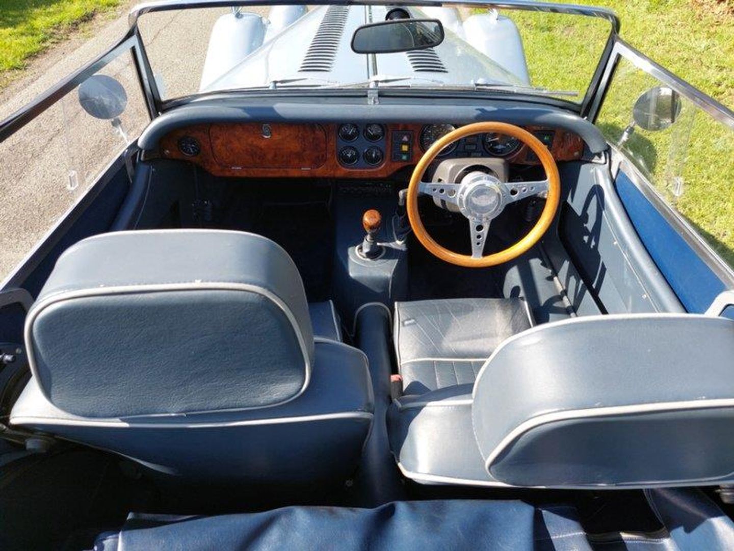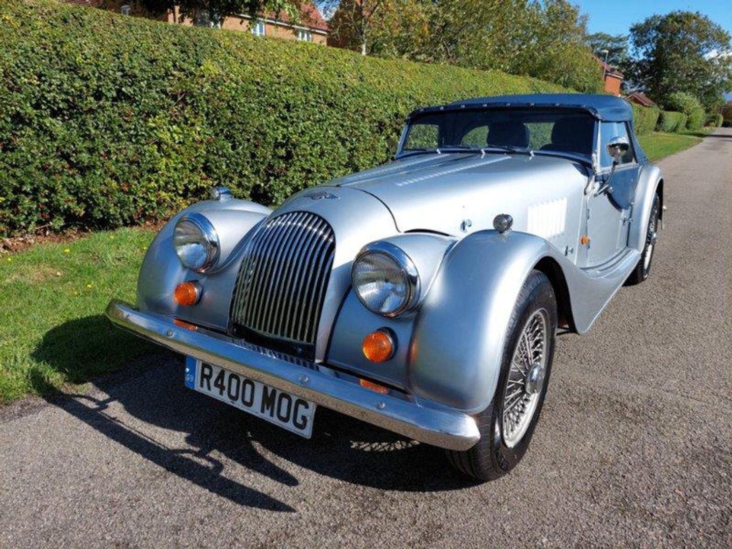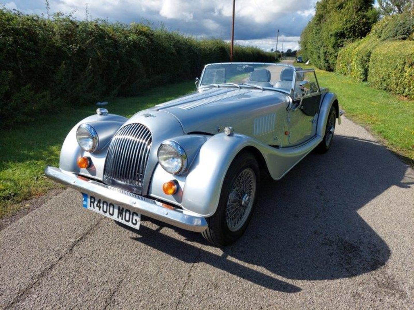 Finished in Mercedes Brilliant Silver with a Dark Blue piped Grey Leather interior this Morgan features: