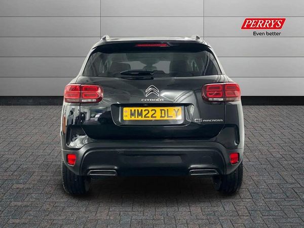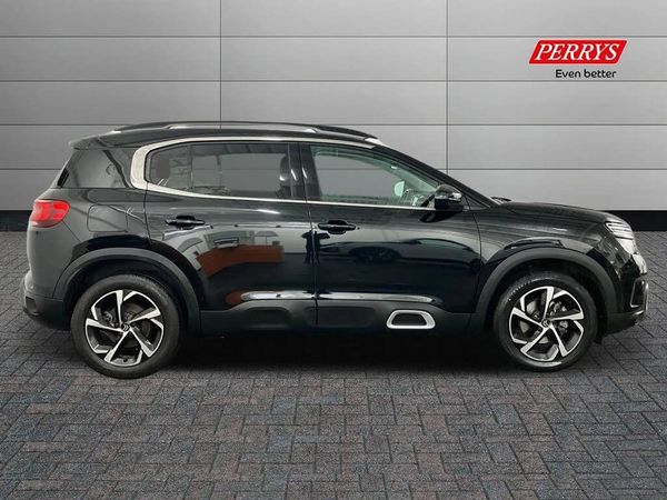 12.3" customisable TFT instrument display,Active lane departure warning system,Bluetooth telephone facility,Central 8" capacitive touch screen,Citroen connect box emergency assist system,Citroen connect Nav with connect box,Coffee Break Alert,Driver attention alert system,Eco+ mode,Electric power steering,Exterior temperature indicator with ice warning,Front parking sensors,Gear efficiency indicator,Mirror screen with Apple CarPlay and Android auto,Multi function trip computer,Programmable cruise control and speed limiter,Rear parking sensors,Speed limit recognition and recommendation,Top rear vision reversing camera,Traffic sign recognition and recommendation,Suspension with Progressive Hydraulic Cushions,2 USB sockets,Auxiliary input socket,DAB (Digital Audio Broadcasting), AM/FM and MP3 compatible radio with two tweeters and four speakers,Voice recognition for radio, navigation and telephony features,3D effect LED rear lights,Acoustic laminated windscreen with rain and brightness sensors,Airbump panels with colour insert on lower portion of the doors,Auto dimming electrochrome rear view mirror,Auto headlights,Automatic hazard light activation upon heavy brake application,Automatic triggered rear windscreen wiper in reverse gear,Body colour door handles,C5 Aircross monogram on boot rear,Chrome exhaust trim,Citroen logo and monogram on rear,Dark tinted rear windows and rear windscreen,Electric, heated and folding door mirrors with integrated LED indicator and kerb puddle light,Front fog lights with cornering function,Front windscreen wiper with magic wash cleaning system,Gloss black finish on A and B pillar and aerodynamic trim,Guide me home headlight function,Halogen rear fog lights,Halogen rear number plate lights,Headlights left on audible warning,Heated rear windscreen with integrated antenna,High level LED centre brake light,LED daytime running lights,LED front indicators,LED Headlights,Longitudinal roof bars,Matt black rear bumper fascia,Matt black side sill,Matt black upper and lower grille with chrome decor,Matte black lower rear skirt,Matte black wheel arch extensions,One touch electric front/rear windows with pinch protection,Painted front bumper,Painted rear bumper,Rear side wing doors,Roof coloured rear spoiler with stainless edging trim,Satin chrome C signature,Satin chrome window surround,Twin exhaust effect trim,12V socket in boot,12V socket in cabin,2 Central cup holders,2 Position boot floor,2 way lumbar adjustment for driver,2x Rear coat hooks,3 Independent full size rear seats with adjustable recline angle,3x Grab handles retractable with damping,Advanced comfort front and rear seats,Air recirculation when reverse gear is engaged,Anti odour and pollen filter,Central front armrest with butterfly wing opening and illuminated storage compartment,Dimmable white mood lighting,Dual zone automatic climate control,Fixing rings 4 in load compartment,Front and rear LED welcome/LED rear reading lights,Front door pockets store up to 1.5L bottle and A4 note pad,Front seat back map pockets,Gear lever in satin chrome,Height and reach adjustable leather steering wheel with 2 control zones and satin chrom inserts,Hinged rear parcel shelf,Isofix child seat preparation for front passenger seat,Leather effect dashboard fascia,Leather effect interior door handles,Manual passenger seat adjustment (height, fore/aft and backrest angle),Multi function leather steering wheel with two command blocks,Open central storage area below touch screen,Open central storage compartment,Rear door pockets store up to 75mm bottle,Rear passenger air vents,Satin chrome digital instrument panel and touchscreen trim,Satin chrome interior door handles,Seatbelt unfastened on the move audible and visual alert for front and rear seats,Single front passenger seat,Smooth opening flocked glove box with lighting,2x Isofix child seat fitting on outer rear seats,3x Rear three point retractable seatbelts with pretensioners and force limiters in the outer rear seats,ABS/EBD,Adaptive driver and front passenger airbags with passenger airbag deactivation function,Collision risk alert,Driver and front passenger side airbags,DSC (Dynamic Stability Control) and ASR (Electronic Anti-skid System),Electric child locking functionality on rear windows and doors,Electronic parking brake,ESP including traction control and stability programme,Front and rear curtain airbags,Front optimised safety headrests and 3 x rear retractable headrests with height adjustable,Front three point retractable seatbelts height adjustable with pre tensioners and force limiters,Front ventilated disc brakes and rear disc brakes,Hill start assist,Two tone horn,Tyre under inflation indicator,Alarm - perimetric and volumetric alarm with anti-lifting mechanism,Automatic door locking,Electronic code immobiliser,Keyless entry and start,Remote central locking + deadlocks,Gloss black touch screen surround with integrated tactile buttons and chrome finisher