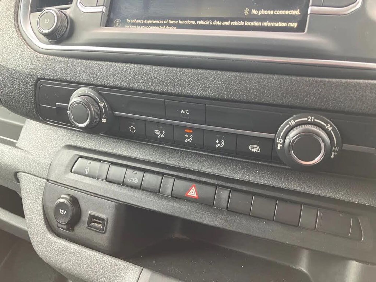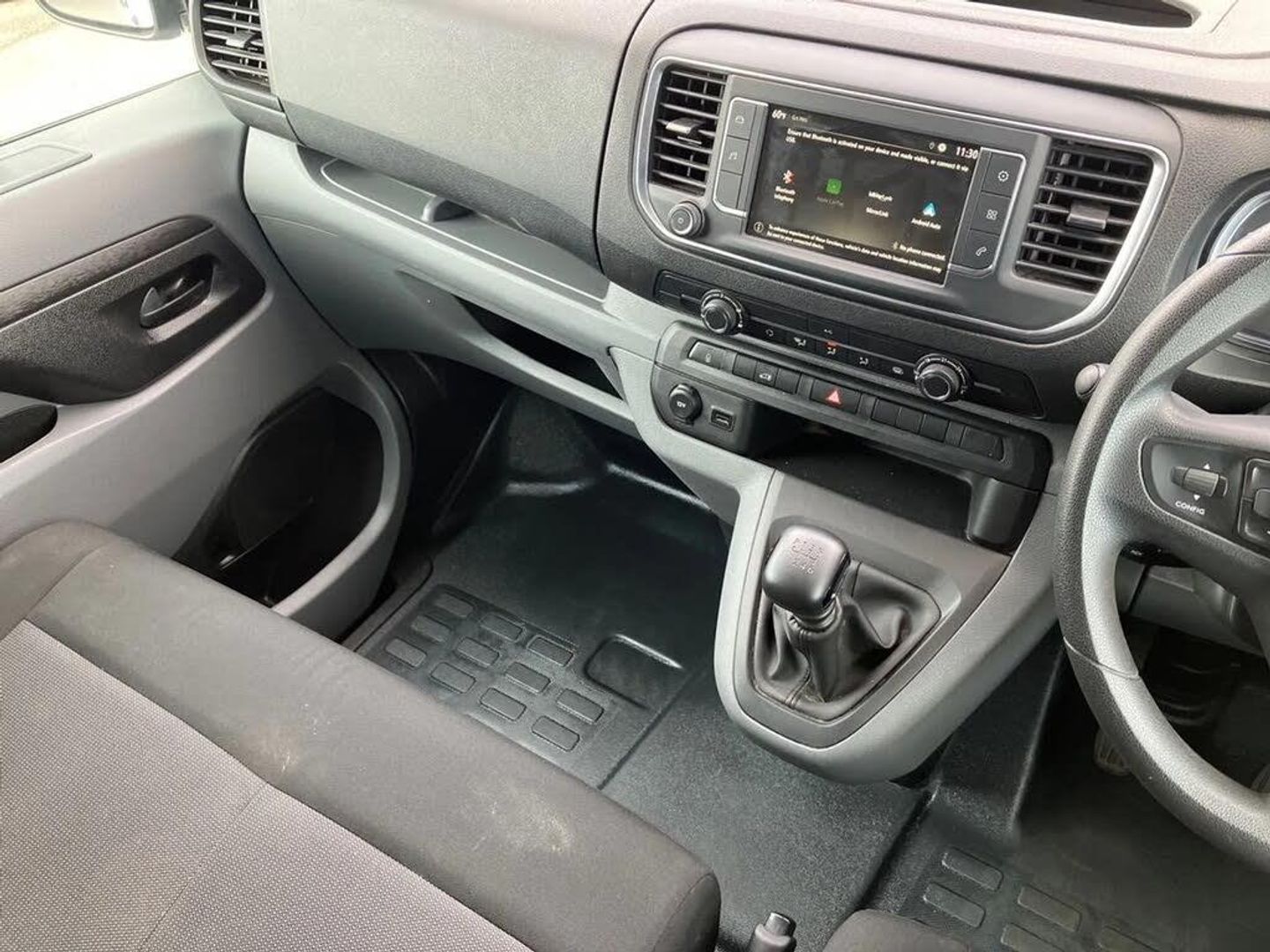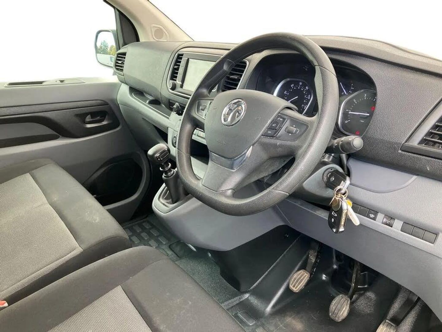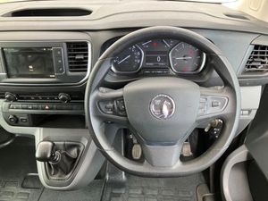e-Call and b-Call,Hydraulic power assisted rack and pinion system,Instrumentation - Speedometer, rev counter, fuel gauge with low fuel warning light and coolant temperature warning light,Multi function trip computer, trip odometer, vehicle range, average speed, driving time, average and instantaneous fuel economy,Multimedia 7"colour touch,AM/FM stereo,DAB,RDS traffic prog,4 speakers,USB,Bluetooth A2DP audio stream,mircrophone,Applecarplay/Androidauto,phone book,PAS,Rear parking distance sensor,Steering wheel mounted audio and phone controls,Daytime running lights,Electric front windows with one touch up/down facility,Electrically adjustable + heated door mirrors,Flexible roof mounted aerial,Front cornering lights,Front fog lights,Halogen headlights,Lights on audible warning, reversing light, hazard warning, rear fog light, high level brake light and side repeat indicator,Side protection mouldings,Cab soundproofing,Curitiba cloth upholstery with vinyl side bolsters,Driver seat - Height, reach, backrest recline,lumbar adjustment, driver's seat armrest and padded head restraint, 6 way adjustable drivers seat,Facia storage-upper glovebox, open lower glovebox with 12v socket and aux-in ,lower shelf, A4 storage on top, two drink holders, pocket in gear lever,Fixed dual front passenger bench seat and backrest with underseat storage and height adjustable front padded head restraints,Fixed floor mounted load restraint lashing eyes x8,Front door pockets - three separate compartments in each door,Mistral Black/Grey facia and door trim,Reach and rake adjustable steering wheel and facia mounted gear lever,Three spoke steering wheel with satin chrome effect bezel,Visibility Pack - Vivaro,3 point seat belts,Height adjustable outer front seatbelts,Inertia reel lap and diagonal seatbelts for all seats,Seatbelt remainder for driver and passenger,Electronic engine deadlock immobiliser, steering column lock, lockable fuel filler cap and anti theft spare wheel cradle,Remote control door locking, selective door locking, two keys with integral remote and door deadlocks,Security alarm system with monitors doors, tailgate, bonnet and the passenger compartment,22.5 litres AdBlue tank,70 litre fuel tank,Electronic brake force distribution,Emergency brake assist,Engine start/stop system,ESP plus + traction control,Floor mounted handbrake lever,Four channel Anti lock braking system,Front ventilated and rear disc brakes,Hill start assist,Six speed manual gearbox,Speed limiter