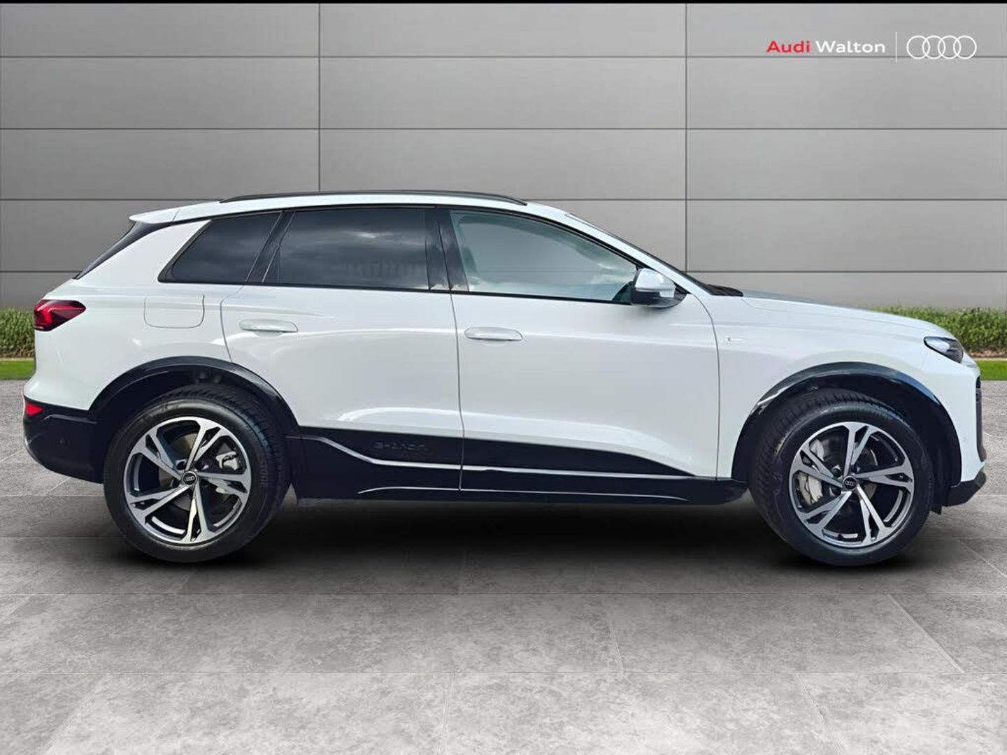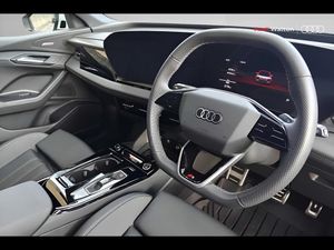 Adaptive cruise control, Advanced driver attention and fatigue montior, Audi application store, Audi assistant, Audi connect emergency call and service, Audi connect navigation and infotainment, Audi connect remote and controls, Audi digital key (Sharing with additional users and other devices is not possible), Audi drive select, Audi lane departure warning, Audi parking system plus includes 360 degree display with front and rear sensors, Audi smartphone interface, Audi virtual cockpit plus with 11.9" OLED colour display, Camera traffic sign recognition, Comfort key with SAFELOCK, Intersection assist, Lane change assistant with exit warning system, rear cross traffic alert and rear turn assist, MMI navigation plus with high resolution 14.5" OLED touchscreen colour display, Park assist plus, Progressive steering with servotronic, Swerve assist and turn assist, Top view camera, Traffic sign based speed limiter, 11KW onboard charger, Comfort suspension, Compact e-tron charging system, Household plug type G (GB), Industrial connector CEE 32A, 230V, long and straight for the e-tron charging system, Mode 3 charging cable for public charging, 22 KW (AC), On-board charger up to 270 KW (DC), Plug n charge, Quattro all wheel drive, Second charging port (AC), Wall mounted bracket for compact e-tron charging system, 2 front and 2 rear USB-C ports, Audi sound system impressive sound with 10 loudspeakers including centre speaker and subwoofer, 6-channel amplifier with a total output of 180 watts, DAB Digital radio, Smartphone compartment with wireless charging, Acoustic windscreen, Auto dimming rear view mirror, Black roof rails, Black window surrounds, Body colour door mirrors, Electric adjustable/heated/folding door mirrors with auto dimming, Electric charging cover, Front door sill trims with aluminium inlays, illuminated with 'S' logo, Headlight cleaning system, High beam assist, LED 3rd brake light, LED headlights plus incl. digital DRL, dynamic coming and leaving home function with turning/all weather/motorway/manouevring and intersection lights, LED rear lights pro incl. dynamic rear indicators and illuminated light strip with animated coming and leaving home function, Privacy glass, Rear side wing doors, Rear wiper, S Line badge on the front wings, S line bumpers, S line exterior styling with radiator grille in body colour and accents in dark selenite silver front and rear, Side and rear windows in heat insulating glass, Towbar preparation, White rhombus logo projection light in exterior mirrors, 3 bench rear seats in 2nd row, 3 rear head restraints, 3 spoke multifunction heated leather steering wheel with touch control, flat on top and bottom, with 'S' badge,contrast stitch, 3 zone automatic climate control including comfort remote pre-conditioning, 4-way electric lumbar support, 40:20:40 split folding rear seat bench , centre armrest and cupholders, 64L frunk storage space under the bonnet, Black carpets, Black cloth headlining, Comfort front centre armrest, Front sport seats with 'S' embossed logo, Front/rear floor mats, Heat pump, Heated front and outer rear seats, i-Size child seat mounting on the front passenger side and outer rear seats, i-Size and top tether on the outer rear seats, Integrated front head restraints, Luggage compartment lid, electrically opening and closing, Manually adjustable front seats, Manually adjustable steering column, Single front passenger seat, Stainless steel pedals and footrest, Steering wheel grips in perforated leather and shift paddles, Upper and lower interior elements in leatherette plus, Ambient lighting pack - Q6, 3 point seatbelts on all seats, Acoustic vehicle alerting system, Airbags in front, front passenger airbag is automatically activated and deactivated, Electric child locks, Front emergency brake assist, Front interaction airbag, Front side and head airbags, Hill hold assist, Rear seat occupant reminder for child presence detection, Seat belt monitoring, Tyre pressure loss indicator, Warning triangle and first aid kit, Anti-theft wheel bolts, Thatcham approved category 1 anti theft alarm, Accent surfaces and control buttons in gloss black, Anthracite matt brushed aluminium inlays, Black dashboard with contrast stitching, Softwrap in leatherette with contrast stitching, Tyre repair kit