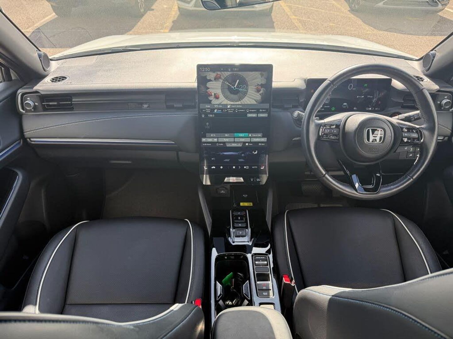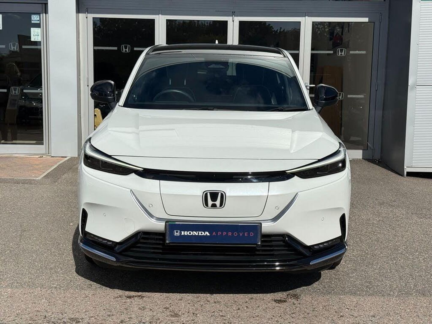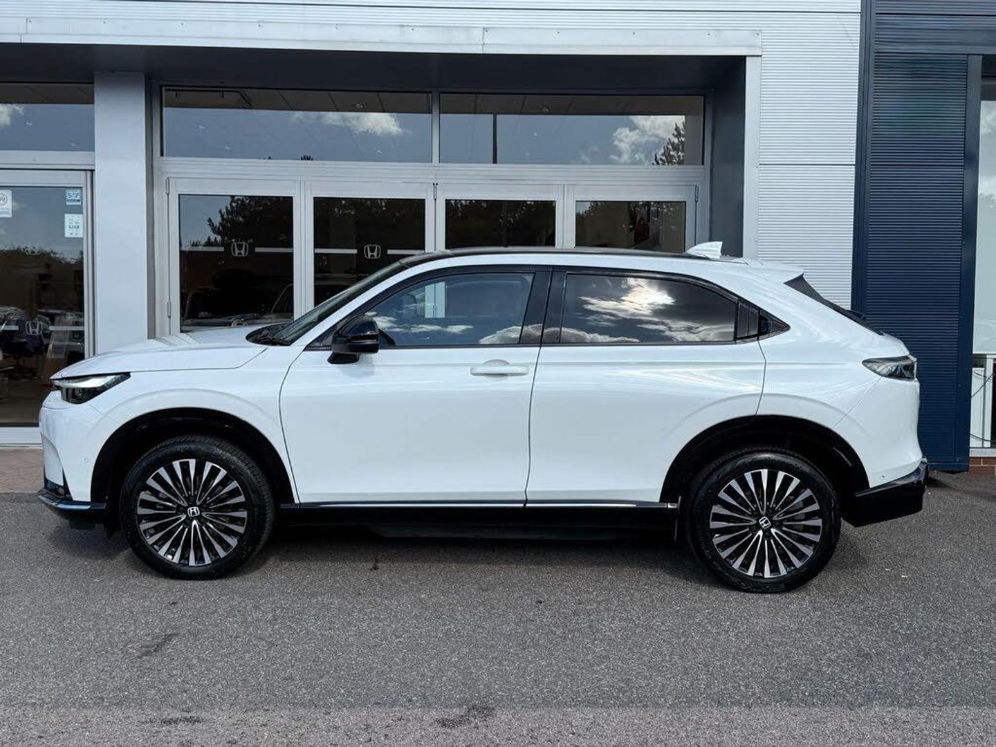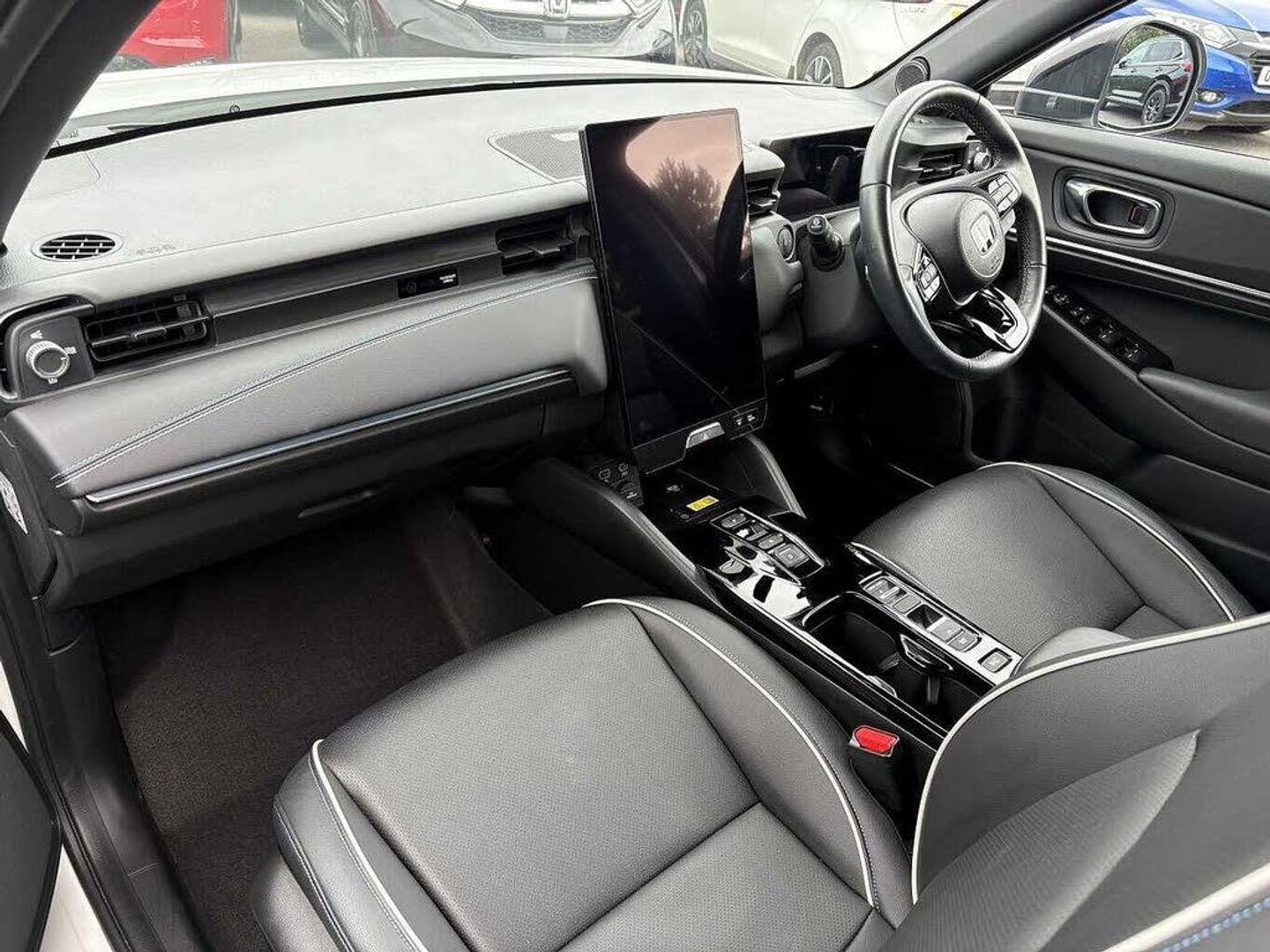 Exterior Features, Auto wipers, Front and rear electric windows, Privacy glass, Rain sensor, Rear wiper, Vehicle stability assist, Body colour door handles, High gloss black window garnish, Panoramic glass sunroof, Rear honda badging in white, Rear roof spoiler, Rear side wing doors, Shark fin antenna, 3rd brake light, Auto headlights, Front fog lights, Front LED Indicator lights, Headlight auto on/off timer, High beam assist, LED daytime running lights, LED Headlights, Smoke and clear lens rear light, White headlight extension, Safety, ABS/EBD, Brake assist function, Brake hold function, Collision mitigation braking system, Electronic parking brake with auto hold, Front and rear collision mitigation throttle control, Hill start assist, Regenerative braking/deceleration paddle control, 4 x front 4 x rear 4 x side parking sensors, Adaptive cruise control, Agile handling assist, Electric power steering, Emergency stop signalling system, Forward collision warning, Honda parking pilot, Intelligent speed limiter, Lane departure warning system, Lane keep assist system, Lead car departure notification system, Low speed following, Multi view camera, Road departure mitigation, Traffic sign recognition, Auto dimming rear view mirror, Electrically adjustable and heated door mirrors, Electrically folding door mirrors, 3 rear 3 point seatbelts, Child locks on rear doors, Deflation warning system, Driver airbag, Driver SRS airbag (single stage inflation), Front and rear curtain airbags, Front passenger airbag, Front side airbags, Passenger SRS airbag with cut off switch, Whiplash lessening front headrests, Audio / Communications, Bluetooth hands free telephone connection, E-call, Wireless charging, 2 Tweeters, 2 x rear USB ports, 4 speakers, Front USB connections (Type-A and Type-C), Pioneer premium audio, Steering wheel audio remote control, Driver Convenience, Handfree power tailgate with kick sensor and walk away close, Power meter, Miscellaneous, Drive mode (Econ, Sport, Normal), Econ mode, Honda CONNECT with Navigation 15" touchscreen, AM/FM/DAB, Apple Carplay and Android Auto, Live traffic info, Traffic jam assist, Trim, Exclusive styling silver trim with blue lighting in door and dash, 3 seat bench in 2nd row, 60/40 split one touch flat folding rear seats, 8 way electrically adjustable drivers seat, Driver seat back pocket, Heated front seats, I-Size ISO Fix Points, Rear head restraints, Single front passenger seat, Interior Features, Air conditioning - Rear vent, Dual zone automatic climate control, Black interior panels, Cargo net hooks, Chrome interior door handles, Driver and front passenger seat armrests, Heated steering wheel, Leather steering wheel, Meter illumination, Normal pedals, Synthetic leather upholstery, Tilt/telescopic adjustable steering wheel, Tonneau cover, Under trunk charging cable storage, Ambient lighting on roof, Courtesy lights, Front map lights, Rear reading lights, Trunk light, Driver/passenger sunvisors with illuminated vanity mirrors, Security, Honda super locks, Immobiliser, Mirrors and windows key fob operation, Remote central locking with 2 key fobs, Security alarm, Smart entry + Smart start, Ultrasonic security sensor, Vehicle Charging, 11kW on board charger, Wheels, White wheel covers, Flat tyre solution temper tyre/repair kit, Paint - Special, Premium - Platinum white, Trim - Leather, Synthetic leather - Black with active blue stitching accent