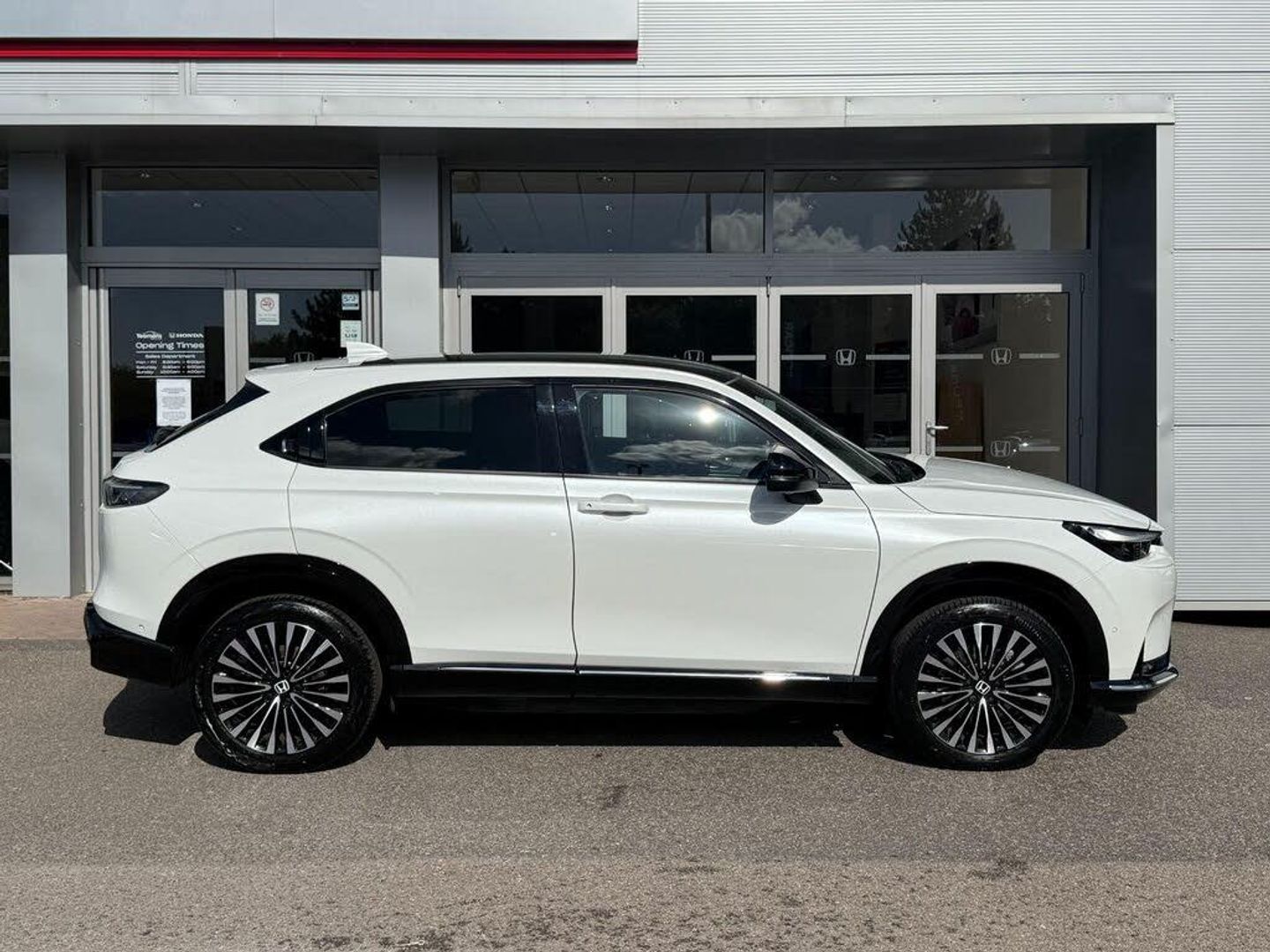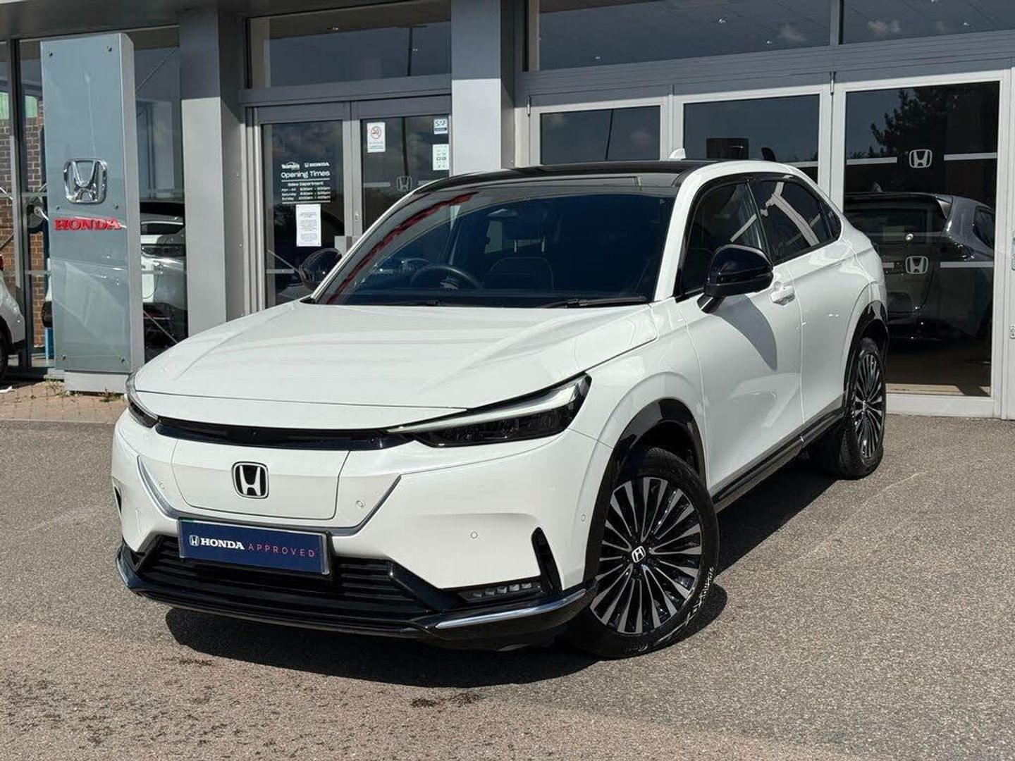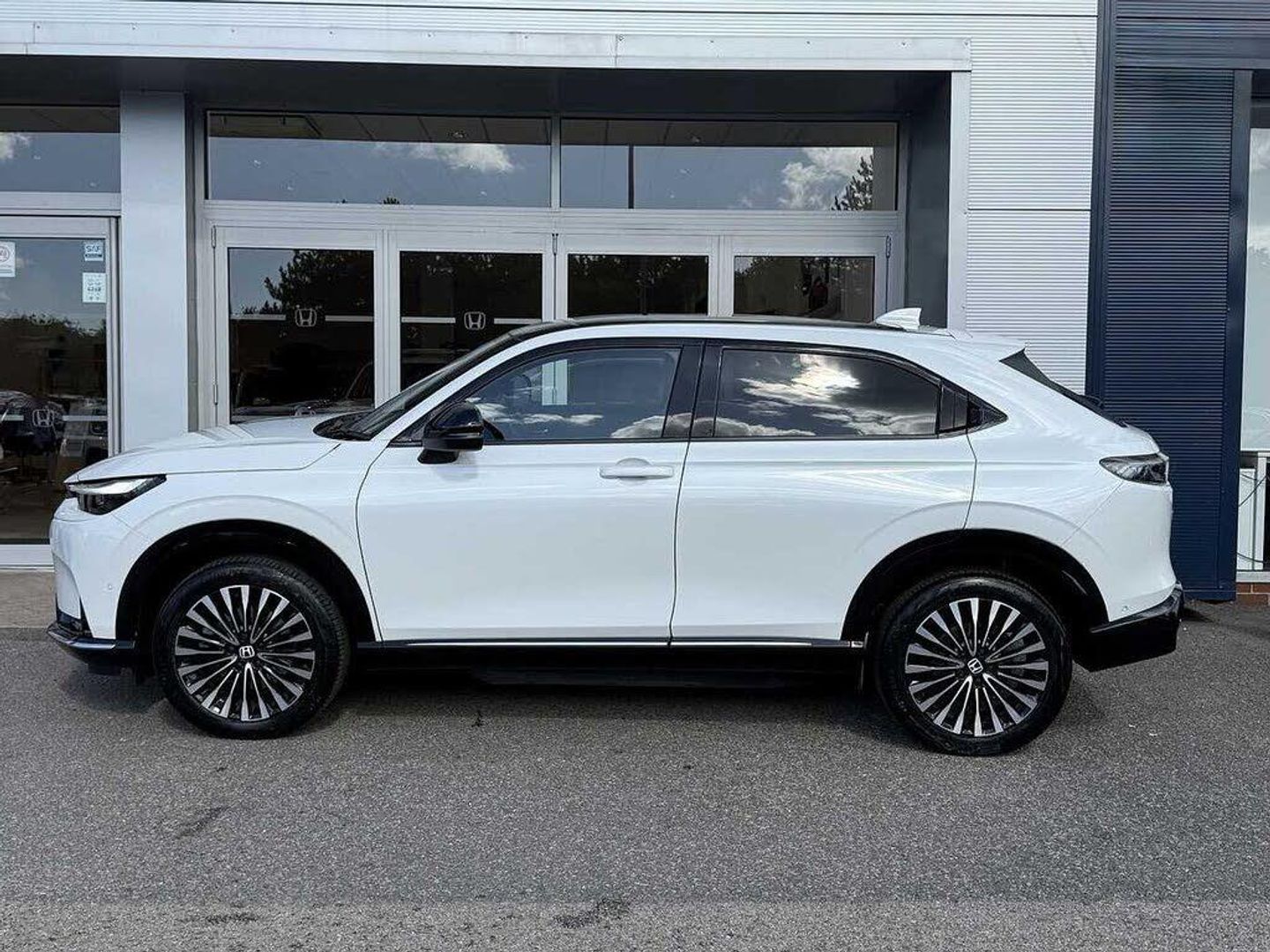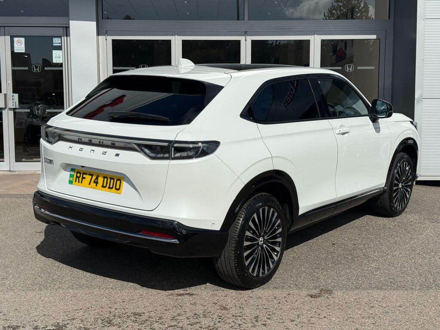 Exterior Features, Auto wipers, Front and rear electric windows, Privacy glass, Rain sensor, Rear wiper, Vehicle stability assist, Body colour door handles, High gloss black window garnish, Panoramic glass sunroof, Rear honda badging in white, Rear roof spoiler, Rear side wing doors, Shark fin antenna, 3rd brake light, Auto headlights, Front fog lights, Front LED Indicator lights, Headlight auto on/off timer, High beam assist, LED daytime running lights, LED Headlights, Smoke and clear lens rear light, White headlight extension, Safety, ABS/EBD, Brake assist function, Brake hold function, Collision mitigation braking system, Electronic parking brake with auto hold, Front and rear collision mitigation throttle control, Hill start assist, Regenerative braking/deceleration paddle control, 4 x front 4 x rear 4 x side parking sensors, Adaptive cruise control, Agile handling assist, Electric power steering, Emergency stop signalling system, Forward collision warning, Honda parking pilot, Intelligent speed limiter, Lane departure warning system, Lane keep assist system, Lead car departure notification system, Low speed following, Multi view camera, Road departure mitigation, Traffic sign recognition, Auto dimming rear view mirror, Electrically adjustable and heated door mirrors, Electrically folding door mirrors, 3 rear 3 point seatbelts, Child locks on rear doors, Deflation warning system, Driver airbag, Driver SRS airbag (single stage inflation), Front and rear curtain airbags, Front passenger airbag, Front side airbags, Passenger SRS airbag with cut off switch, Whiplash lessening front headrests, Audio / Communications, Bluetooth hands free telephone connection, E-call, Wireless charging, 2 Tweeters, 2 x rear USB ports, 4 speakers, Front USB connections (Type-A and Type-C), Pioneer premium audio, Steering wheel audio remote control, Driver Convenience, Handfree power tailgate with kick sensor and walk away close, Power meter, Miscellaneous, Drive mode (Econ, Sport, Normal), Econ mode, Honda CONNECT with Navigation 15" touchscreen, AM/FM/DAB, Apple Carplay and Android Auto, Live traffic info, Traffic jam assist, Trim, Exclusive styling silver trim with blue lighting in door and dash, 3 seat bench in 2nd row, 60/40 split one touch flat folding rear seats, 8 way electrically adjustable drivers seat, Driver seat back pocket, Heated front seats, I-Size ISO Fix Points, Rear head restraints, Single front passenger seat, Interior Features, Air conditioning - Rear vent, Dual zone automatic climate control, Black interior panels, Cargo net hooks, Chrome interior door handles, Driver and front passenger seat armrests, Heated steering wheel, Leather steering wheel, Meter illumination, Normal pedals, Synthetic leather upholstery, Tilt/telescopic adjustable steering wheel, Tonneau cover, Under trunk charging cable storage, Ambient lighting on roof, Courtesy lights, Front map lights, Rear reading lights, Trunk light, Driver/passenger sunvisors with illuminated vanity mirrors, Security, Honda super locks, Immobiliser, Mirrors and windows key fob operation, Remote central locking with 2 key fobs, Security alarm, Smart entry + Smart start, Ultrasonic security sensor, Vehicle Charging, 11kW on board charger, Wheels, White wheel covers, Flat tyre solution temper tyre/repair kit, Paint - Special, Premium - Platinum white, Trim - Leather, Synthetic leather - Black with active blue stitching accent