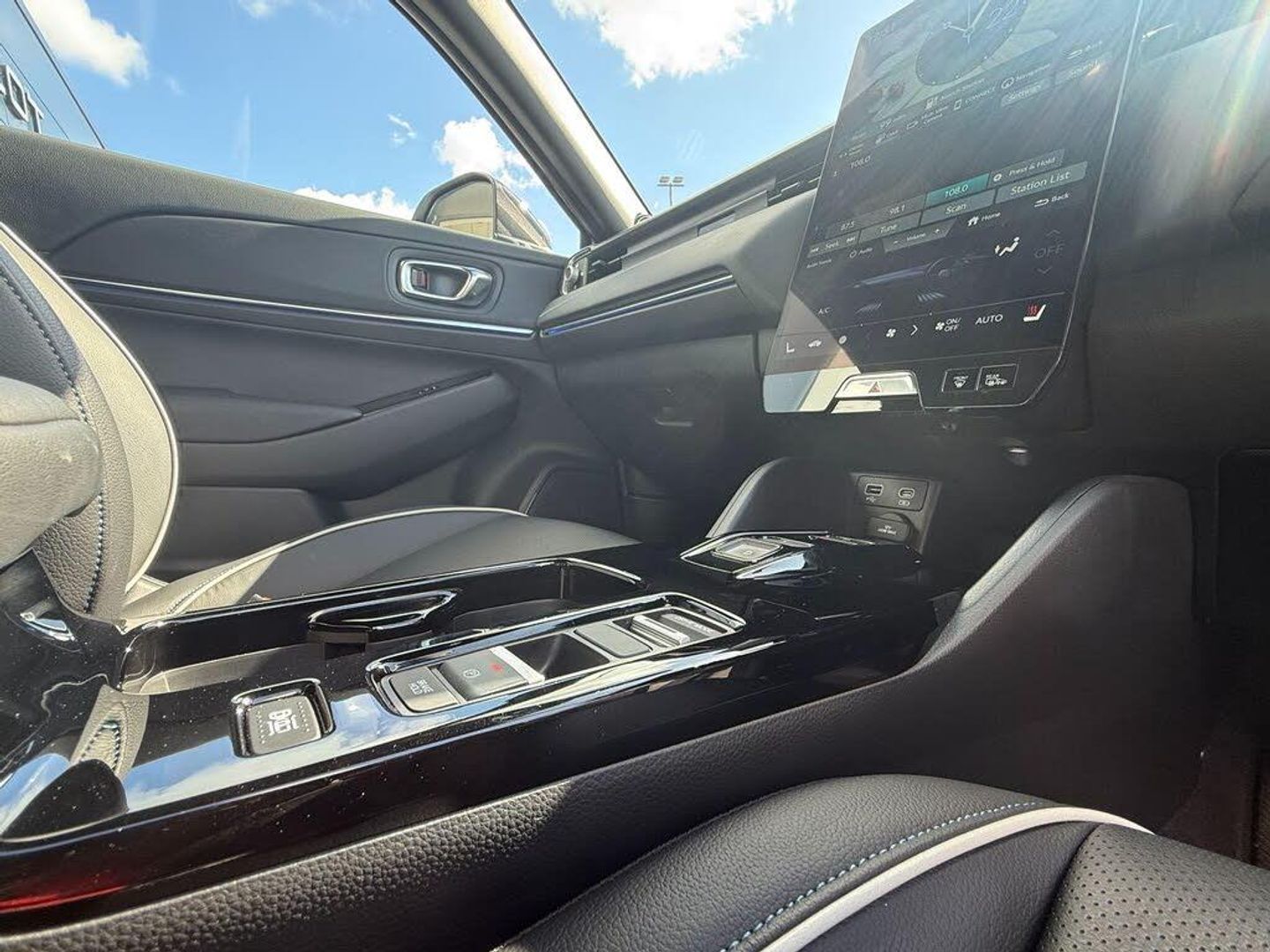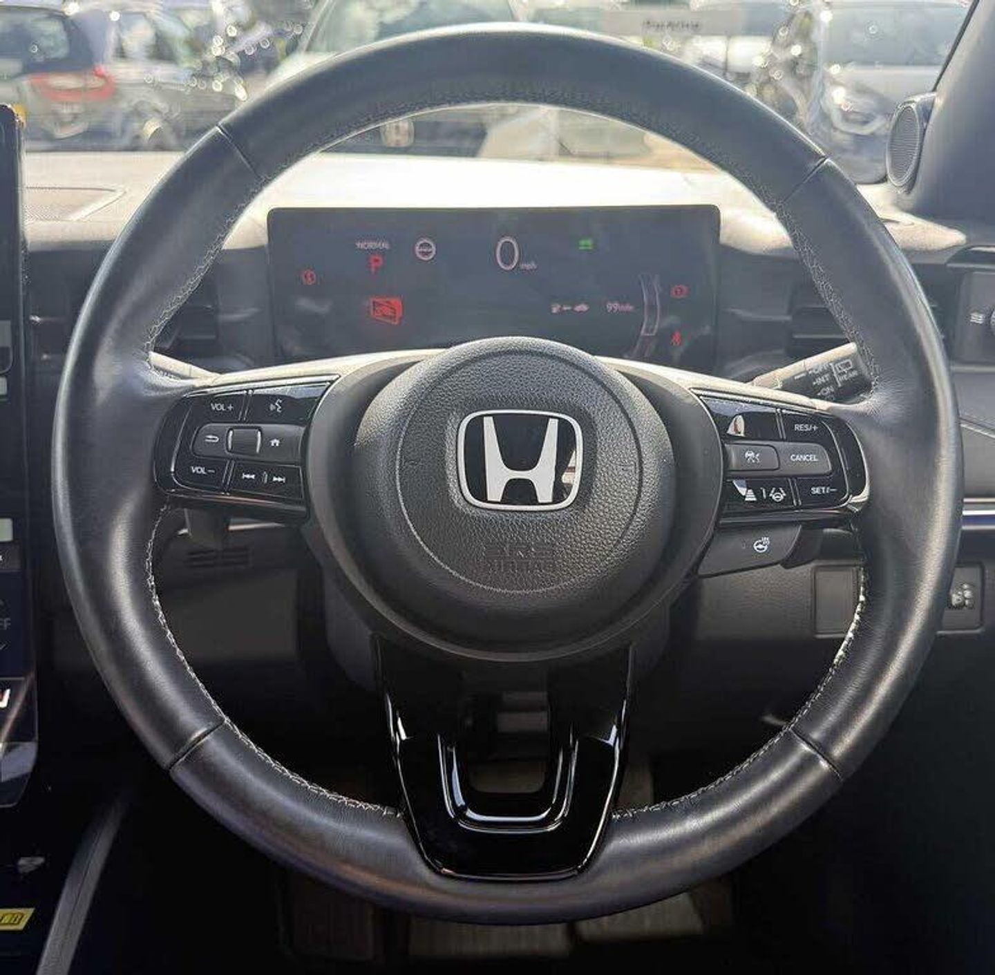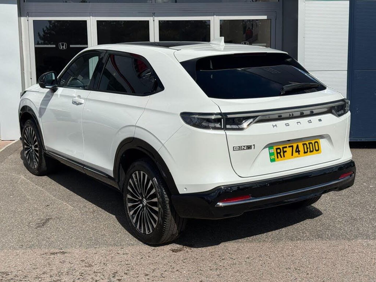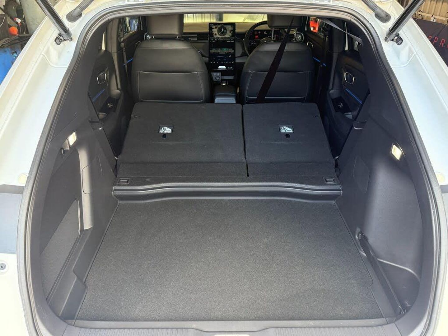 Exterior Features, Auto wipers, Front and rear electric windows, Privacy glass, Rain sensor, Rear wiper, Vehicle stability assist, Body colour door handles, High gloss black window garnish, Panoramic glass sunroof, Rear honda badging in white, Rear roof spoiler, Rear side wing doors, Shark fin antenna, 3rd brake light, Auto headlights, Front fog lights, Front LED Indicator lights, Headlight auto on/off timer, High beam assist, LED daytime running lights, LED Headlights, Smoke and clear lens rear light, White headlight extension, Safety, ABS/EBD, Brake assist function, Brake hold function, Collision mitigation braking system, Electronic parking brake with auto hold, Front and rear collision mitigation throttle control, Hill start assist, Regenerative braking/deceleration paddle control, 4 x front 4 x rear 4 x side parking sensors, Adaptive cruise control, Agile handling assist, Electric power steering, Emergency stop signalling system, Forward collision warning, Honda parking pilot, Intelligent speed limiter, Lane departure warning system, Lane keep assist system, Lead car departure notification system, Low speed following, Multi view camera, Road departure mitigation, Traffic sign recognition, Auto dimming rear view mirror, Electrically adjustable and heated door mirrors, Electrically folding door mirrors, 3 rear 3 point seatbelts, Child locks on rear doors, Deflation warning system, Driver airbag, Driver SRS airbag (single stage inflation), Front and rear curtain airbags, Front passenger airbag, Front side airbags, Passenger SRS airbag with cut off switch, Whiplash lessening front headrests, Audio / Communications, Bluetooth hands free telephone connection, E-call, Wireless charging, 2 Tweeters, 2 x rear USB ports, 4 speakers, Front USB connections (Type-A and Type-C), Pioneer premium audio, Steering wheel audio remote control, Driver Convenience, Handfree power tailgate with kick sensor and walk away close, Power meter, Miscellaneous, Drive mode (Econ, Sport, Normal), Econ mode, Honda CONNECT with Navigation 15" touchscreen, AM/FM/DAB, Apple Carplay and Android Auto, Live traffic info, Traffic jam assist, Trim, Exclusive styling silver trim with blue lighting in door and dash, 3 seat bench in 2nd row, 60/40 split one touch flat folding rear seats, 8 way electrically adjustable drivers seat, Driver seat back pocket, Heated front seats, I-Size ISO Fix Points, Rear head restraints, Single front passenger seat, Interior Features, Air conditioning - Rear vent, Dual zone automatic climate control, Black interior panels, Cargo net hooks, Chrome interior door handles, Driver and front passenger seat armrests, Heated steering wheel, Leather steering wheel, Meter illumination, Normal pedals, Synthetic leather upholstery, Tilt/telescopic adjustable steering wheel, Tonneau cover, Under trunk charging cable storage, Ambient lighting on roof, Courtesy lights, Front map lights, Rear reading lights, Trunk light, Driver/passenger sunvisors with illuminated vanity mirrors, Security, Honda super locks, Immobiliser, Mirrors and windows key fob operation, Remote central locking with 2 key fobs, Security alarm, Smart entry + Smart start, Ultrasonic security sensor, Vehicle Charging, 11kW on board charger, Wheels, White wheel covers, Flat tyre solution temper tyre/repair kit, Paint - Special, Premium - Platinum white, Trim - Leather, Synthetic leather - Black with active blue stitching accent