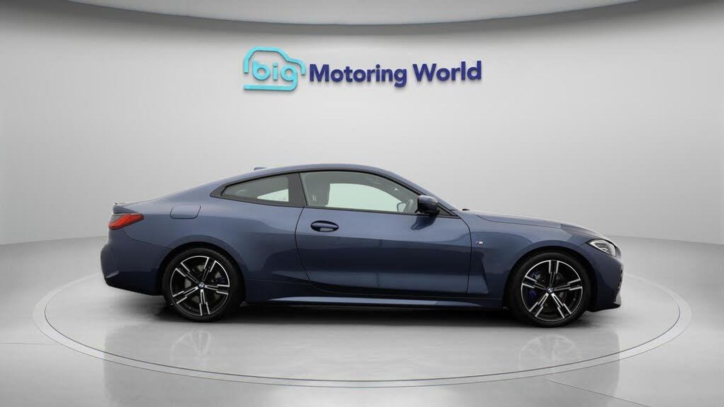 Leather Seats,M Sport Exterior-Our BMW 4 Series comes with optional extras worth £695. Specification includes a range of fantastic features including Leather Seats, M Sport Exterior Styling Pack, M Sport Bodykit, Professional Nav, Satellite Navigation, Heated Seats, Bluetooth, Internet, Parking Sensors, Touch Pad Specification information is supplied by CAPHPI and may vary to the actual car. This data does not form any part of a buying contact. Please check specification prior to purchase in-store. The MOT is valid until August 2026, visit bigmotoringworld.co.uk for more photos, a 360 tour, service history and a free HPI report.Were BIG on peace of mind and this Blue BMW 4 Series has completed our comprehensive 200 point inspection and passed all checks. Its ready for you to drive away with immediate collection in-store. We include a 90-day warranty as standard plus an option to extend for up to 3 years.Reserve this car exclusively for you, safely and securely at bigmotoringworld.co.uk, with a fully refundable £99 deposit. Test drive before you buy, with no commitment, no hassle and a completely haggle free experience. Still searching and want to see thousands more cars? We are BIG on choice with over 8000 cars to choose from.Visit our award winning web site bigmotoringworld.co.uk.Were Big Motoring World and were BIG on what matters to you.