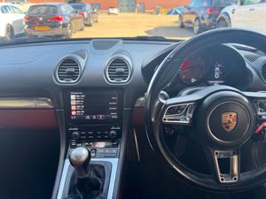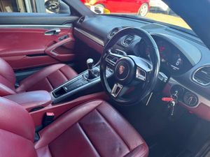 12-Volt Socket in Passenger Footwell, 19in Alloy Wheels - Cayman S, 64 Litre Fuel Tank, Adjustable Fan with Air Recirculation and Defroster Functions, Air Conditioning with Integrated Active Carbon Filter, Alarm System, Anti-Theft Wheel Bolts, Automatic Headlight Activation including Welcome Home Lighting, Automatically Extending Rear Spoiler, Bi-Xenon Headlights with Integrated LED Daytime Running Lights, Brake Calipers - Red, Clothes Hooks on Seat Backrests, Connect Plus, Digital Displays for Vehicle Speed - Chosen Gear - Odometer - Trip Odometer and Clock, Digital Radio, Door Sill Guards - Model Designation Logo, Electric Parking Brake, Electric Windows Lifts with One Touch Operation and Door-Seal Protection, Electrically Adjustable Heated Exterior Mirrors on Door Waist Rails - Aspherical on Drivers Side, Electromechanical Power Steering with Variable Steering Ratio and Steering Pulse Generator, Elevated Centre Console with an Open Storage Compartment and a Closed Storage Compartment, Engine Immobiliser with in-Key Transponder - Central Locking with Remote Control, Fixed Roll-Over Protection System, Floor Mats, Full Size Airbags for Driver and Front Passenger, Green Tinted Heat-Insulating Glass, Heated Rear Screen, Instrument Cluster with Central Rev Counter and High Resolution 4.6inch Colour Display, Instrument Dials in Black with Rev Counter in Silver, Integrated 4G-LTE Compatible SIM, LED Reading Lights, LED Tail Lights with Integrated Four-Point Brake Lights and Reversing Lights, Luggage Compartments at Front and Rear, PCM - Porsche Communication Management - Include Navigation, PORSCHE Logo on Accent Strip and Model Designation on Rear Apron in Silver Colour - High Gloss, Porsche Side Impact Protection - POSIP, Porsche Stability Management - PSM with ABS with Advance Brake Functions, Reinforced Brake System, Roof Lining in Fabric, Separate Auxiliary Lights in the Front End with LED Indicators and Position Lights, Smooth-Finish Leather - Door Panel Armrests and Centre Console Storage Compartment, Smooth-Finish Leather on Steering Wheel Rim - Gear Lever and Door Handles, Sound Package Plus, Sports Seats - Electrical 2 Way, Sports Steering Wheel - Diameter 375mm with Manual Fore-Aft and Height Adjustment, Sports Style Pedals and Footrest, Storage Compartment in Each Door, Twin-Tract Exhaust System with Twin Tailpipe in Stainless Steel, Two Individual Cupholders, Tyre Pressure Monitoring - TPM, Tyre Sealing Compound and Electric Air Compressor, Wide Opening Rear Hatch with Heated Screen, Windscreen Washer System with Two Wiper Speeds and Washer Jets, Windscreen with Top-Tint