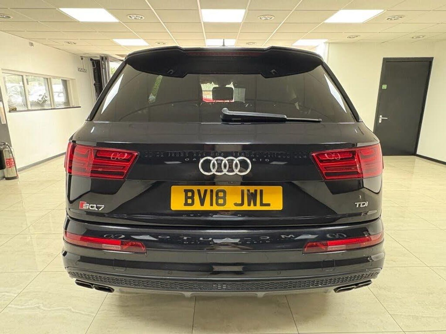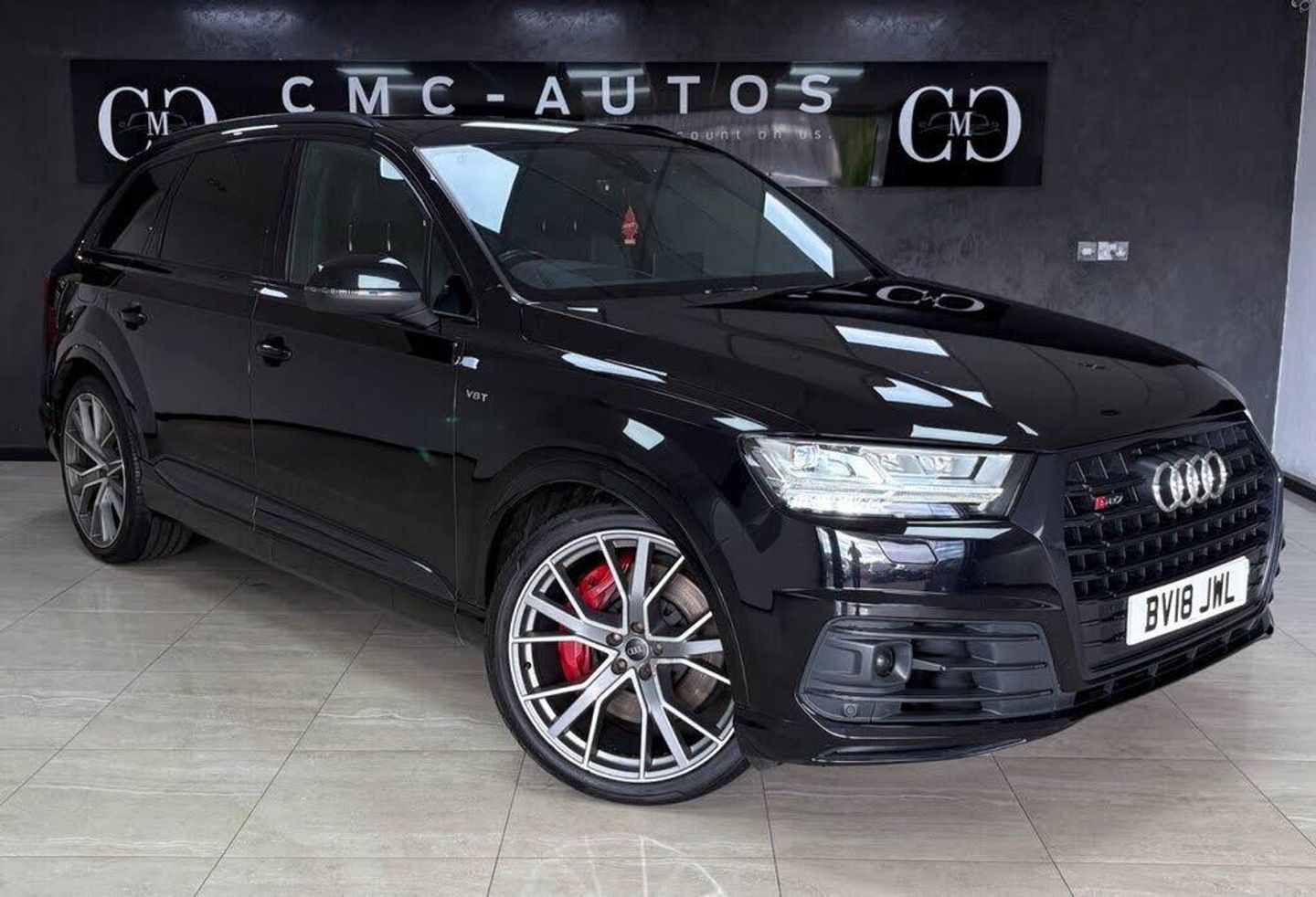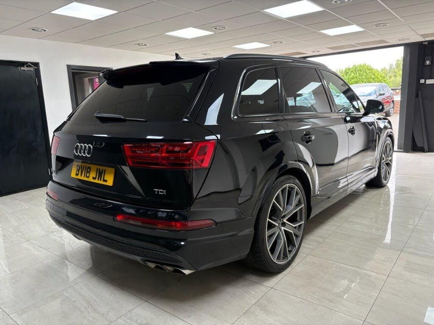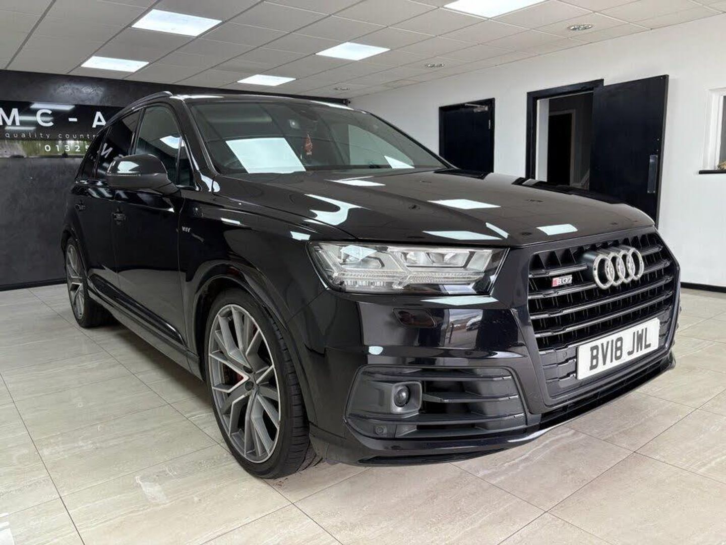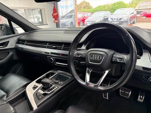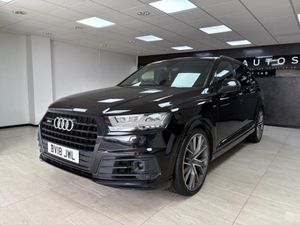 Valcona Leather - Sports Seats with S Embossed Logo - Black with Dark Silver Stitching, Steering Wheel - 3-Spoke Leather-Multi-Function-Heated-Sports-Shift Paddles, Orca Black, Technology Package, Tour Pack, Audi Exclusive Floor Mats, Titanium Black Styling Pack with Black Roof Rails, Red Painted Brake Calipers with S Logo, 22in Alloy Wheels - 5-V-Spoke Aluminium Star Design Audi Sport - Titanium-Look Gloss-Turned Finish, 20in Alloy Wheels - 5-Arm Off Road Design - Matt Titanium Look Gloss Turned, 6-Airbag System, 7 Seats, Active Sound Exhaust System, Adaptive S Air Suspension, Aluminium Roof Rails, Aluminium Window Trims, Aluminium-Effect Door Mirror Housings, Anti Theft Locking Wheel Bolts, Anti-Theft Alarm, Audi Beam, Audi Connect Infotainment Services - 36 Month Trial, Audi Connect Safety and Service, Audi Drive Select, Audi Hill Hold Assist, Audi Parking System Plus, Audi Phone Box with Wireless Charging, Audi Pre-Sense City, Audi Smartphone Interface, Audi Sound System, Audi Virtual Cockpit, Auto-Dimming Rear-View Mirror, Automatic Headlight Adjustment, Bluetooth Interface, Brake Calipers - Black with S Logo, Cloth Headlining in Black, Colour Drivers Information System with 7in High-Resolution TFT Screen, Cruise Control with Speed Limiter, Deluxe Four-Zone Automatic Climate Control, Door Mirrors - Heated-Electrically Adjustable-Folding, Door Sill Trims with SQ7 Logo, Dual-Branch Oval Twin Tailpipes in Chrome Finish, ESC - Electronic Stabilisation Control inc ABS - ASR and EDL, Electric Windows - Front and Rear, Electrically Adjustable 4-Way Lumbar Support, Electrically Adjustable Front Seats, Electromechanical Parking Brake, Email and Text Messages can be Displayed on your Vehicles MMI, First Aid Kit and Warning Triangle, Front Bumper Air Inlet Struts in Aluminium Effect, Front Centre Armrest - Adjustable, Front and Rear Floor Mats, Fuel Tank 85L and 24L AdBlue tank, Heated Front Seats, High-Beam Assist, Hill Descent Control, ISOFIX Child Seat Mounting, Interior Light Package, Keyless Go, LED Headlights with LED Rear Lights and Dynamic Rear Indicators and High-Beam Assist, Light and Rain Sensor, Luggage Compartment - Cover Electric, Luggage Compartment Sill Protection in Stainless Steel, MMI Navigation Plus including MMI Touch, MMI Radio Plus and DAB, Online Media Streaming - Audi MMI Connect App Required, Pedals in Stainless Steel, Power Operated Tailgate, Power Steering, Privacy Glass, Rear View Camera, Remote Central Locking, S Single-Frame Grille in Aluminium Effect with SQ7 Logo, SQ7 Badging, Seat Belt Monitoring, Steering Wheel - 3-spoke S line Multi-function Leather with Paddle-shift, Tool Kit, Tyre Pressure Loss Indicator, Tyre Repair Kit, Upper Inlays in Brushed Aluminium-Sono and Lower Inlays in Chrome Paint Finish-Slate Grey, Voice Control System, quattro Blade in Aluminium Effect