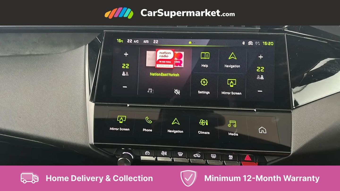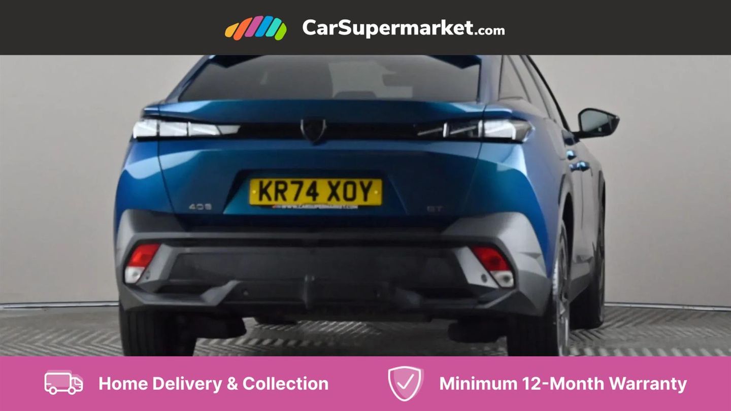 Bluetooth telephone facility,Compact automatic gearbox impulse selector,Driver attention warning,Driver's profile setting,Emergency call service,Extended traffic sign recognition,Exterior temperature indicator with ice warning,Front and rear parking sensors,Intelligent speed adaptation,Lane keep assist,Multi driving mode selector - Eco / Normal / Sport mode selector,Multi function trip computer,PEUGEOT i-Cockpit with 10" 3D digital customisable instrument panel display,PEUGEOT i-Cockpit with 10.0" high definition (HD) capacitive touchscreen,PEUGEOT i-Cockpit with compact steering wheel,PEUGEOT i-Connect Advanced - Over the air updates,PEUGEOT SOS and assistance,Push button start,Speed limit recognition and recommendation,Wifi and voice recognition,Wireless apple car play/android Auto,2x USB sockets in front,2x USB sockets in rear,DAB Digital radio,PEUGEOT i-Cockpit with PEUGEOT configurable i-Toggles,3rd brake light,408 Model designation badges on front and rear,Acoustic laminated front windows,Acoustic tinted windscreen,Automatic hazard light activation upon heavy brake application,Body colour door handles,Body colour rear spoiler,Dark tinted rear side and tailgate windows,Electric, heated, and power folding door mirrors,Frameless electrochrome rear view mirror,Front and rear electric windows with one touch/anti pinch,Front grille with vertical body colour stamping,Full LED matrix headlights with automatic adjustment,Gloss black finish B pillar,Gloss black rear cluster connecting strip,GT model designation badging on tailgate,High beam assist,LED rear number plate lights,LED side indicator lights integrated into door mirrors,Lower body and wheel arch "SUV style" protection,Nera black door mirrors,PEUGEOT shield on front doors,PEUGEOT signature LED front daytime running lights incorporating indicators,Rear bumper grained black,Rear full LED 3D Peugeot new claw effect lights with sequential welcome sequence upon unlocking the vehicle,Rear reversing lights,Rear side wing doors,Roof mounted 'fin' style antenna,Smart electric tailgate,Tailgate with heated rear windscreen and wiper blade,1/3 2/3 'Magic Flat' folding rear seats with controls located in the boot,2x 12V sockets,3 seat bench in 2nd row,4 Grab handles retractable and damped,8 Colour personalisable ambient lighting,Air purification system 'Clean Cabin',Aluminium door sills and boot sill,Aluminium pedals and footrest,Arch design central console with storage,Central front armrest with storage compartment,Dual Zone automatic air conditioning with AQS 3,Dynamic front seats,Electric power steering with reach and rake adjustable steering column,Front central console with two cup holders,Gloss black waistbelt (window weather strips),Glovebox with LED lighting,Heated steering wheel,High air vent system,Luggage cover,Multifunction full grain leather steering wheel with admite green stitching & GT badging,Roof lining - Mistral black,Seatbelt unfastened on the move audible and visual alert for front and rear seats,Single front passenger seat,Ski hatch with central rear armrest with cup holder,Steering wheel mounted gearshift paddles,Sunvisor with concealable vanity mirrors with LED lighting,Driver Sport Pack - 408,Visibility pack - 408,2x Isofix child seat fitting on outer rear seats,3x3 point rear seat belts,ABS + EBD + EBA,Active safety brake with night function/cyclists/pedestrians,Adaptive driver and front passenger airbags with passenger airbag deactivation function,Advanced emergency braking system (Video - AEB),Automatic post collision braking,Child locks on rear doors,Driver/front passenger side airbags,Electronic parking brake,ESP,Front and outer rear seatbelts with pyrotechnic pretensioners,Front and rear curtain airbags,Front and rear disc brakes,Front optimised safety headrests and rear retractable headrests (x3), height adjustable,Front three point retractable seatbelts with force limiters,Hill start assist,Tyre under inflation monitoring and indirect detection with visual indicator and warning sound,Anti-theft wheel bolts,Automatic door locking when moving off,Deadlocking system,Electronic code immobiliser,Locking wheel nuts,Peugeot open and go system includes keyless entry with proximity locking and unlocking,Thatcham cat. 1 alarm with anti lift sensor,19" Graphite diamond cut alloy wheels in Onyx black gloss,Alloy wheel 'star' centre cap,Tyre puncture repair kit