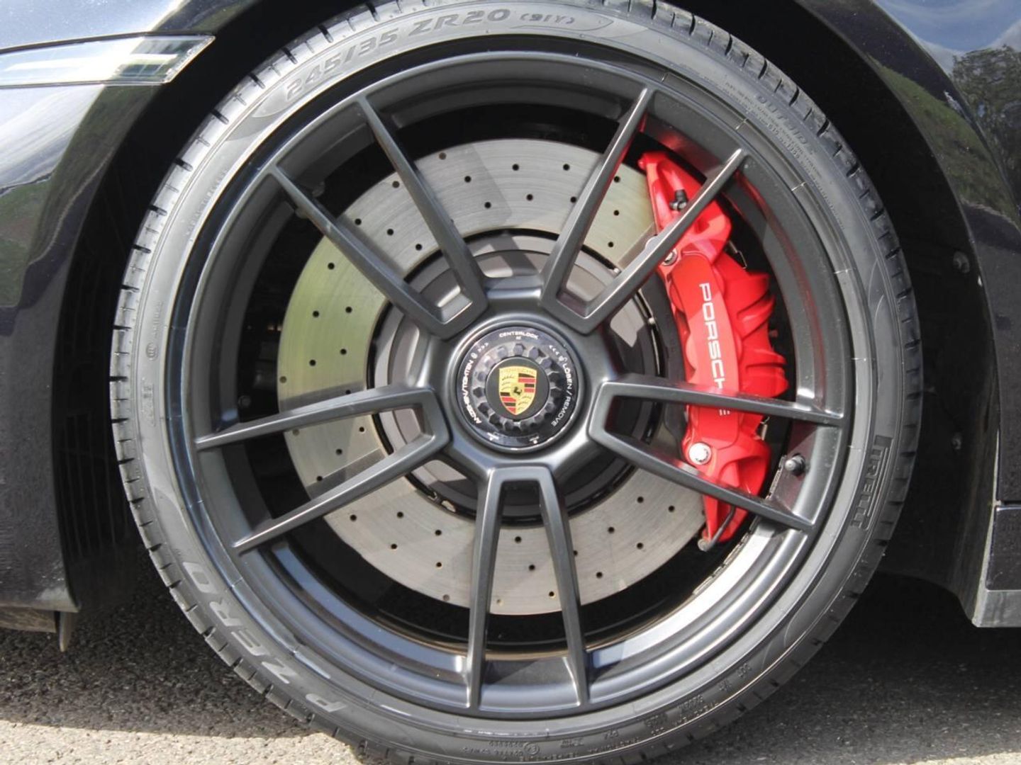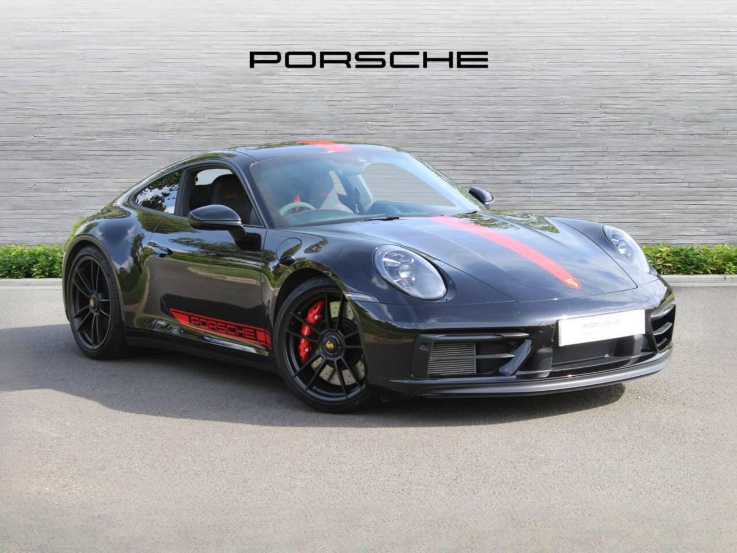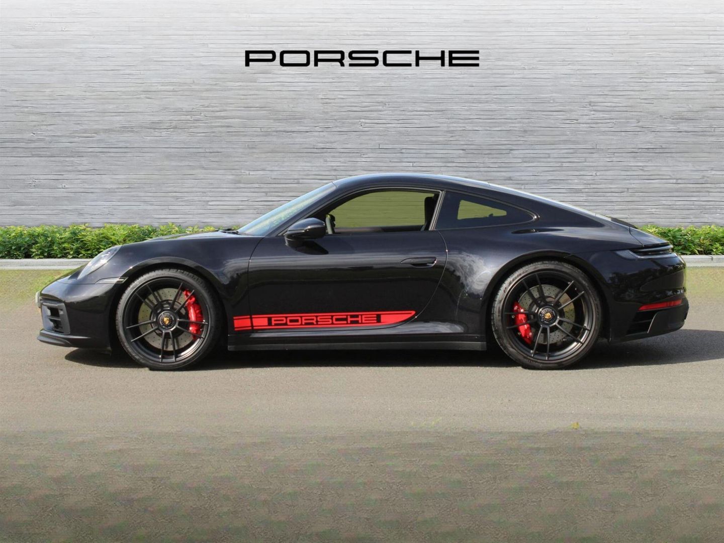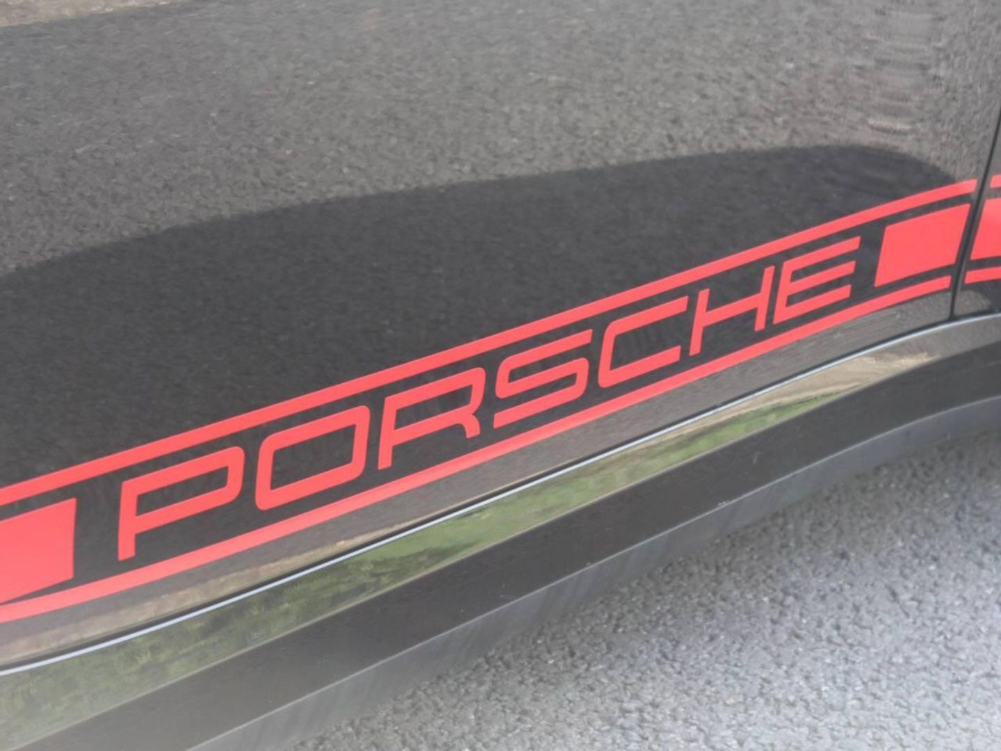 - Decorative 'PORSCHE' side logo in red