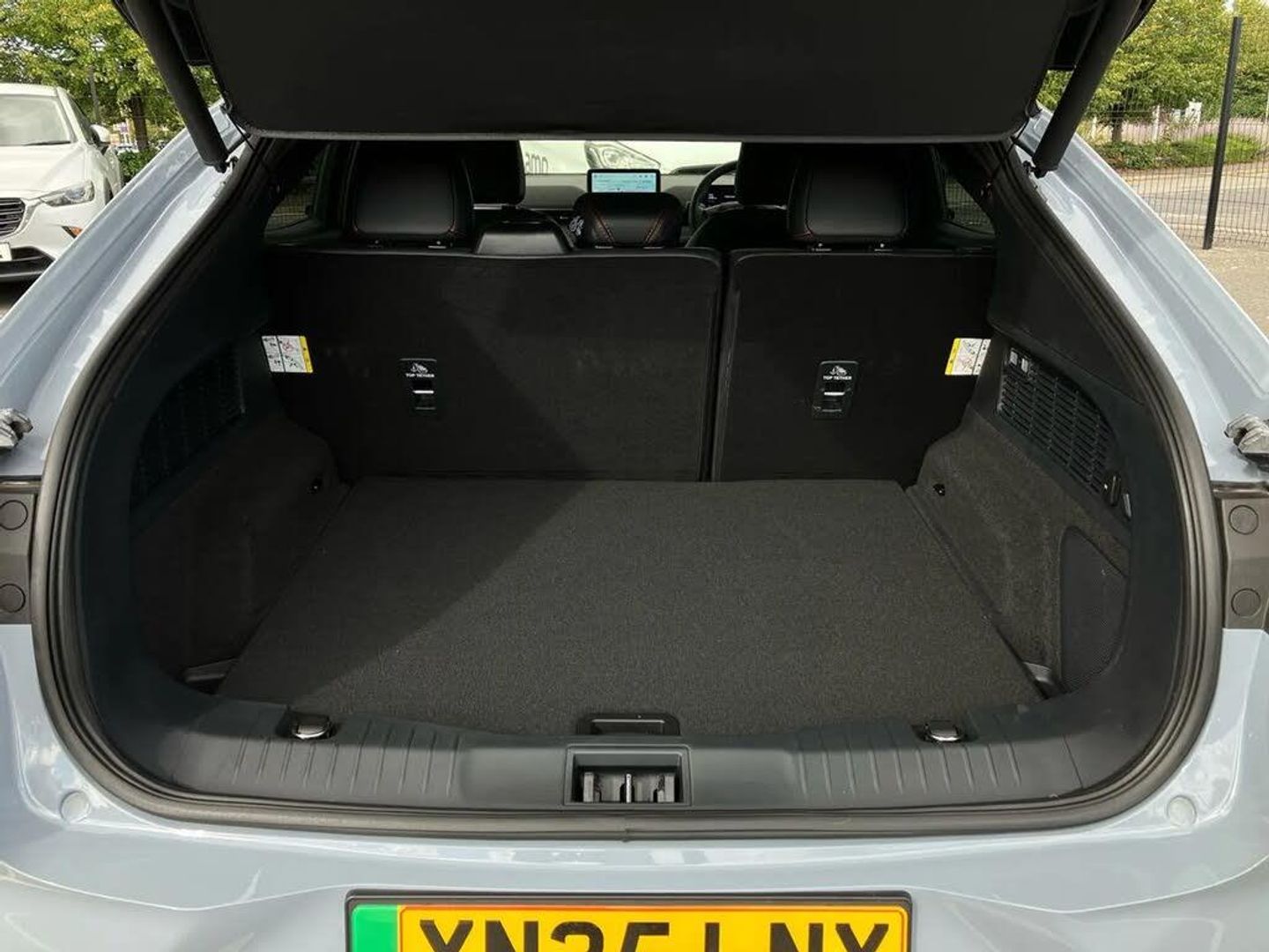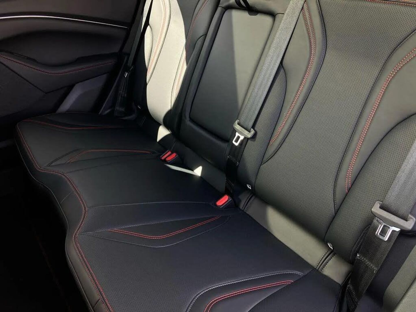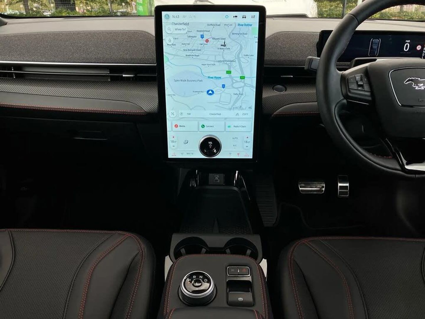 10.2" digital insturment cluster,360 degree camera,Applink remote control system,BLIS (Blind Spot Information System) with cross traffic alert,Distance alert and indication system,Electric power steering,Emergency services call system,Ford SYNC4A with 15.5"Touch,DAB radio,Emer assist,Wireless carplay androidauto,2 front,rear USB ports,FordPass connect,Connected naviation,Front and rear parking sensors,Hands free tailgate,Intelligent adaptive cruise control with stop and go + lane centering,Lane departure warning with lane keeping aid,Selectable drive modes - active, whisper and untamed,Trip computer,Wireless charging pad,11 kW AC onboard charger,150kw high powered charging,Dual motor permanent all wheel drive,Universal home charging cable and public charging cable,B and O premium sound system 10 speaker including dashboard sound bar,Adaptive LED Mustang signature headllamps,Black painted power fold heated mirrors with puddle light mustang logo projection,Blade front grille design,Body colour bumpers,Daytime running lights,Fixed full panoramic roof,LED 3rd brake light,LED Mustang signature tail lights,Quickclear heated windscreen,Rear privacy glass,Rear side wing doors,Rear wiper,Side cladding and wheel arches in piano black,3 seat bench in 2nd row,8 way power driver seats with lumbar support,8 way power passenger seats with lumbar support,Ambient lighting,Dual electronic automatic temperature control,Front headrests,Front trunk,Heated front seats and steering wheel,One pedal drive,Perforated full sensico artificial leather upholstery,Rear head restraints,Single front passenger seat,3 point rear seatbelts,ABS,Child locks on rear doors,ESP,Evasive steering assist,Pre collision assist inc Collision mitigation, Forward collision warning, Dynamic brake support, Automated emergency braking,E-Latch keyless entry system including B-Pillar keypad access,Keyless Start,Thatcham Cat.1 alarm,Glacier Grey,Perforated Sensico - Black with Red Stitching